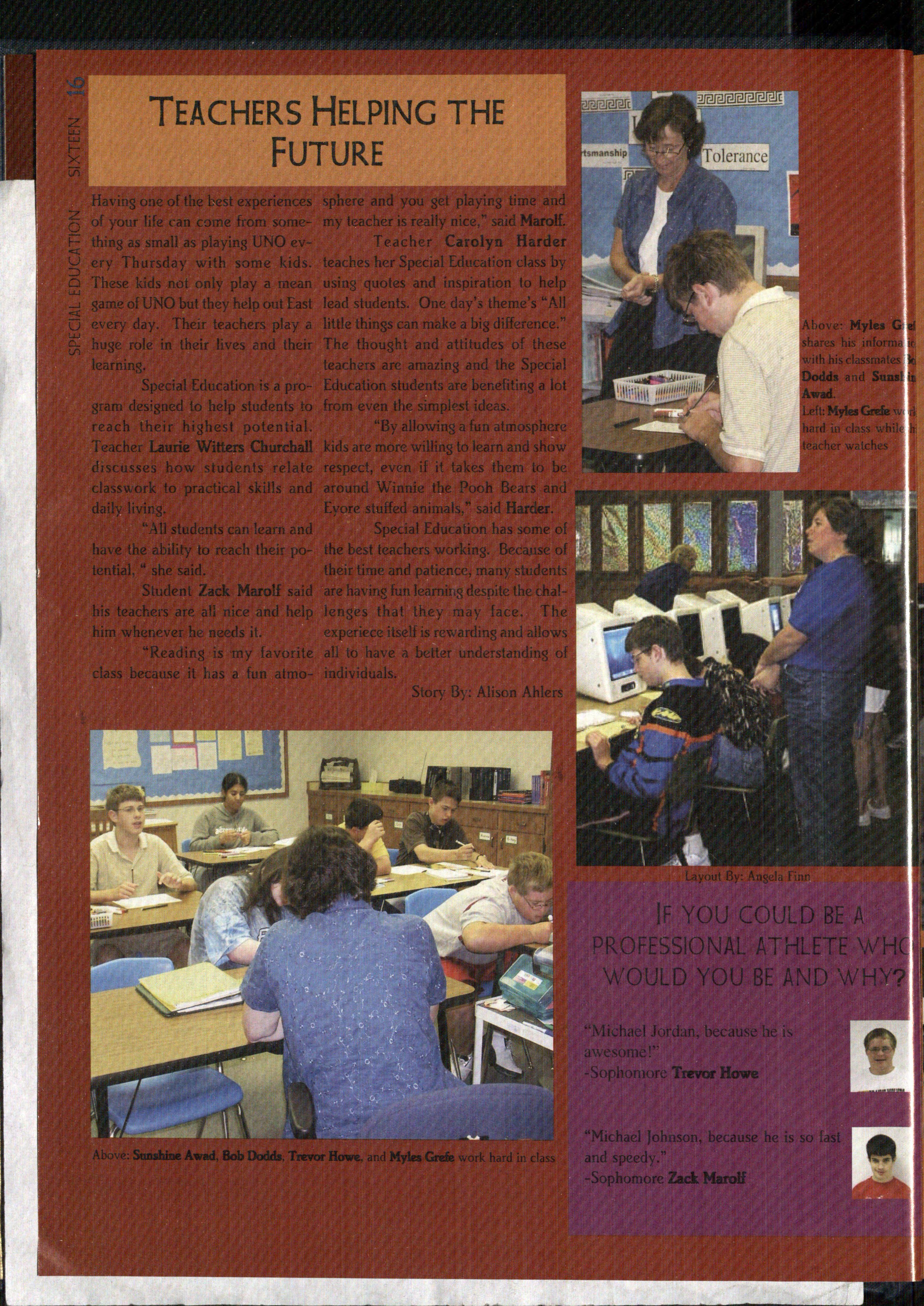 Top Right: As Donna Wilson's T.A., senior Laura Cox helps teacher Donna Wilson pen p student projects as her T.A.