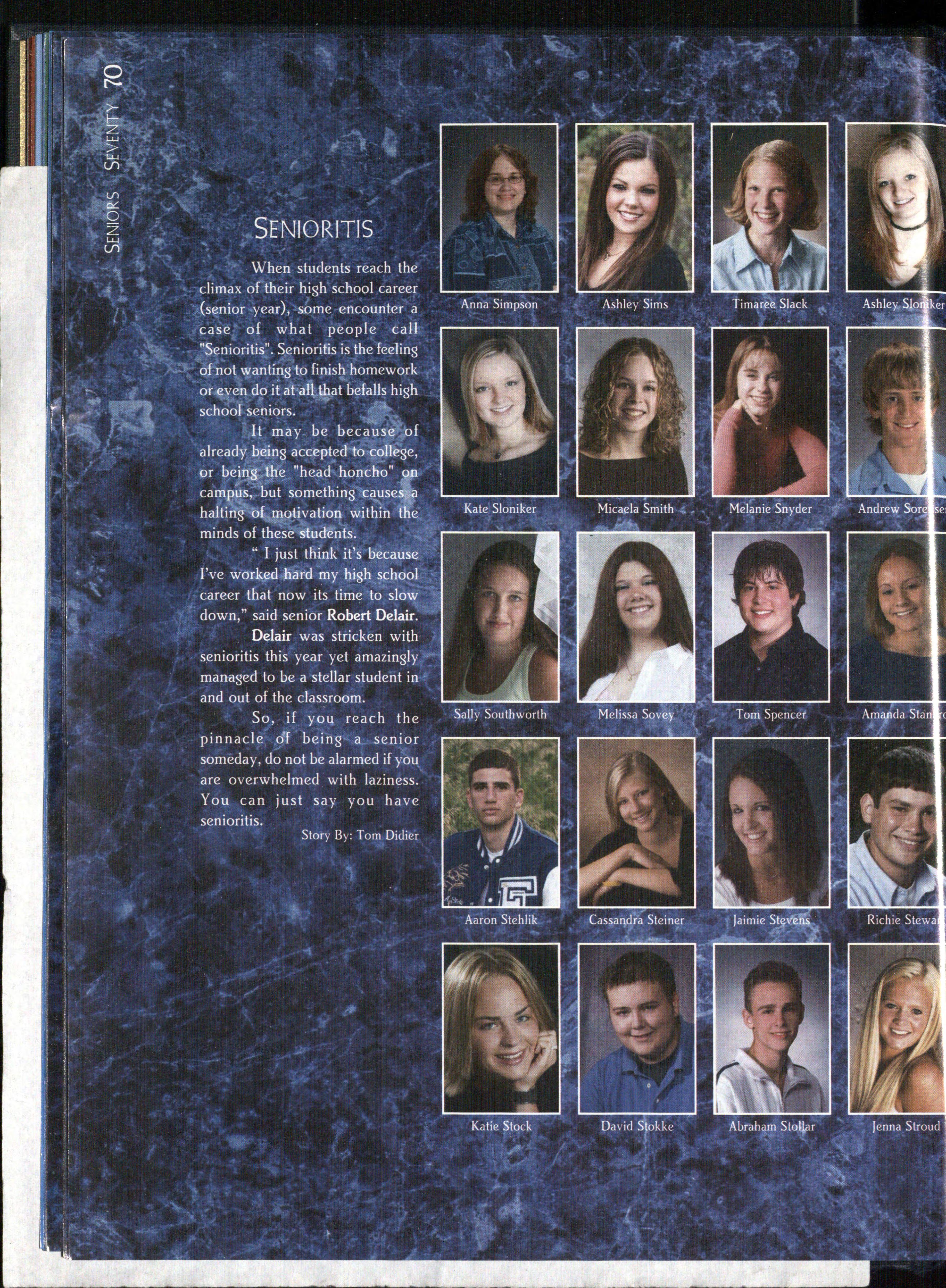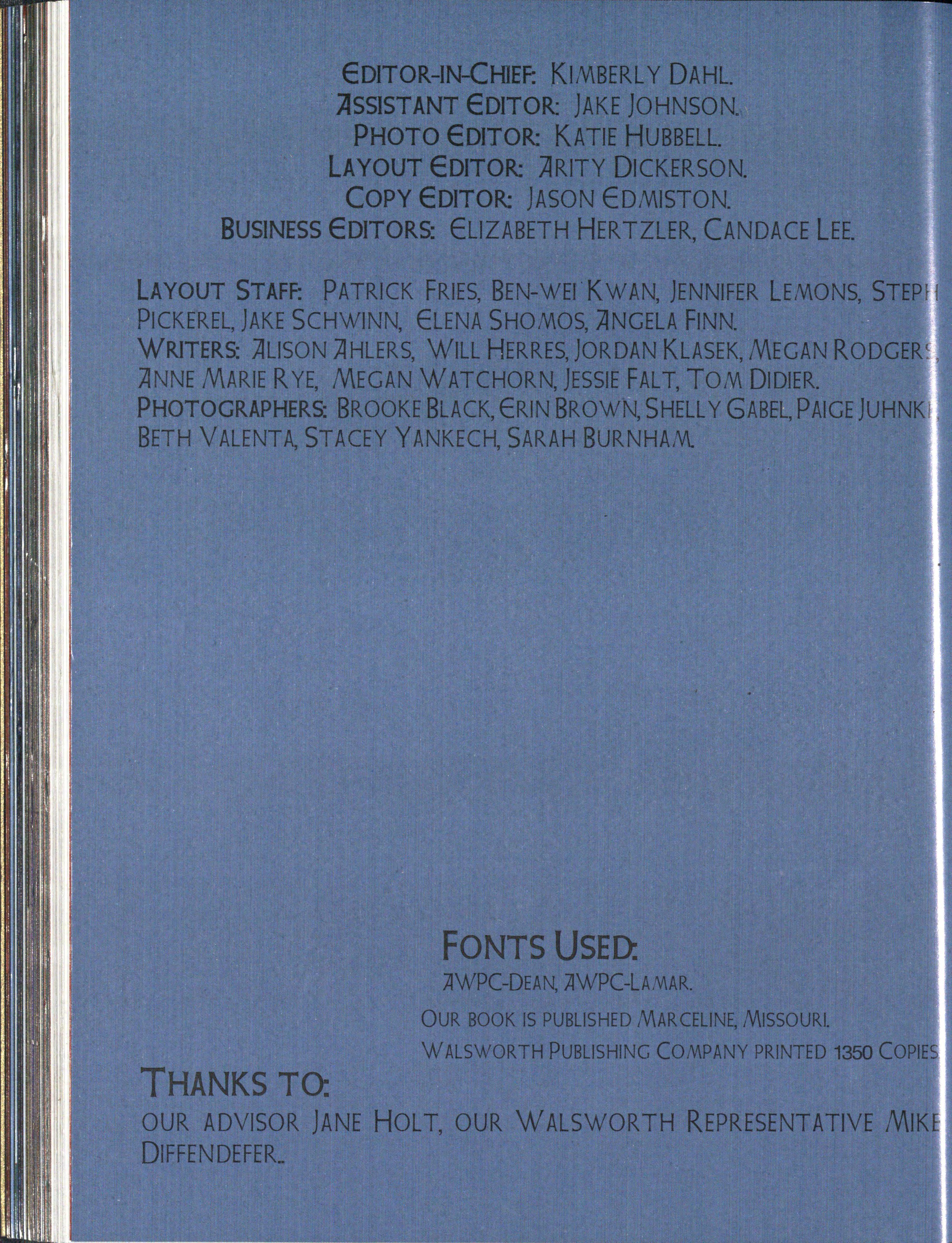 front Row: Ashley Sloniker, Katie Sloniker and Travis Sewell. Second Row: Sarah Bejot, Kimberly Dahl, Jordan Jakub, Steve Curtright and Karl Merchant. Third Row: Katie Safarik and Rachel Anderson