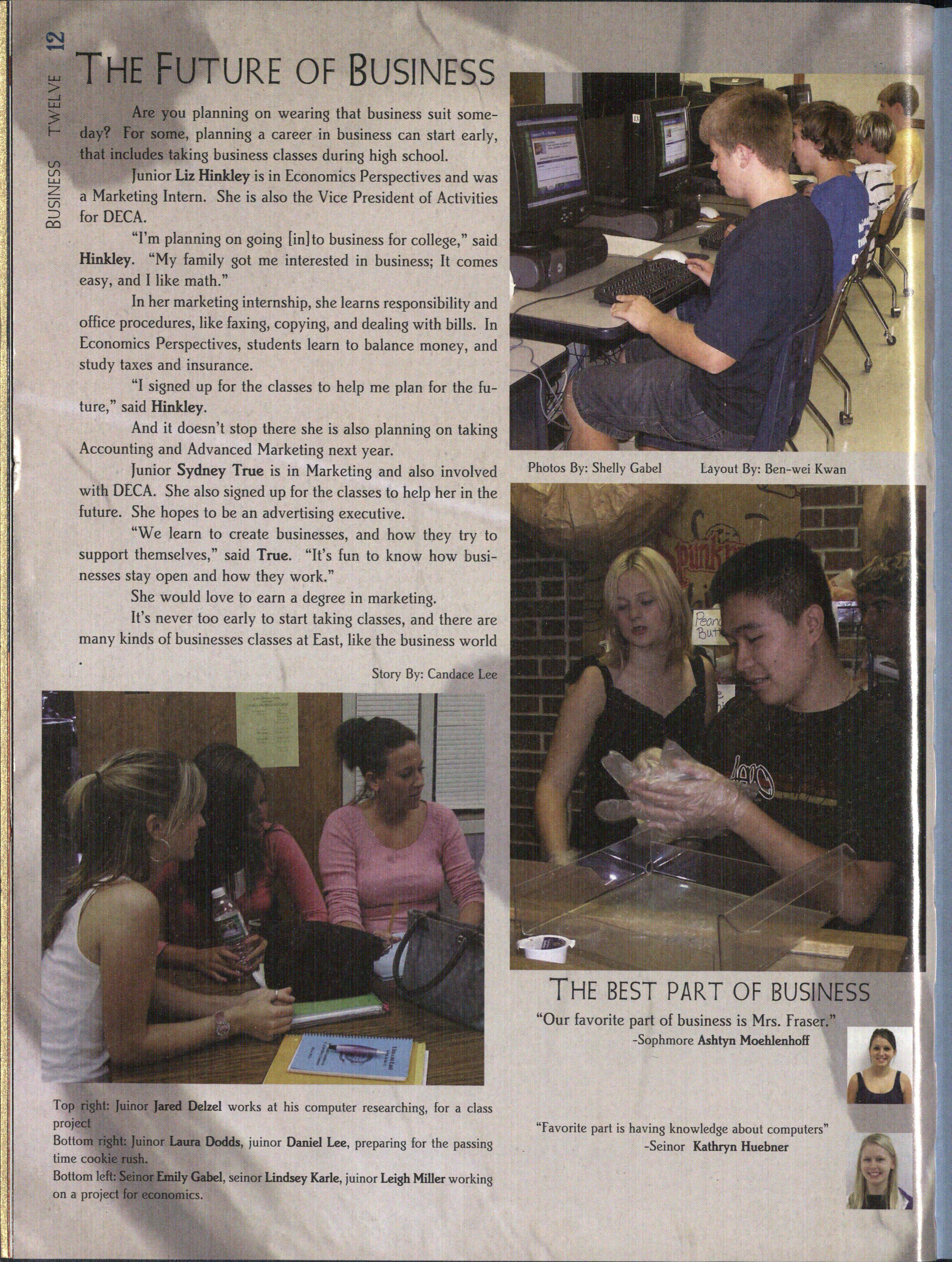 "Our favorite part of business is Mrs. f raser." -Sophmore Ashtyn Moehlenhoff