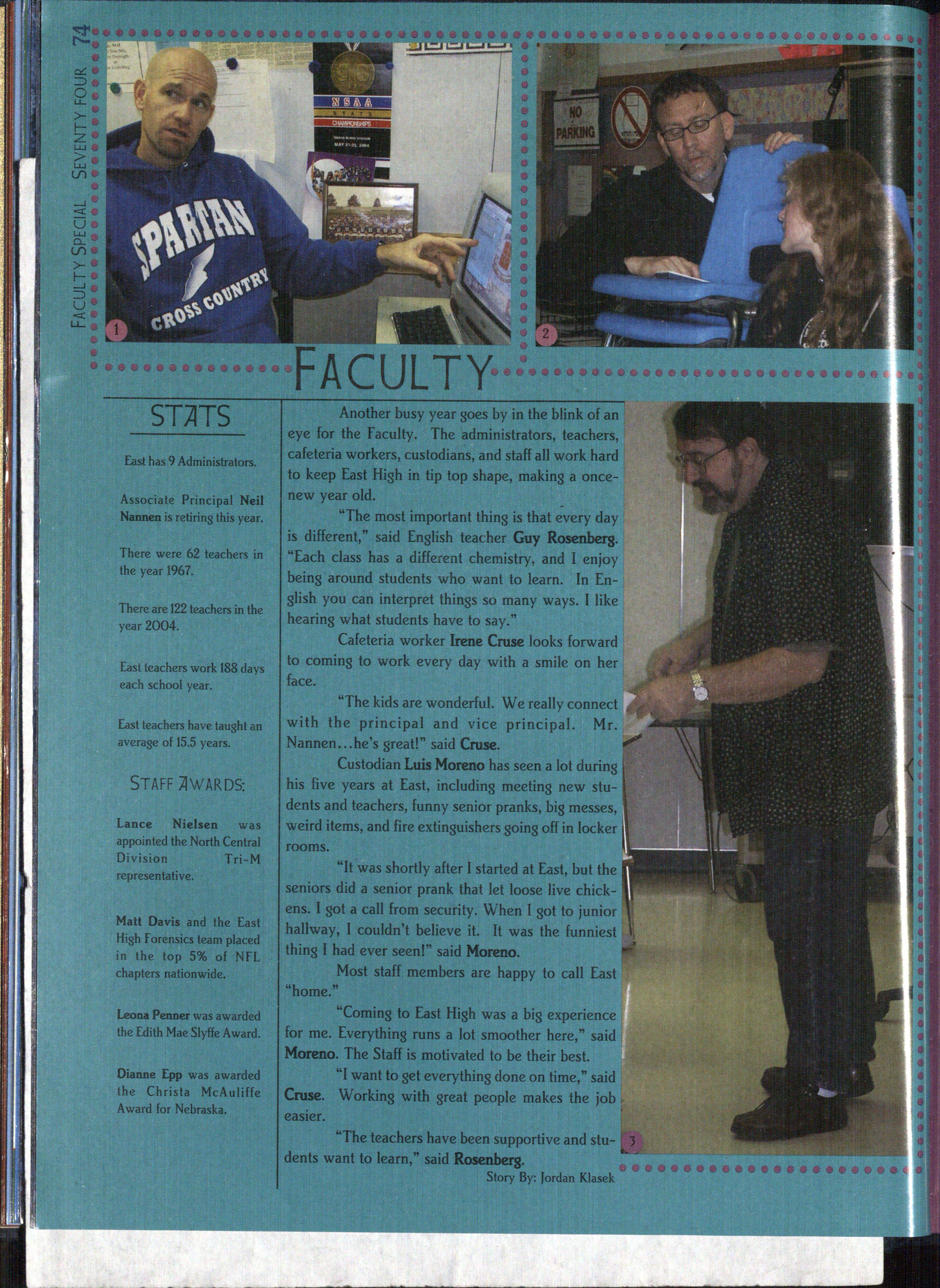 One unique fact aboutthe science faculty is that both Mann and John Strain have children who attend East. "People seem to think that a parent at school would be a drag. It's like having another friend at school," said junior Spud Mann w,o had his dad