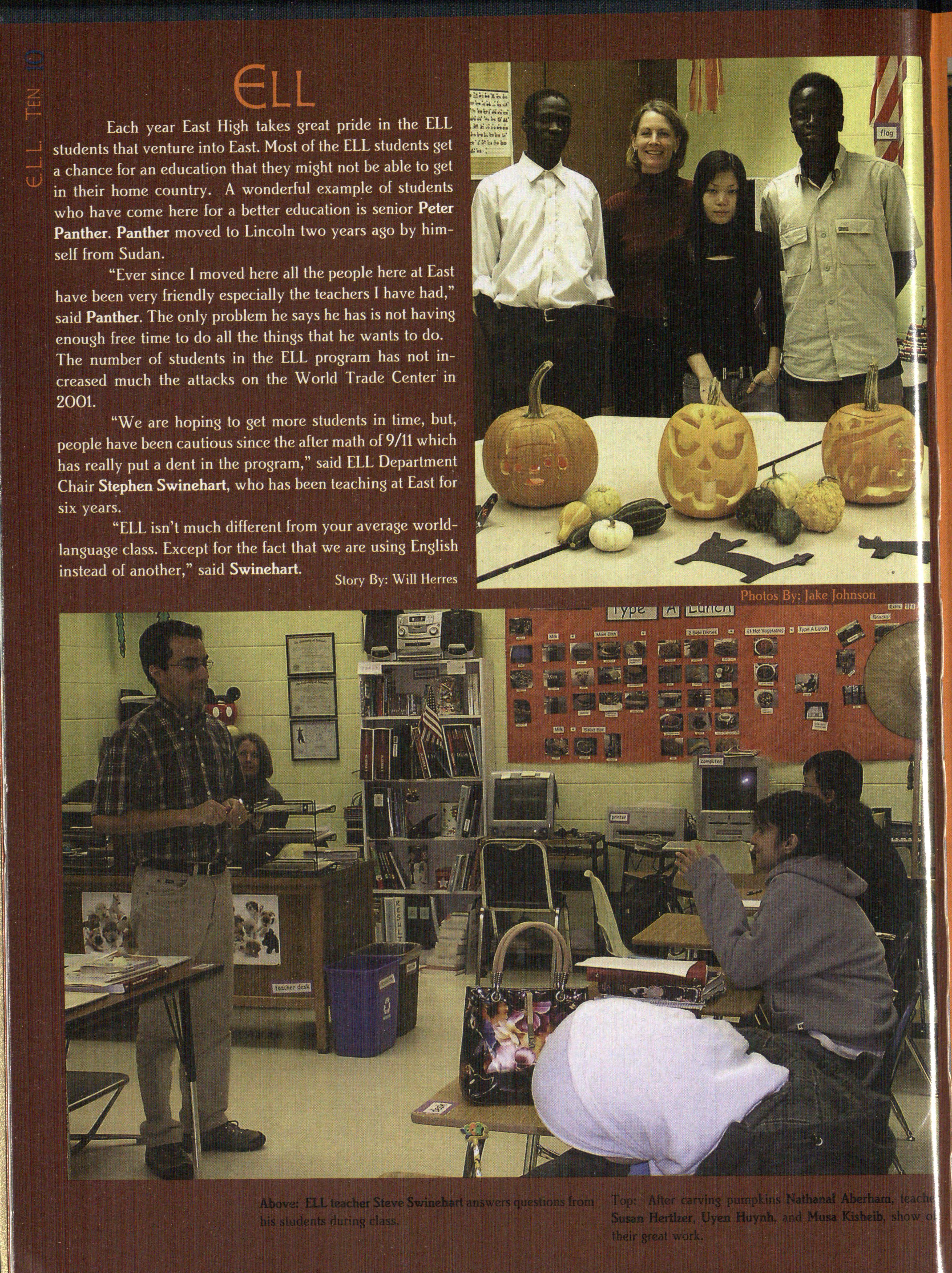 ou do it because you challen es th class by comparlove it. hat is why English ing th _ liter ture he uses to teacher J ff Hoham comes to events t at ar happening today. school e h morning. He doesn't " I'd ra er h ve the classroom care if p le make more money; be taug t tw way and converhe just es the job. East's En- sational tha have it one-way glish te ers strive toward one and di tatori 1." said Hoham. comma oal: excellence for the "It's jus who I am." This is also future. h t goal impacts the stu- the sam rea n Aaron Fluitt endents. joyed tch "chthom's class so