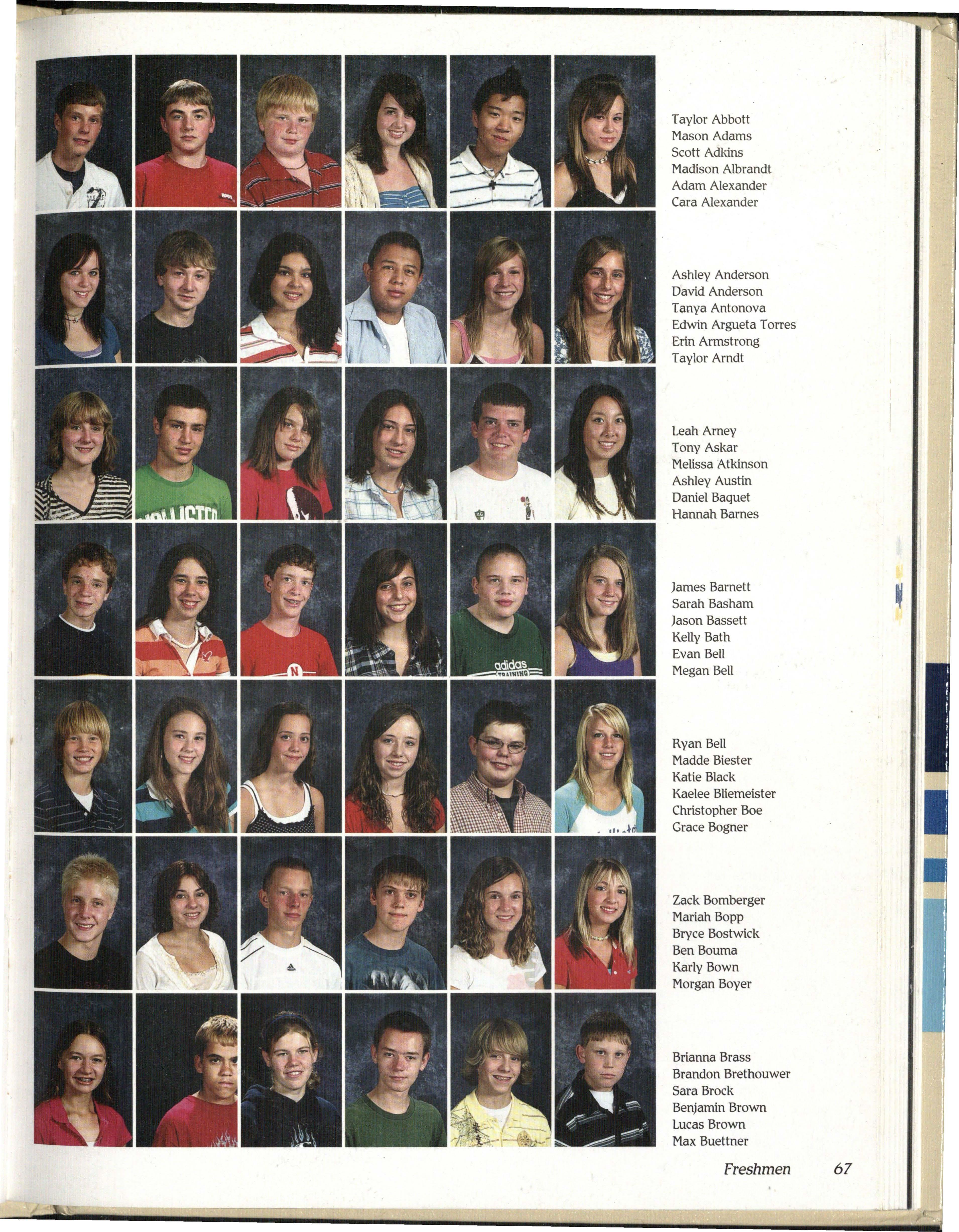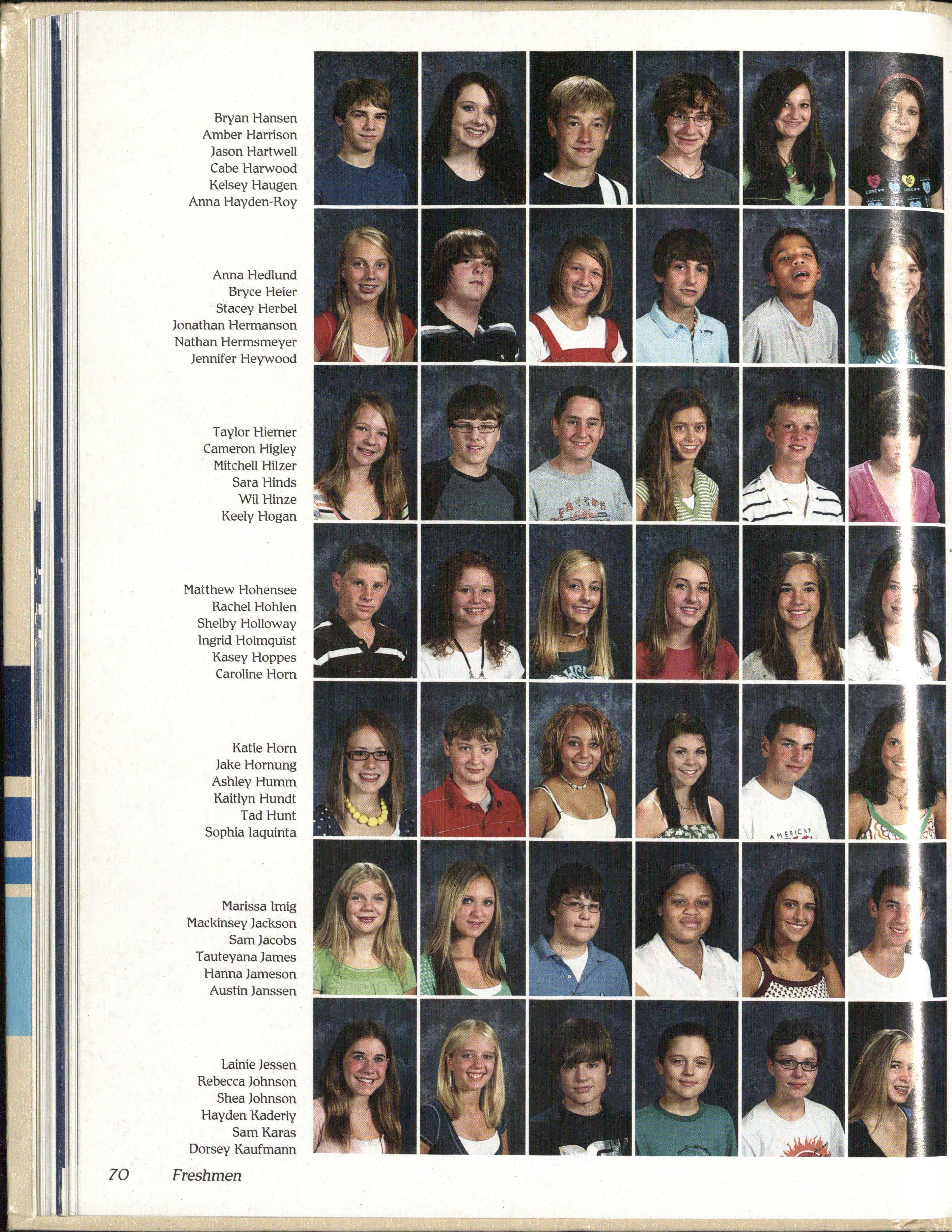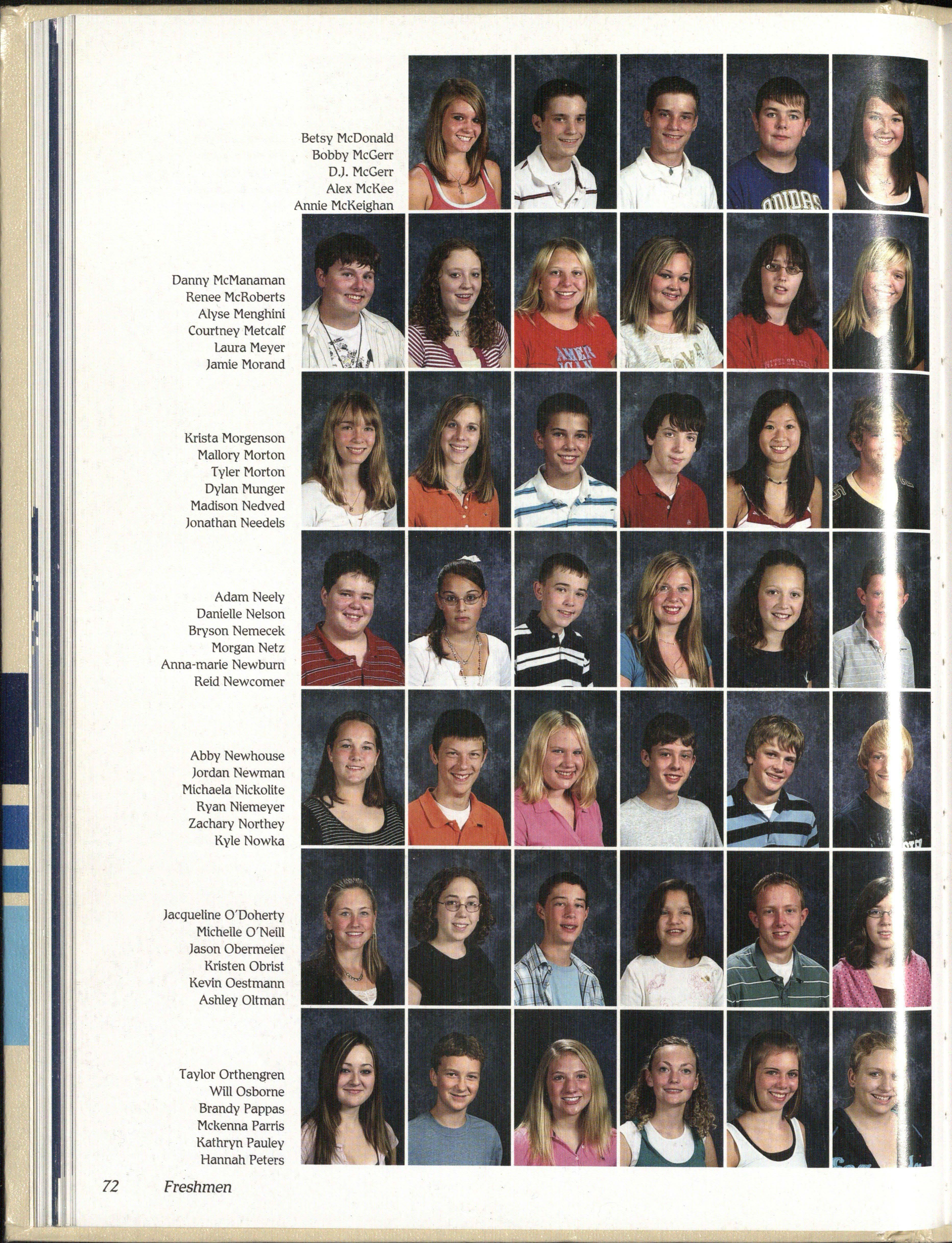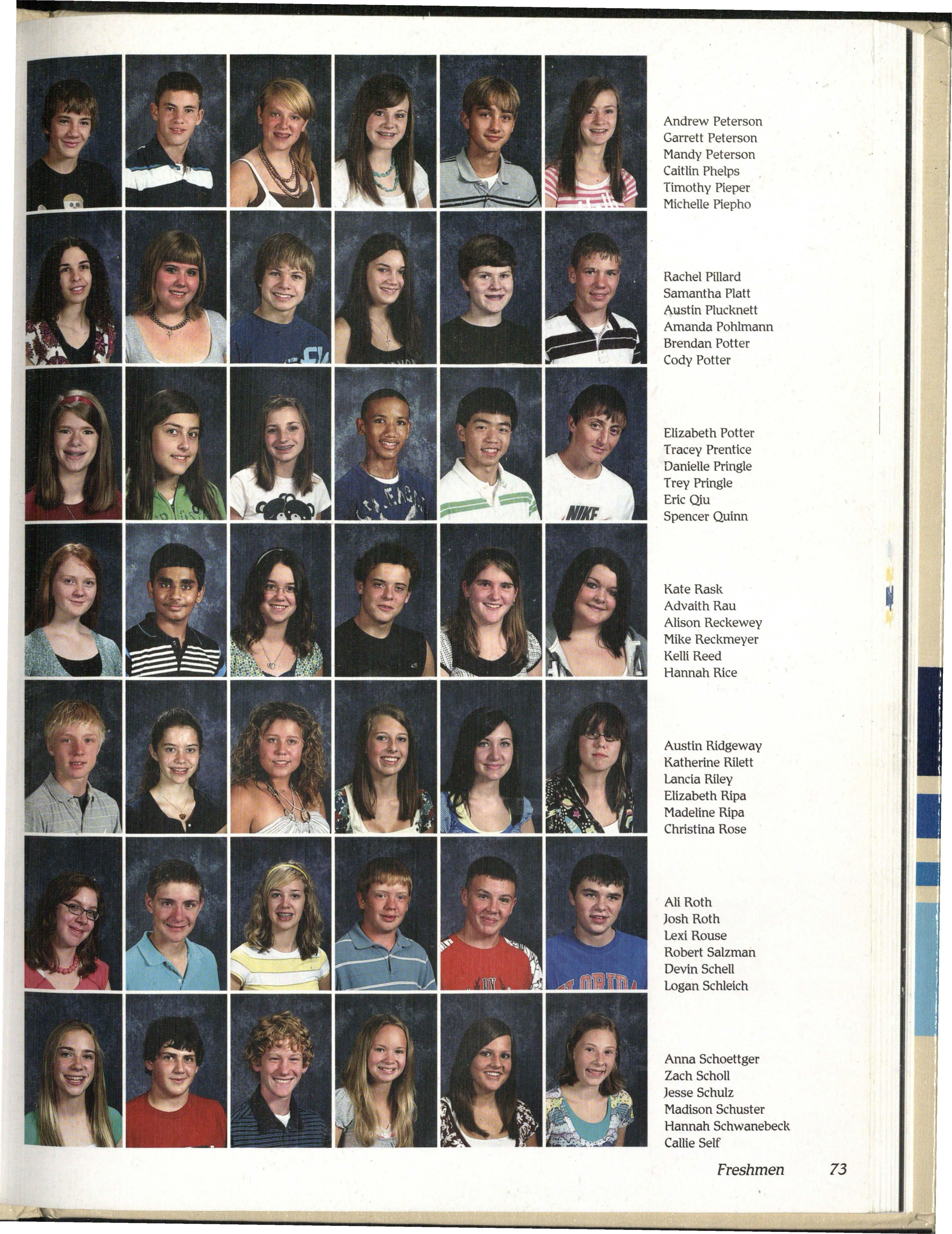 Freshman Volleyball: Front Row (L.-R.) Amber Harrison, Stephanie Mannix, Jennifer Heywood, Ren ee Donner, Erin Armstrong, Taylor Orthengren