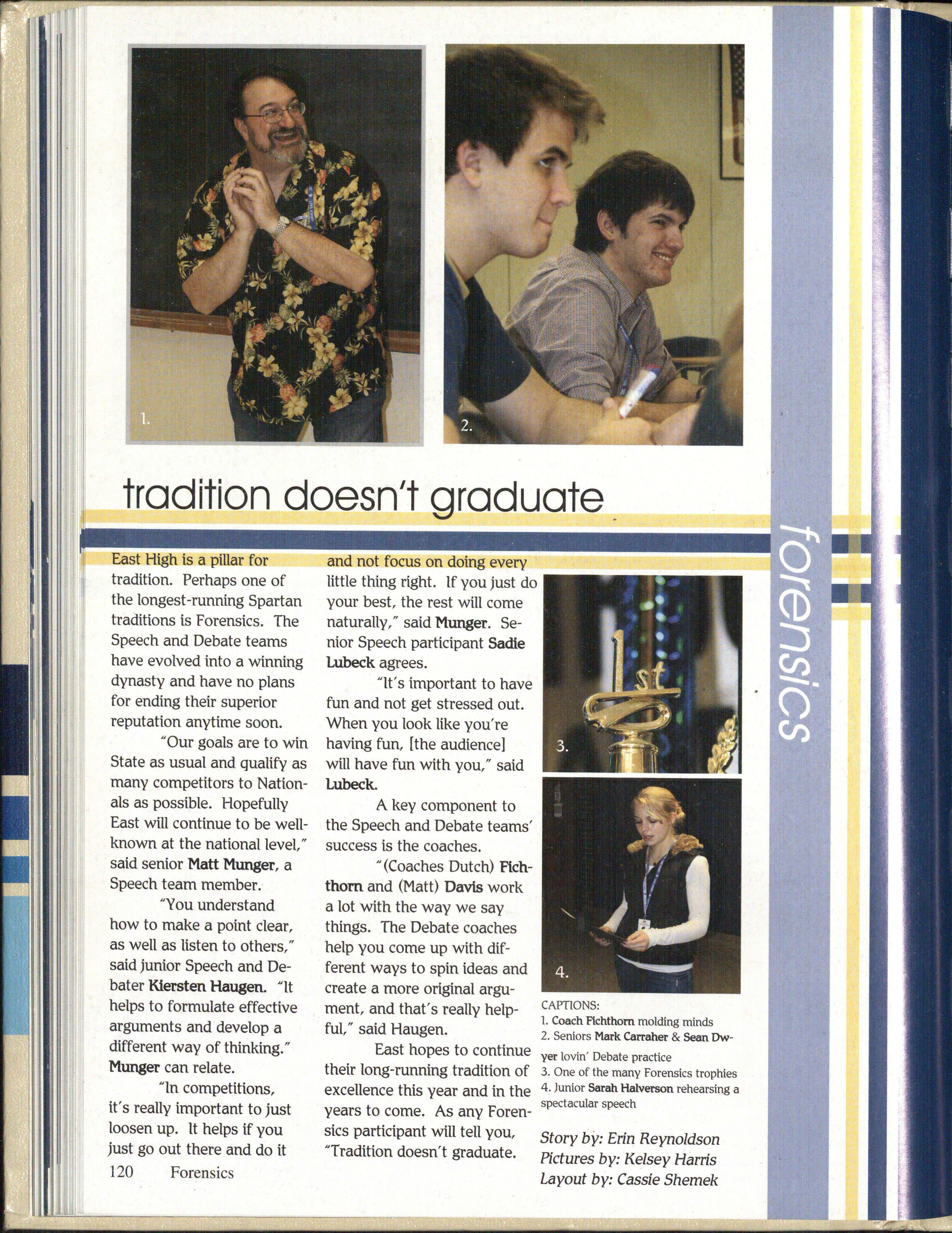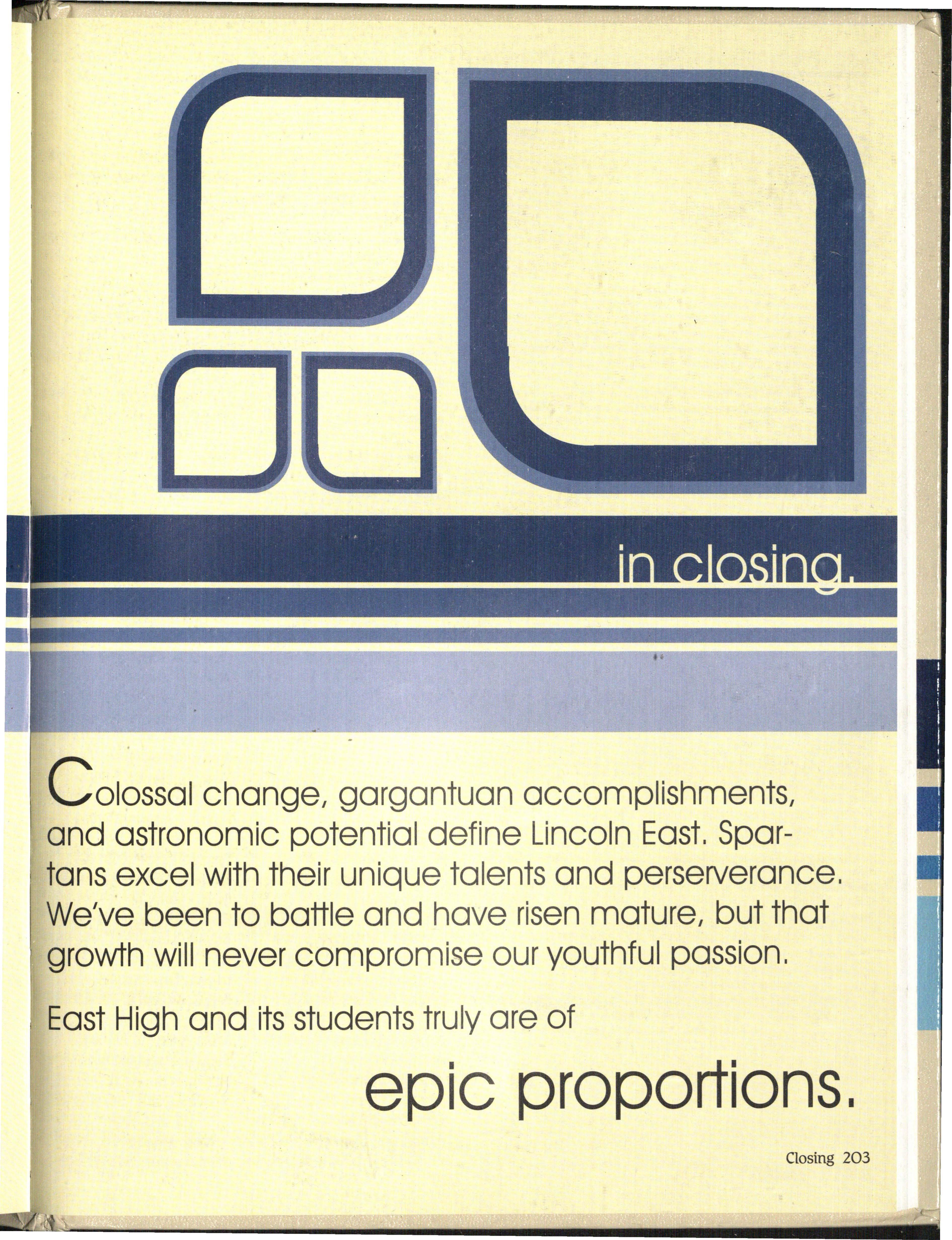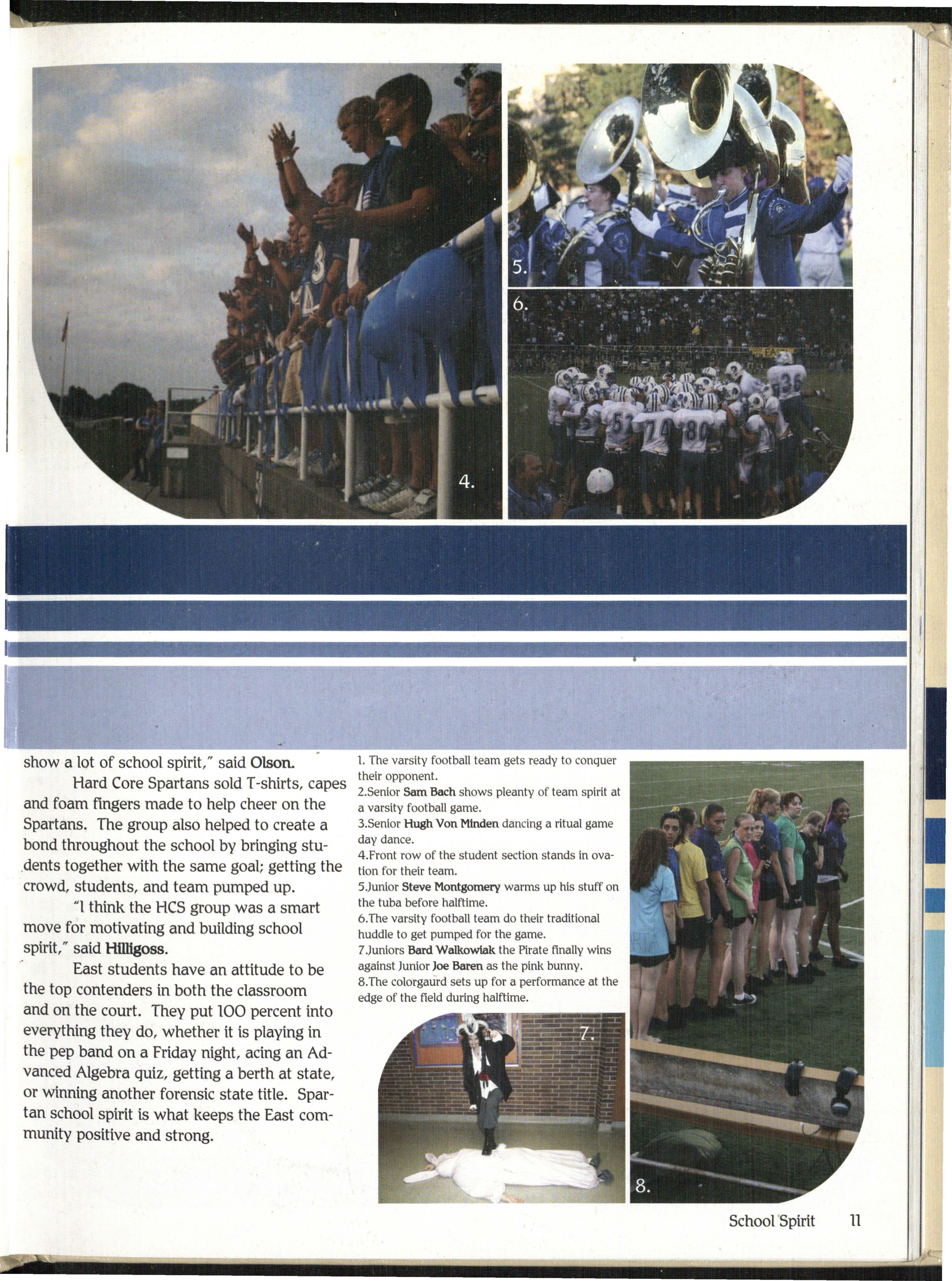 East students have an attitude to be the top contenders in both the classroom and on the court. They put 100 percent into everything they do, whether it ls playing in the pep band on a Friday night, acing an Advanced Algebra quiz, getting a berth at state, or winning another forensic state title. Spartan school spirit ls what keeps the East community positive and strong.
