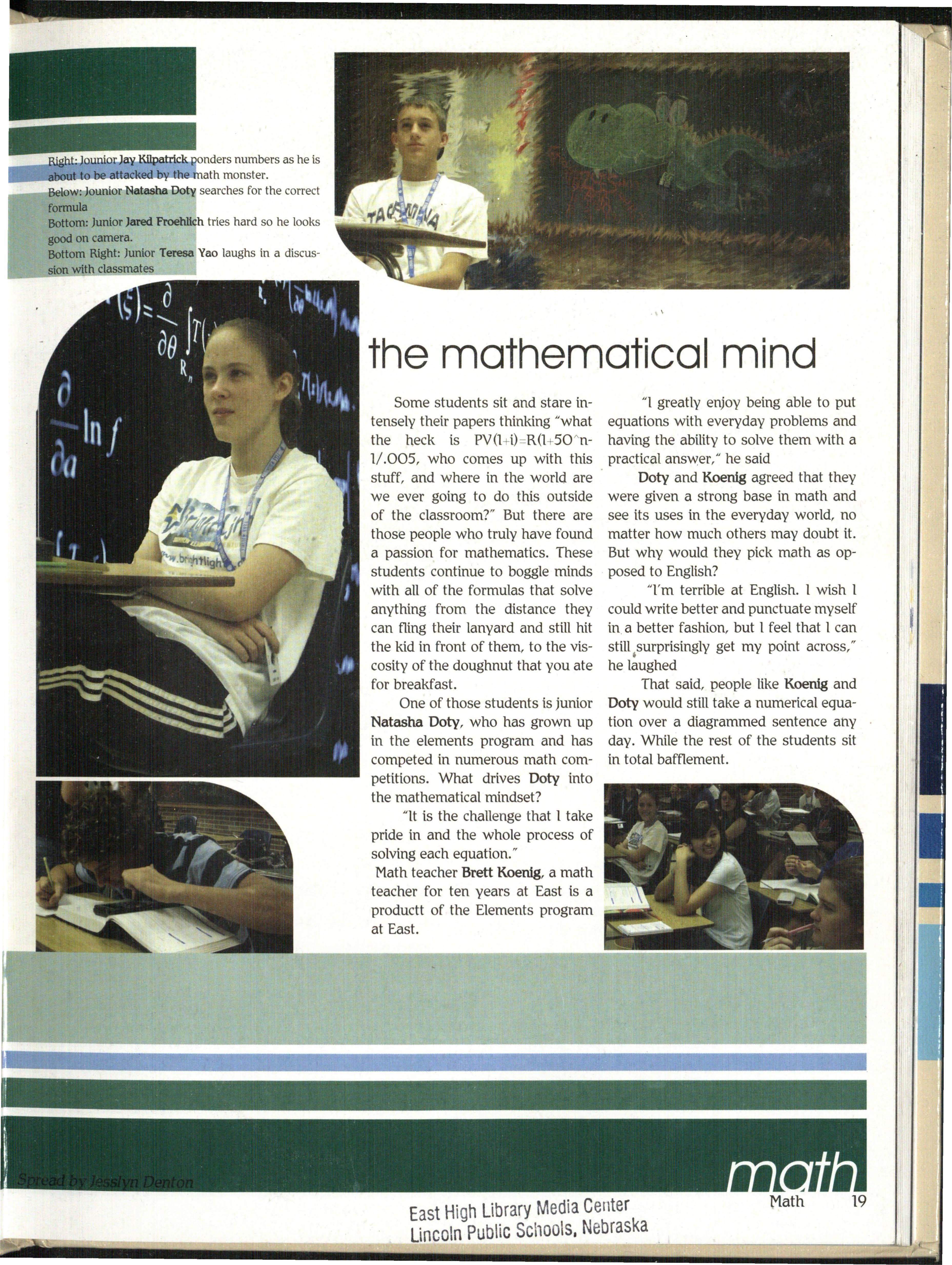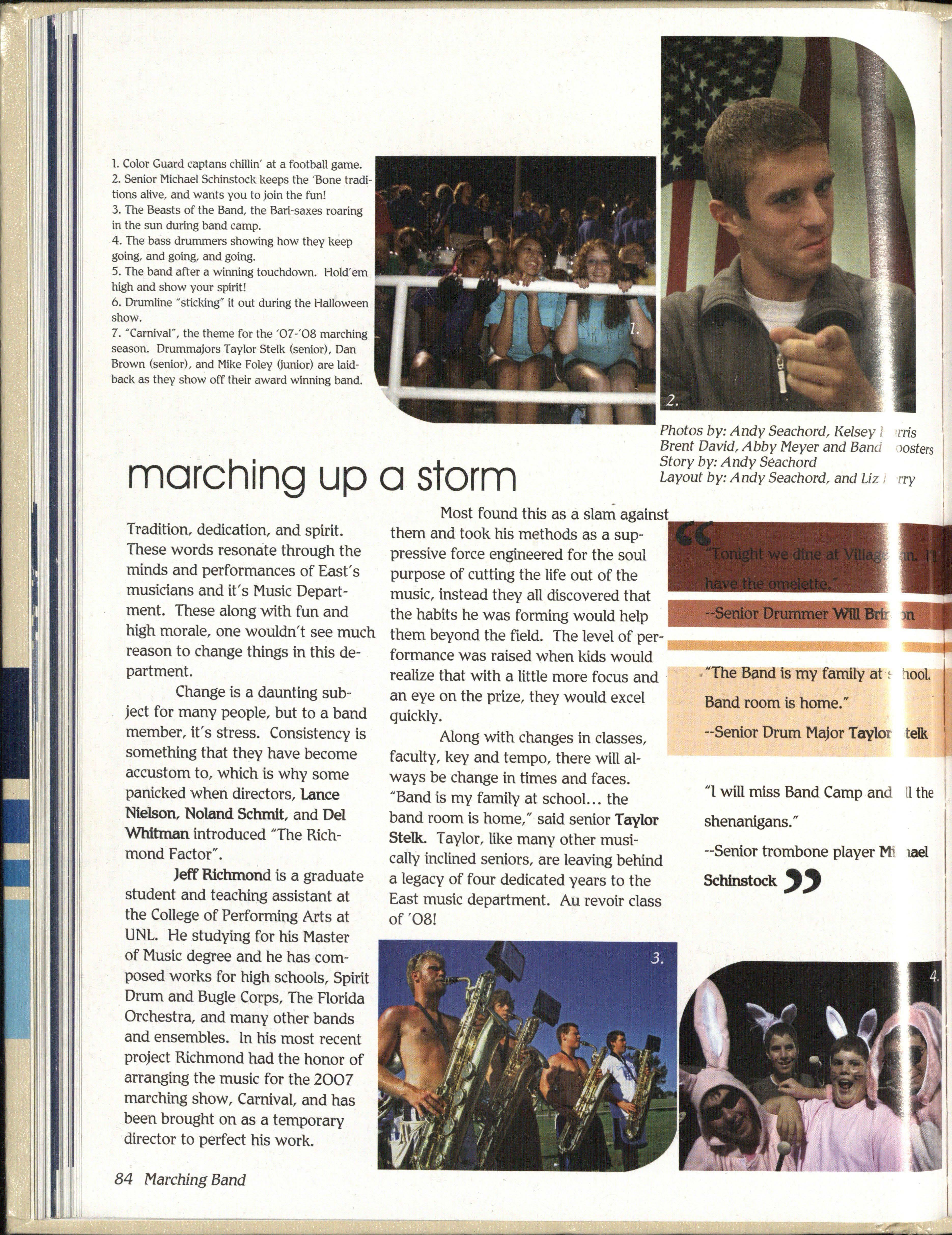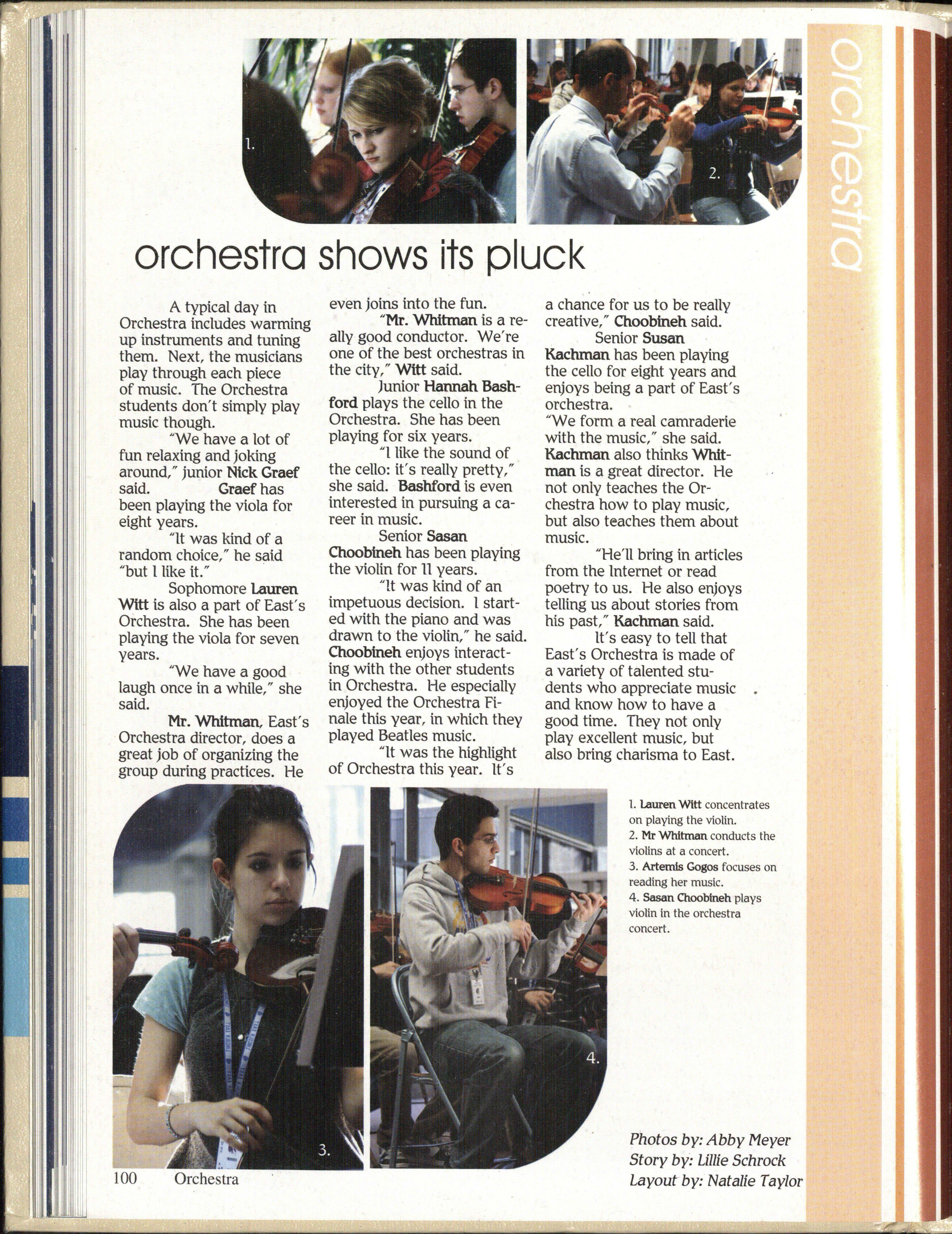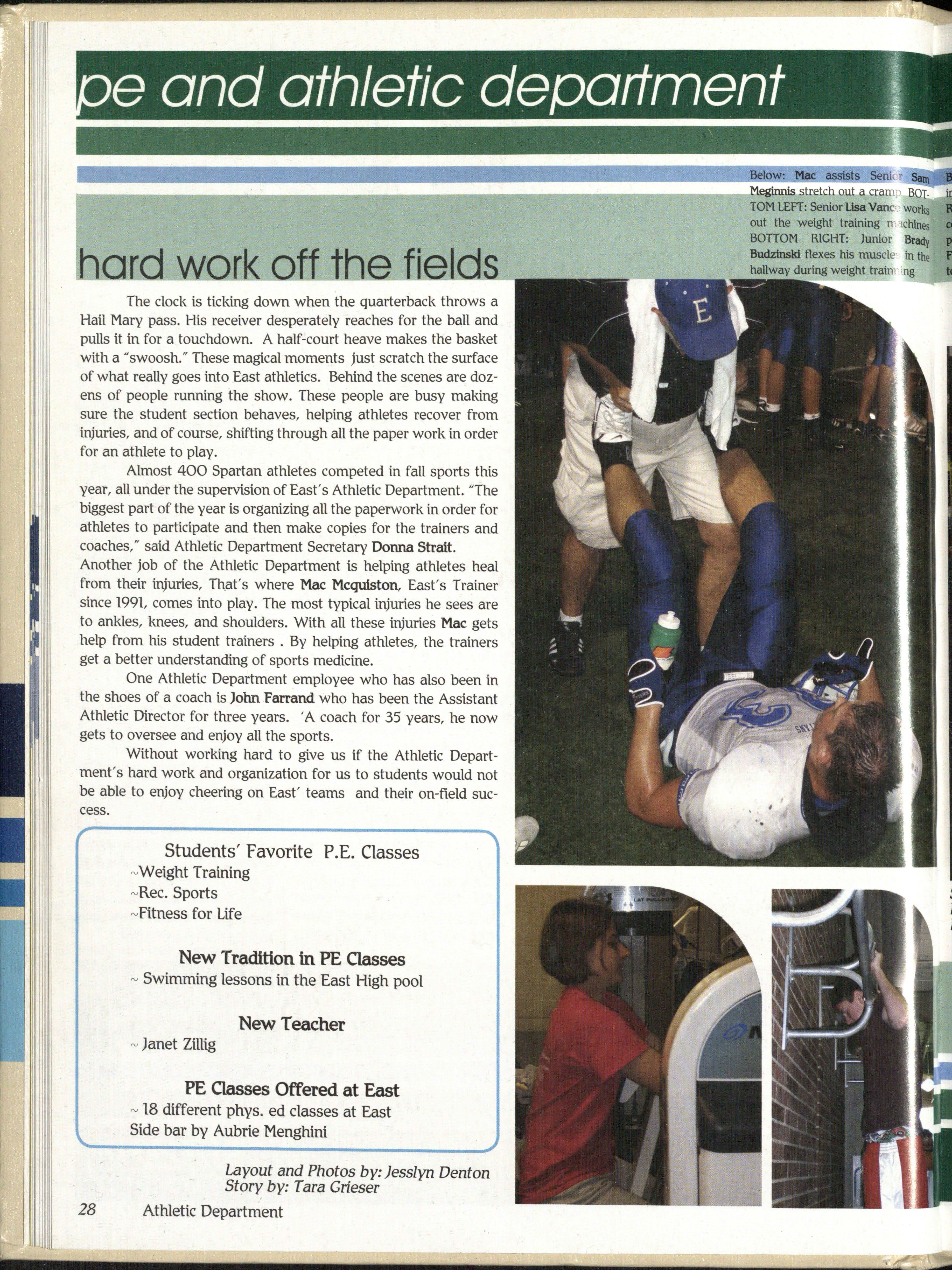 East students have an attitude to be the top contenders in both the classroom and on the court. They put 100 percent into everything they do, whether it ls playing in the pep band on a Friday night, acing an Advanced Algebra quiz, getting a berth at state, or winning another forensic state title. Spartan school spirit ls what keeps the East community positive and strong.