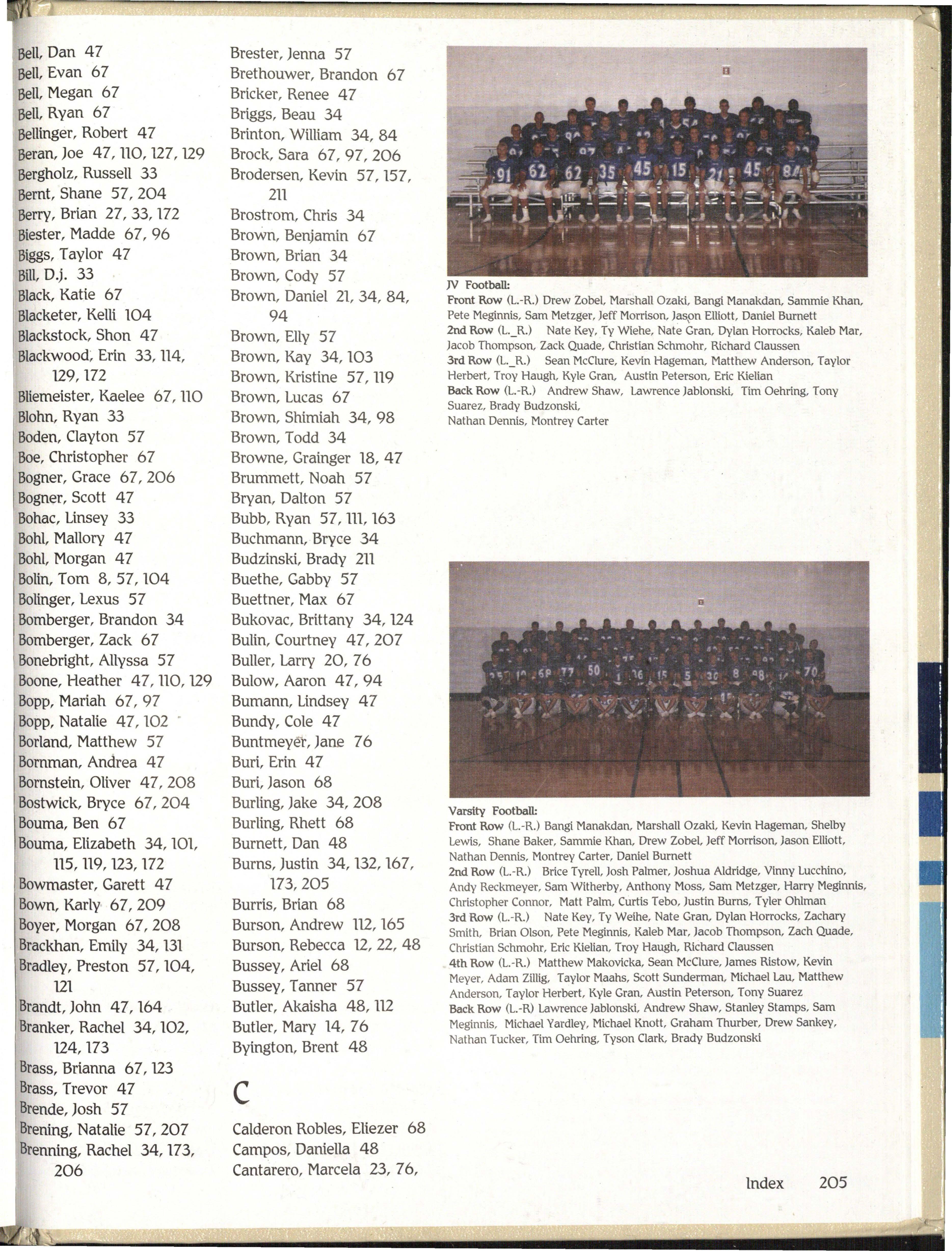 2.Senior Sam Bach shows pleanty of team spirit at a varsity football game.