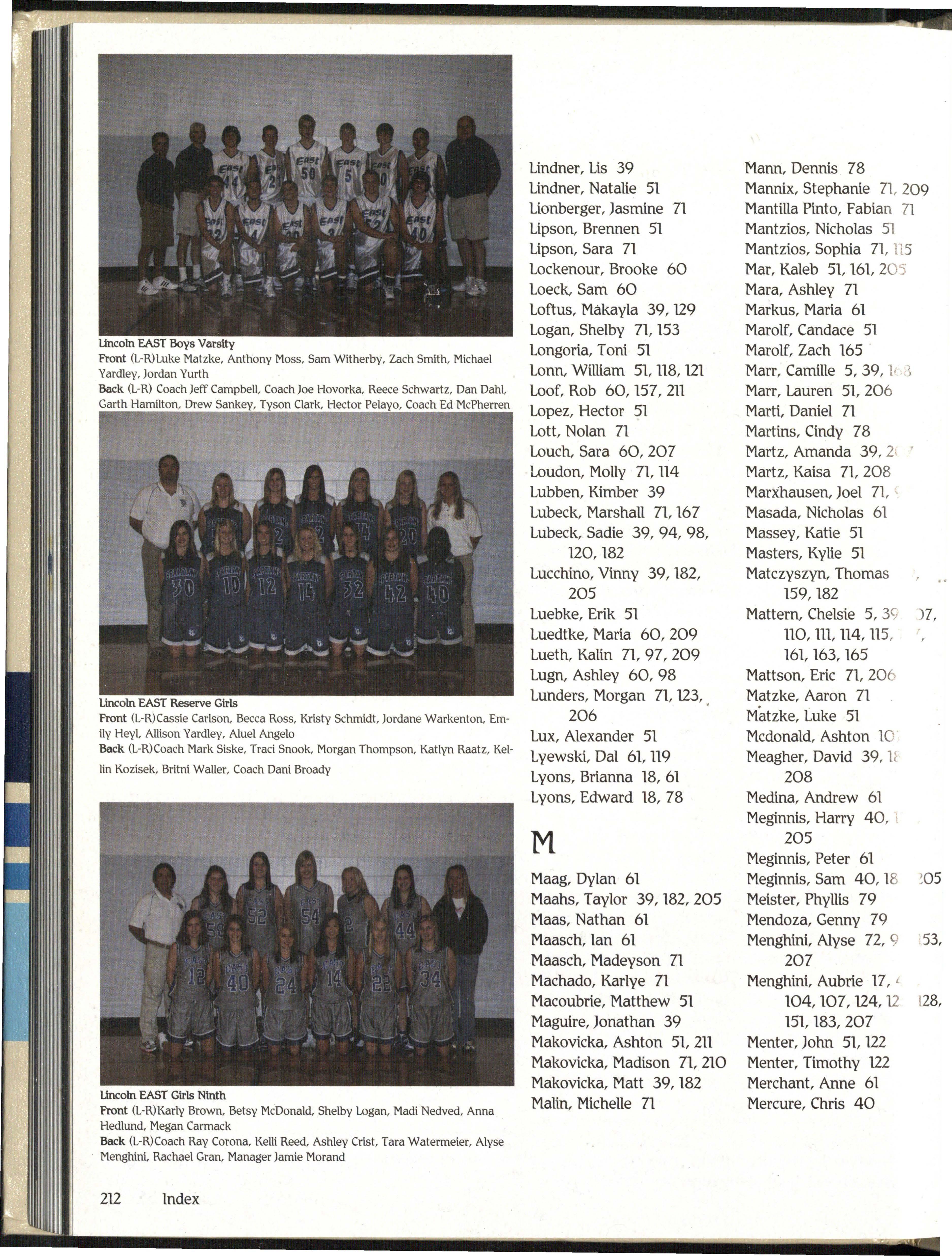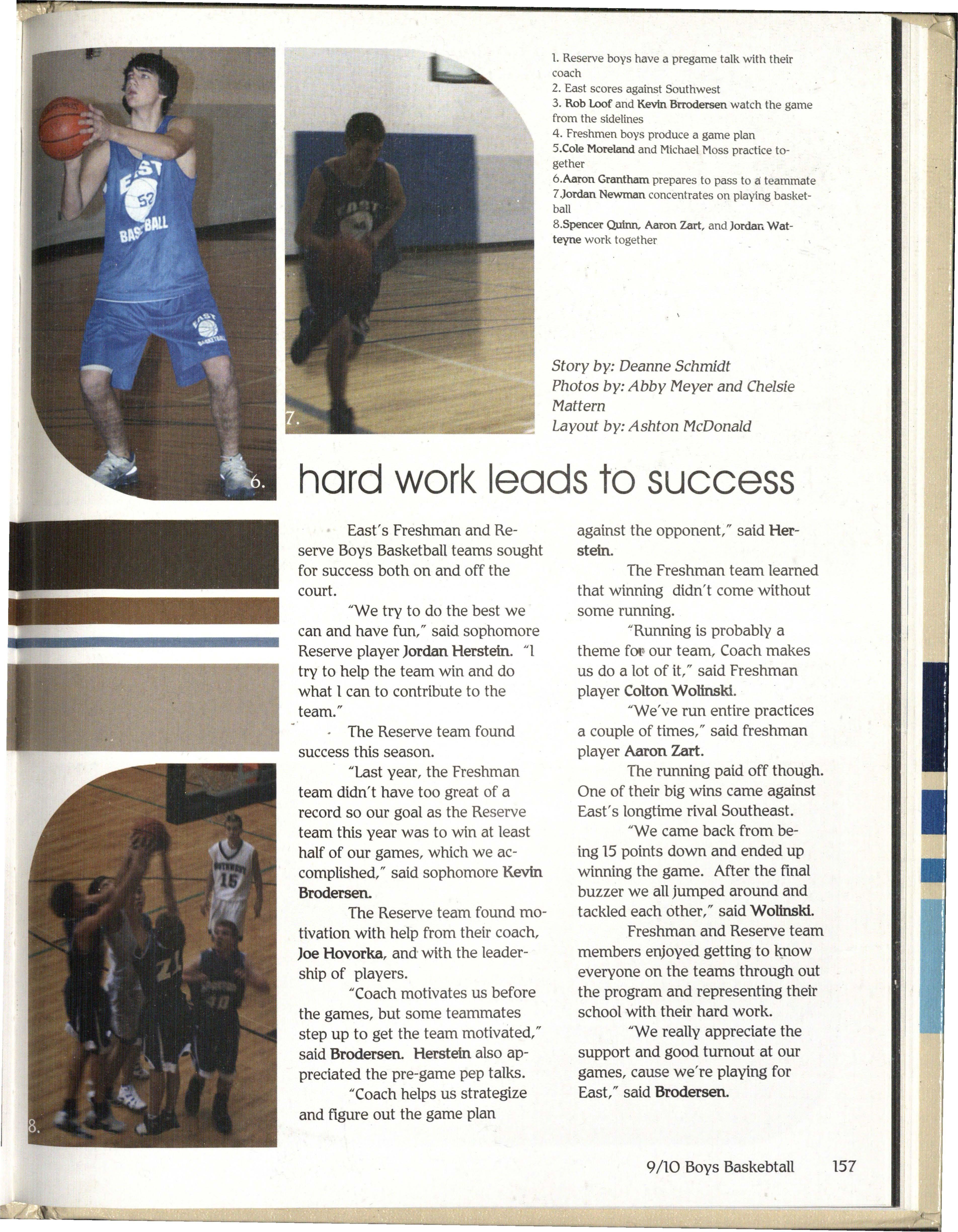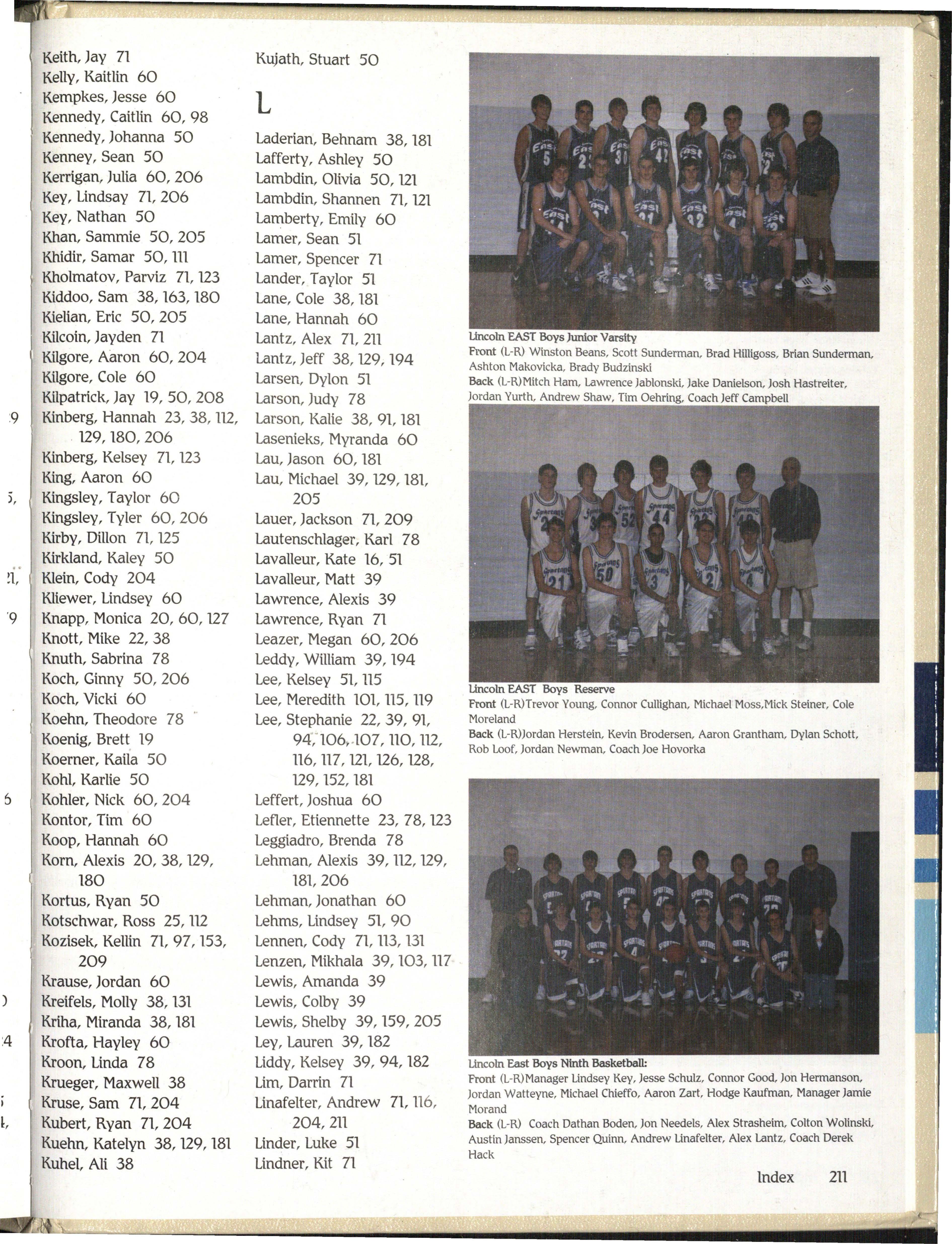 Uncoln East Boys Ninth Basketball: Front (L-R) Manager Lindsey Key, Jesse Schulz, Connor Good, Jon Herma nson, Jordan Watteyne, Michael Chieffo, Aaron Zart, Hodge Kaufman, Manager Jamie Morand
