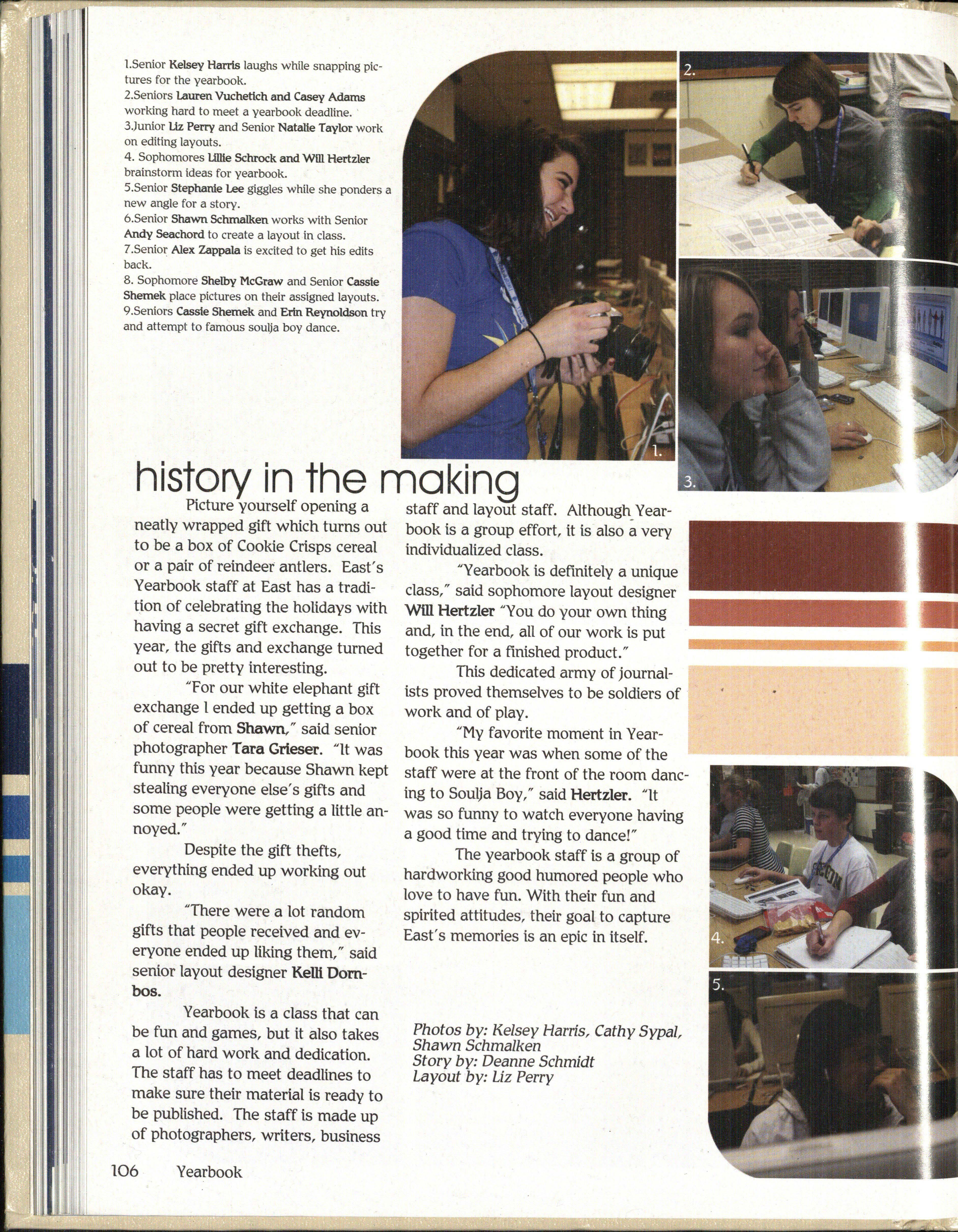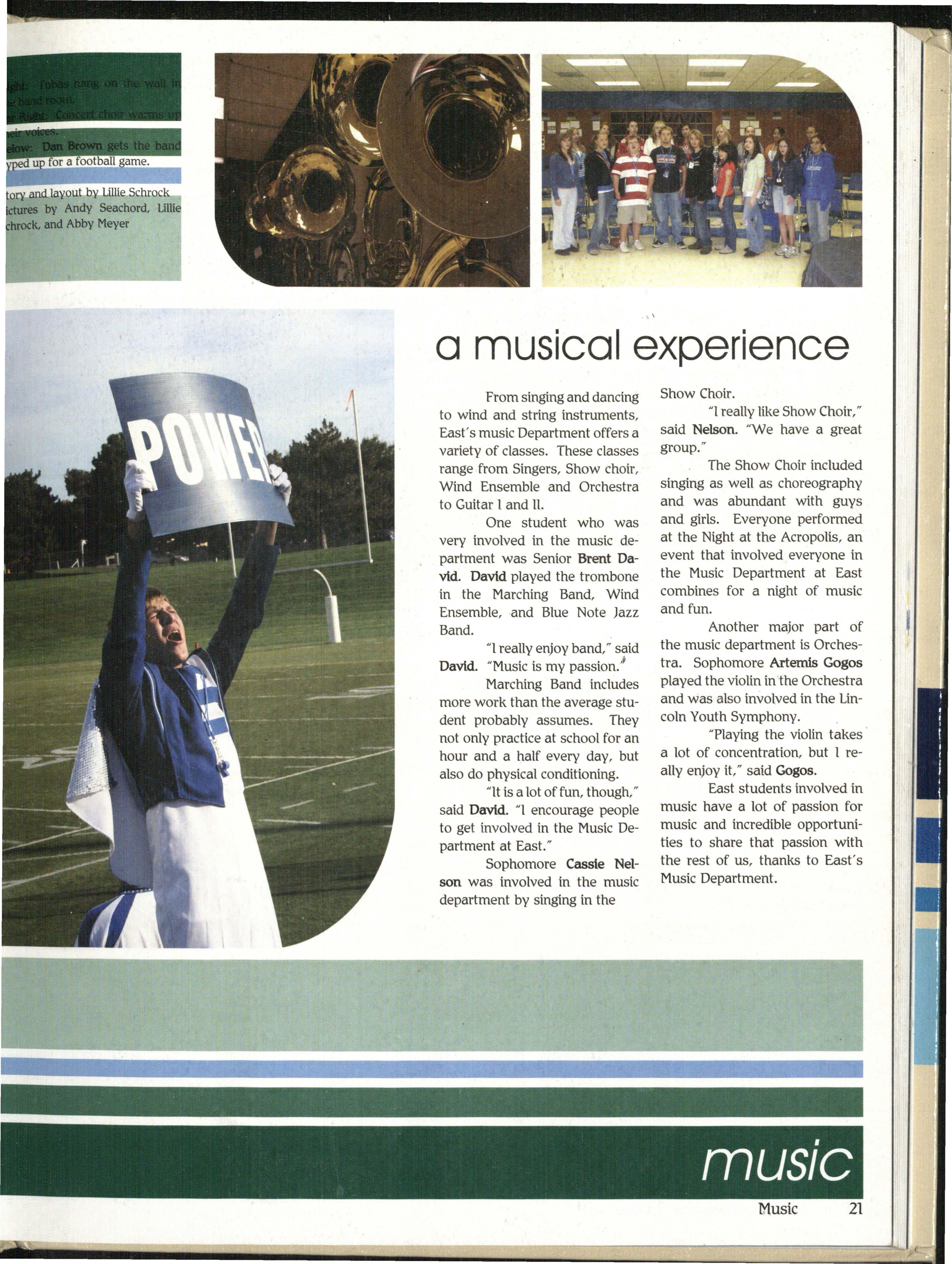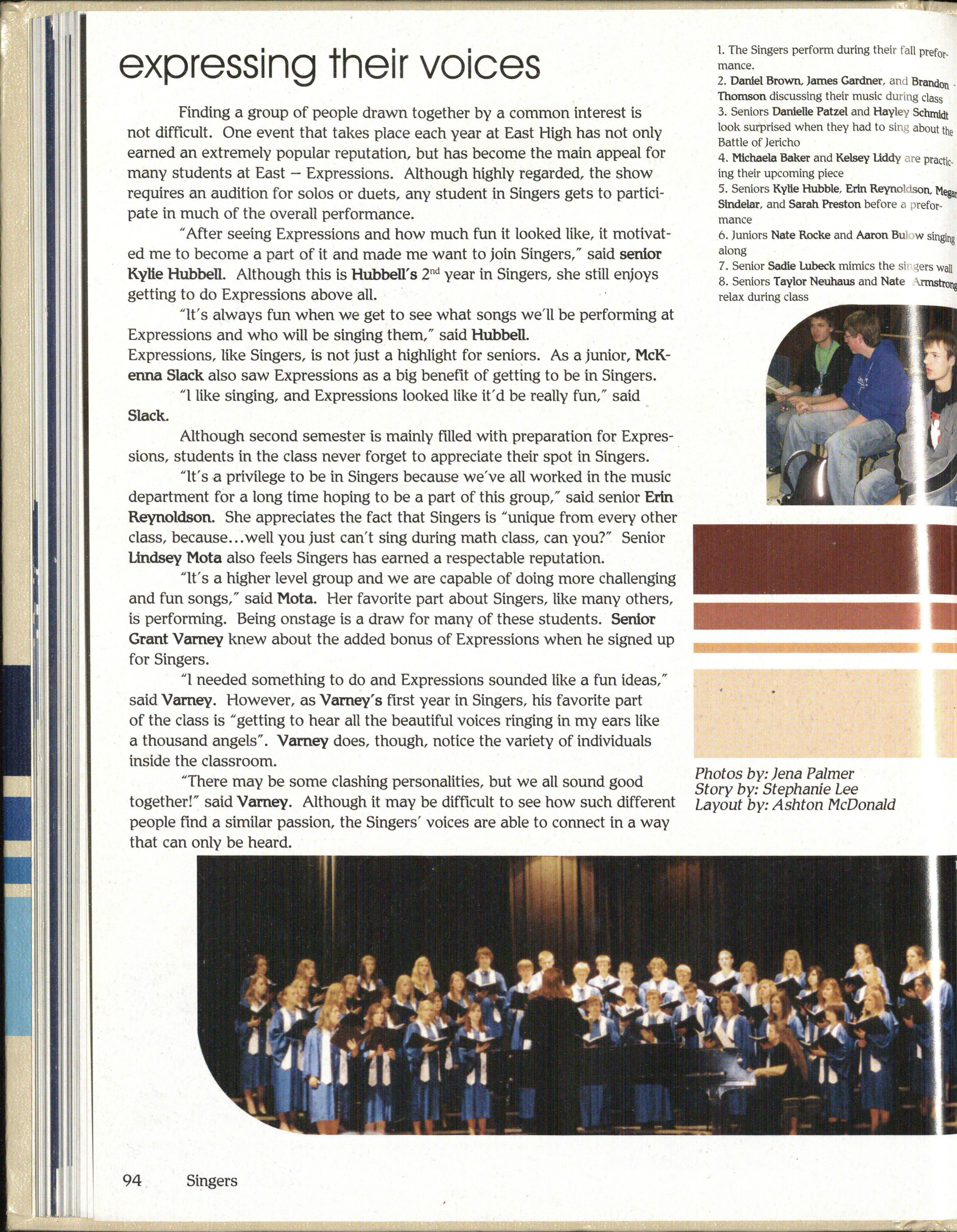 "There are clubs for everything, everyone's supportive and hardworking. Students at East motivate each other to strive ln all actMtles," said Olson.