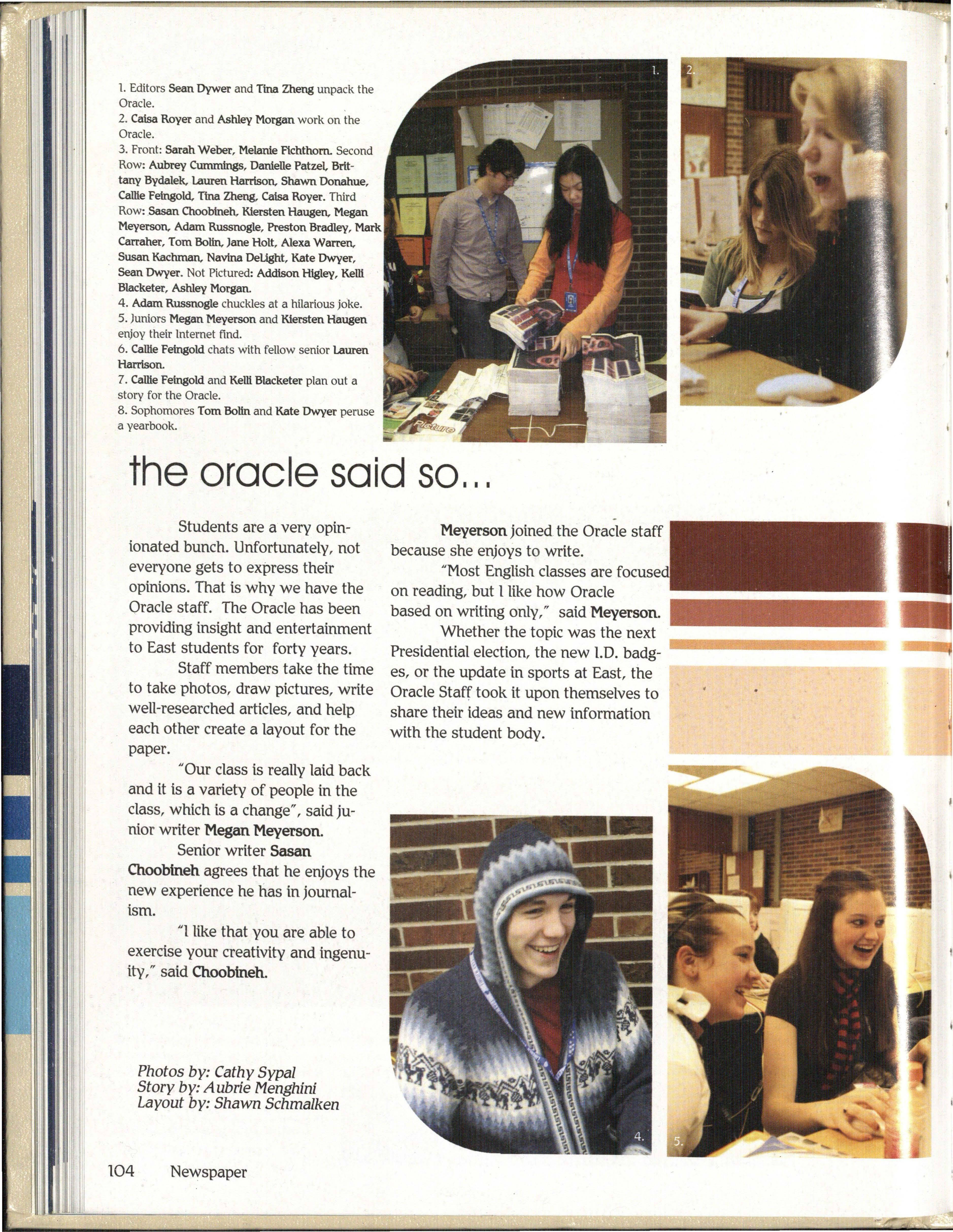 "l was kind of bored of the curriculum at East an c l wanted something different for my senior year,' she said.
