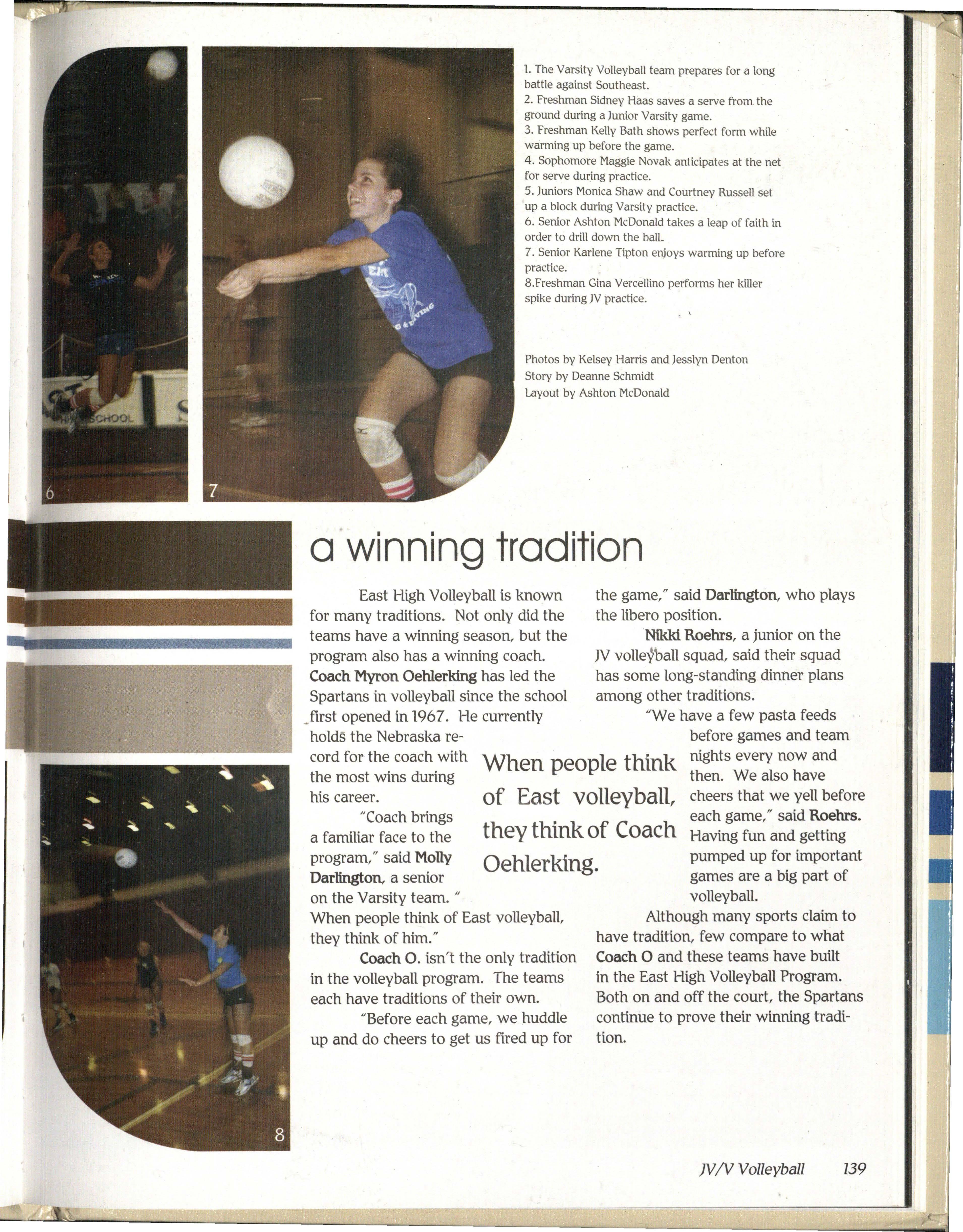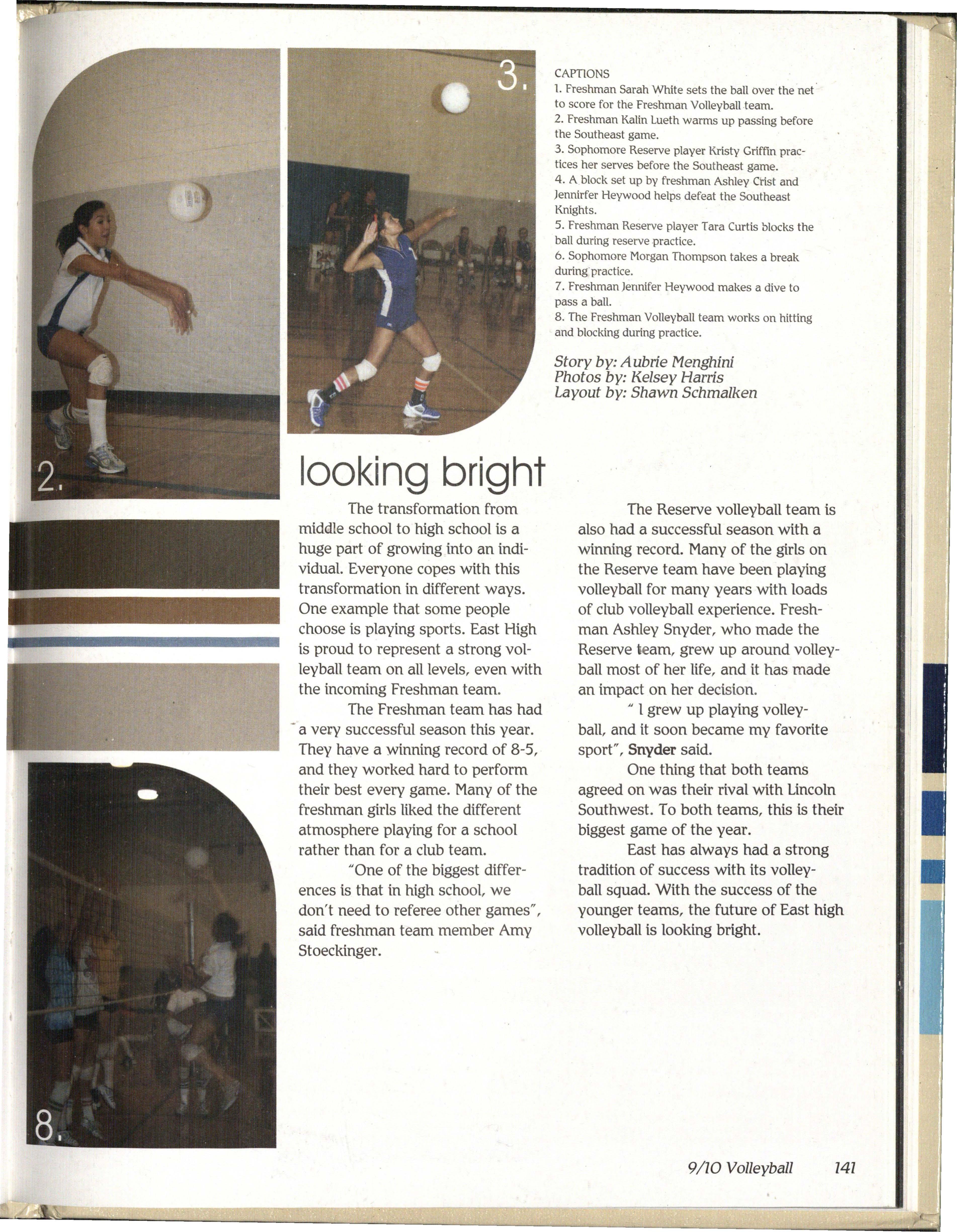 Lincoln EAST Girls Junior Varsity Front (L-R)Valerte Johnson, Amanda Olson, Jamie Zillig, Stacey Herbal, Kelly Howe, Mary Jo Garwick Back (L-R)Coach Brian Bullington, Monica Shaw, Kelly Bath, Maggie Novak, Madison Schwartz, Kara Scheel