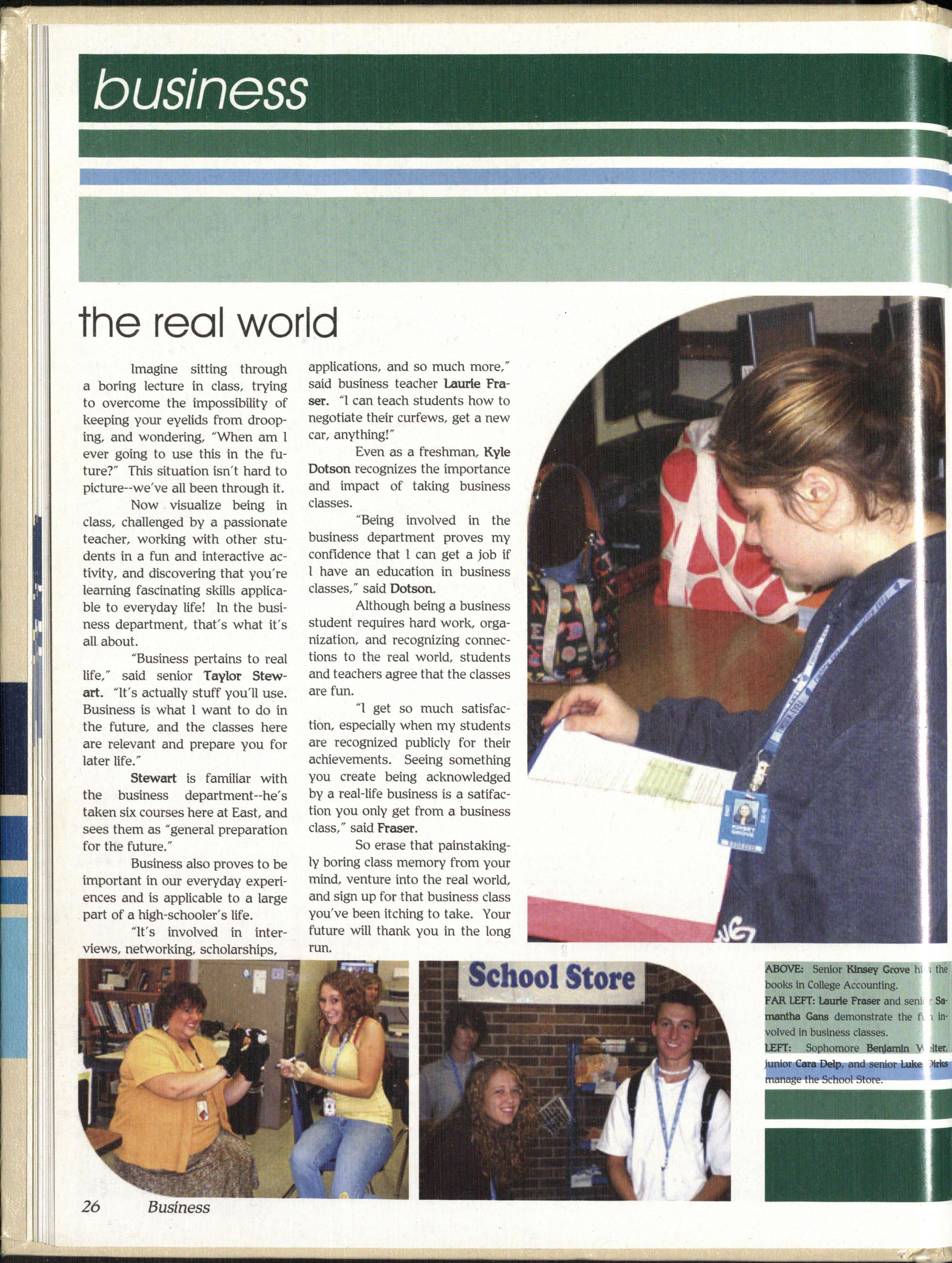 3: Juniors Winston Beans and Dylon Horrocks join Senior Sarah Ford with fellow Entrepreneur students learn about business management.