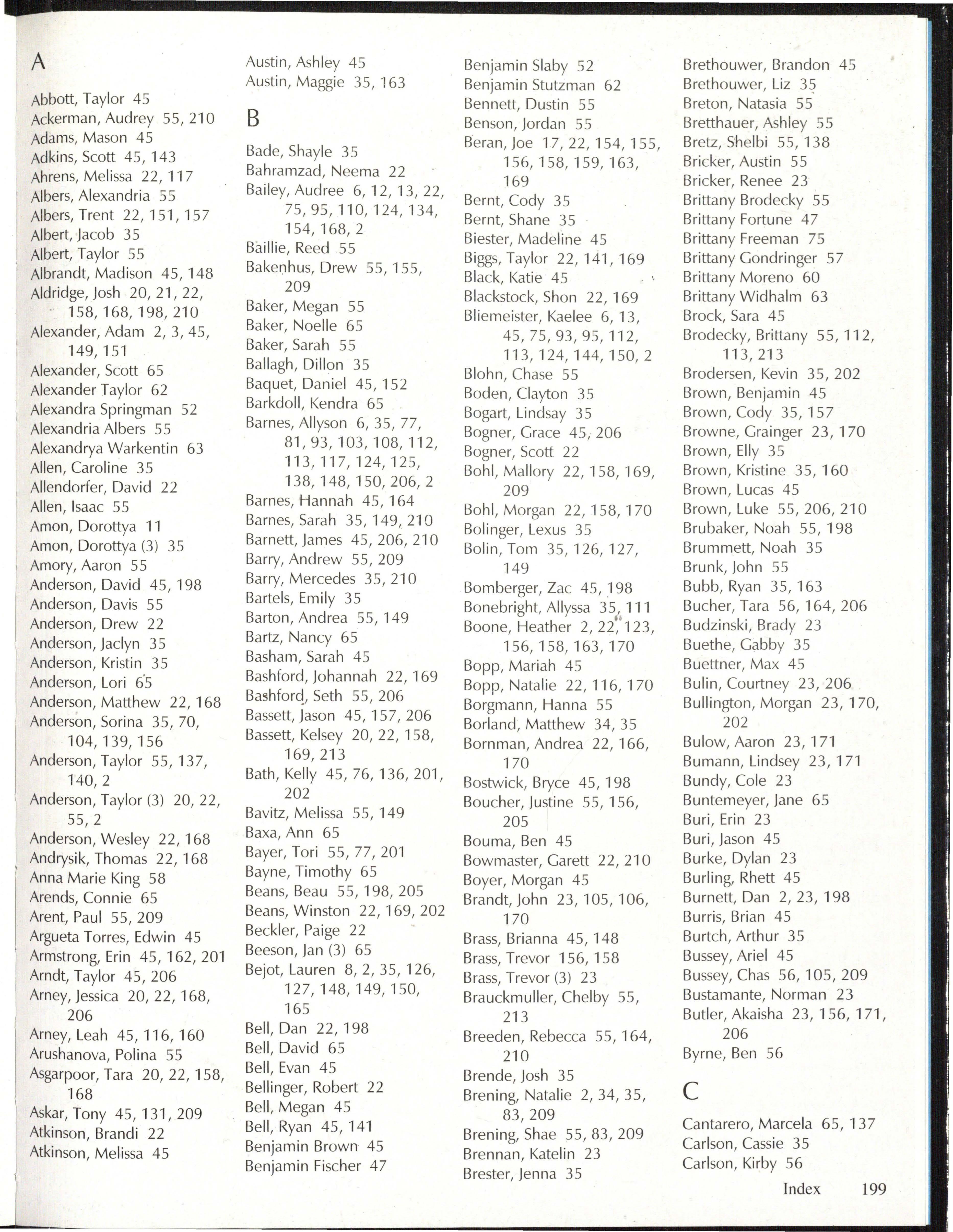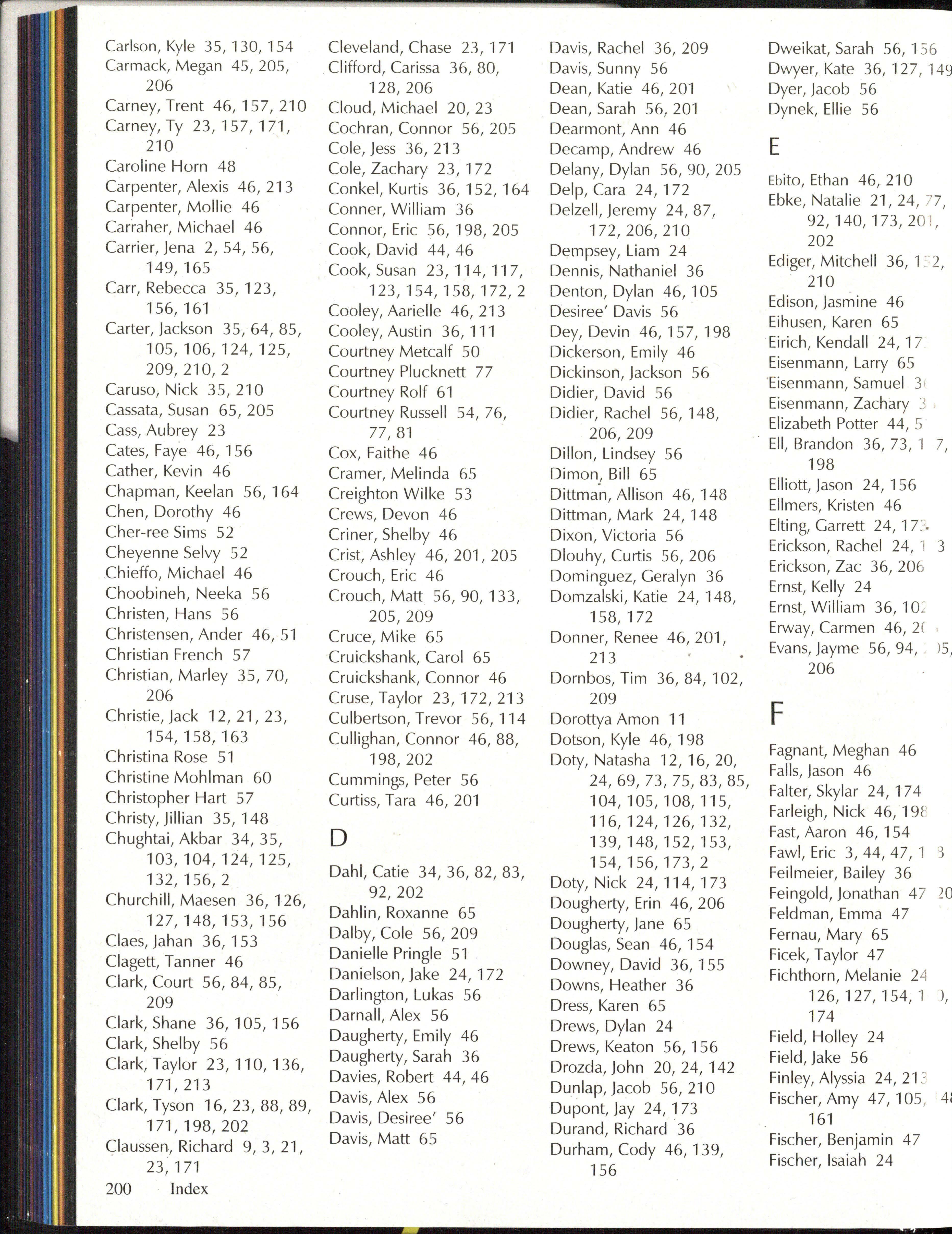 Ernst, William 36, 1 o;, Erway, Carmen 46, 2 ( Evans, Jayme 56, 94, , )5, 206