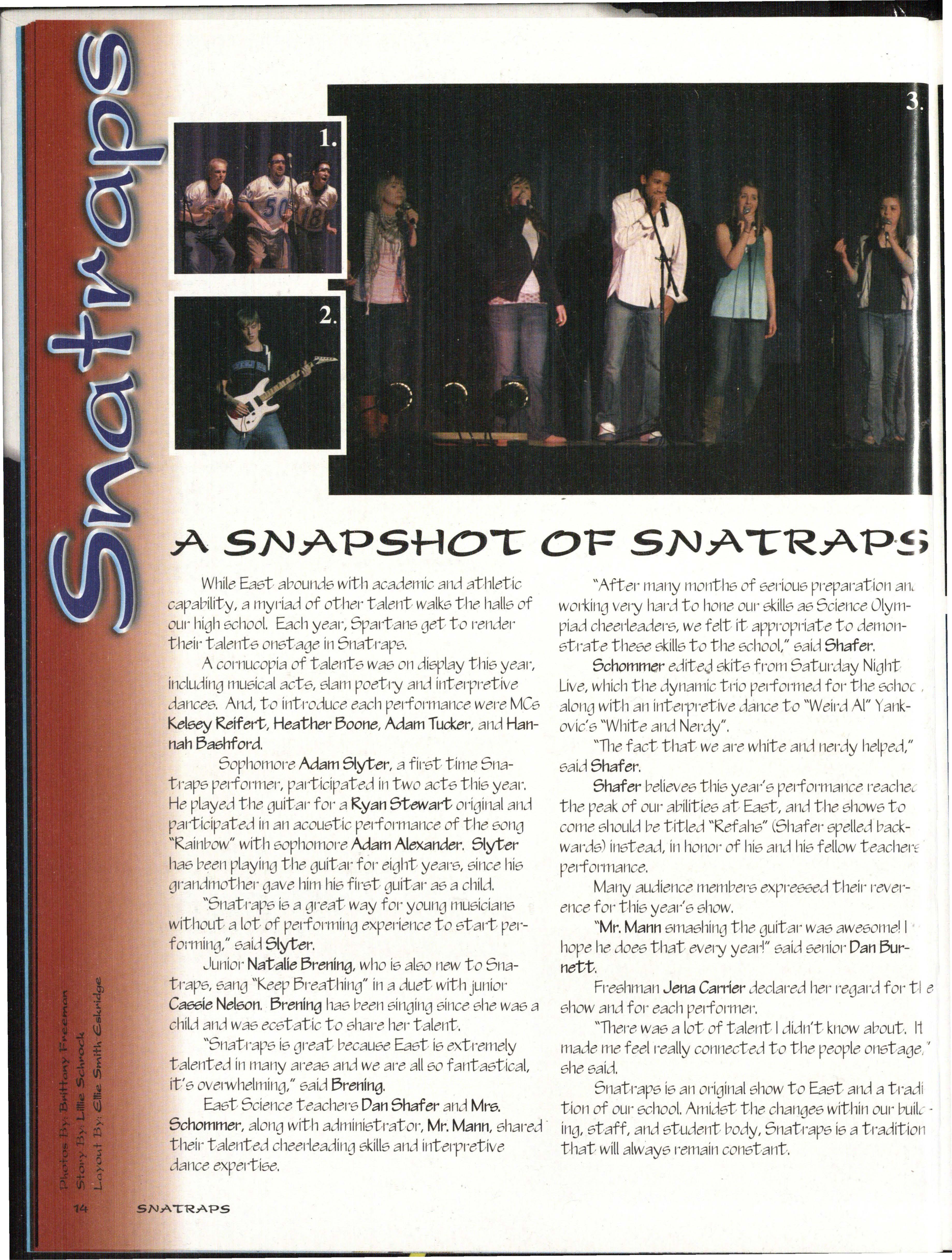 Snat1Aaps is an 01Aiginal show to East and a t1Aad i tion of our school. Amidst the changes within our builing, staff, and student body, Snat1Aaps is a t1Aaditio n that will always 1Aemain constant.