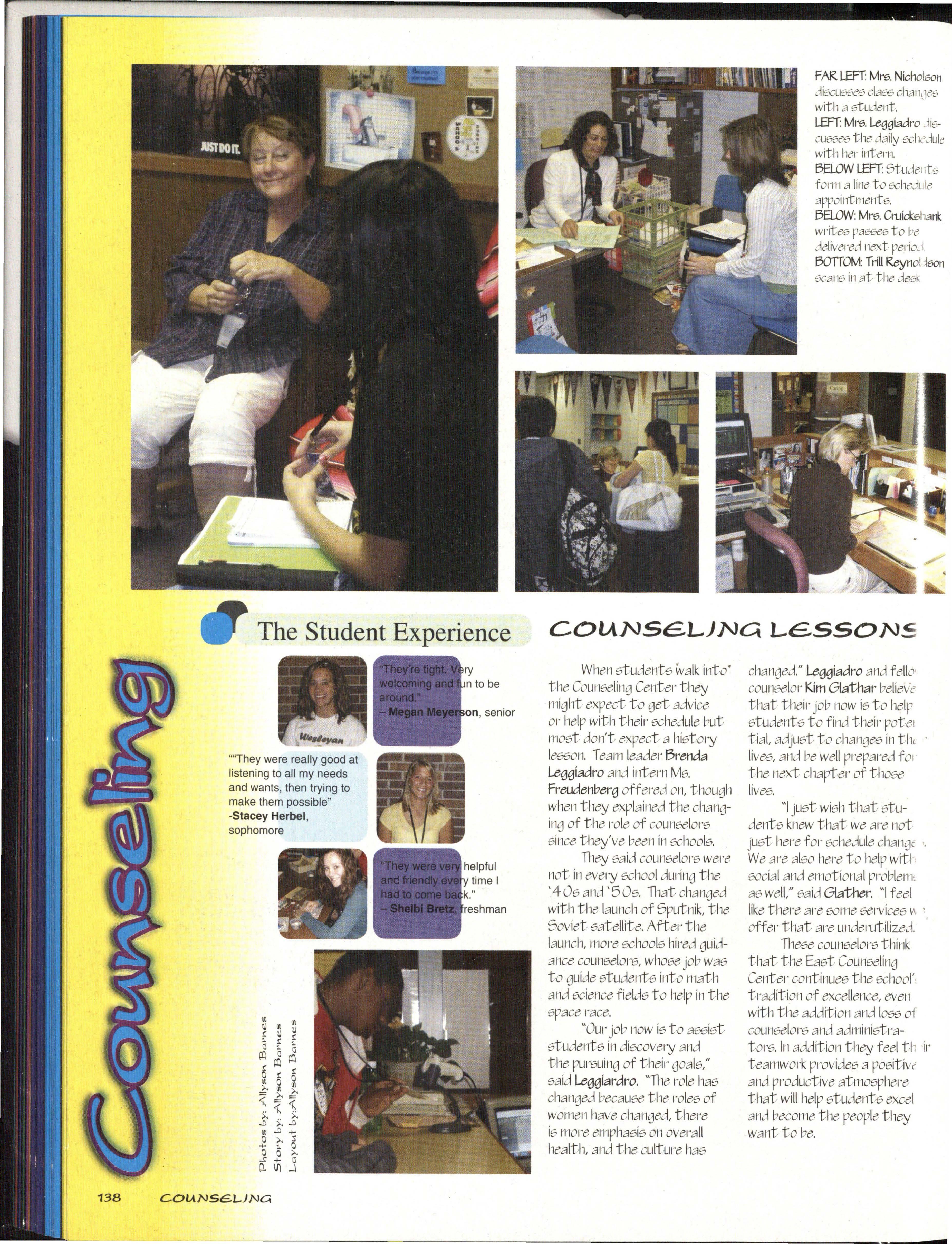 East also got an administrative makeove1·. Principal Sue Cassata, Associate Principal Dave Bell, and Special Ed Coordinator Natalie Wehry a1-i-ived from No1·th Stai· this yea1-, while Associate Principal Liz Miller came from Park Middle School.