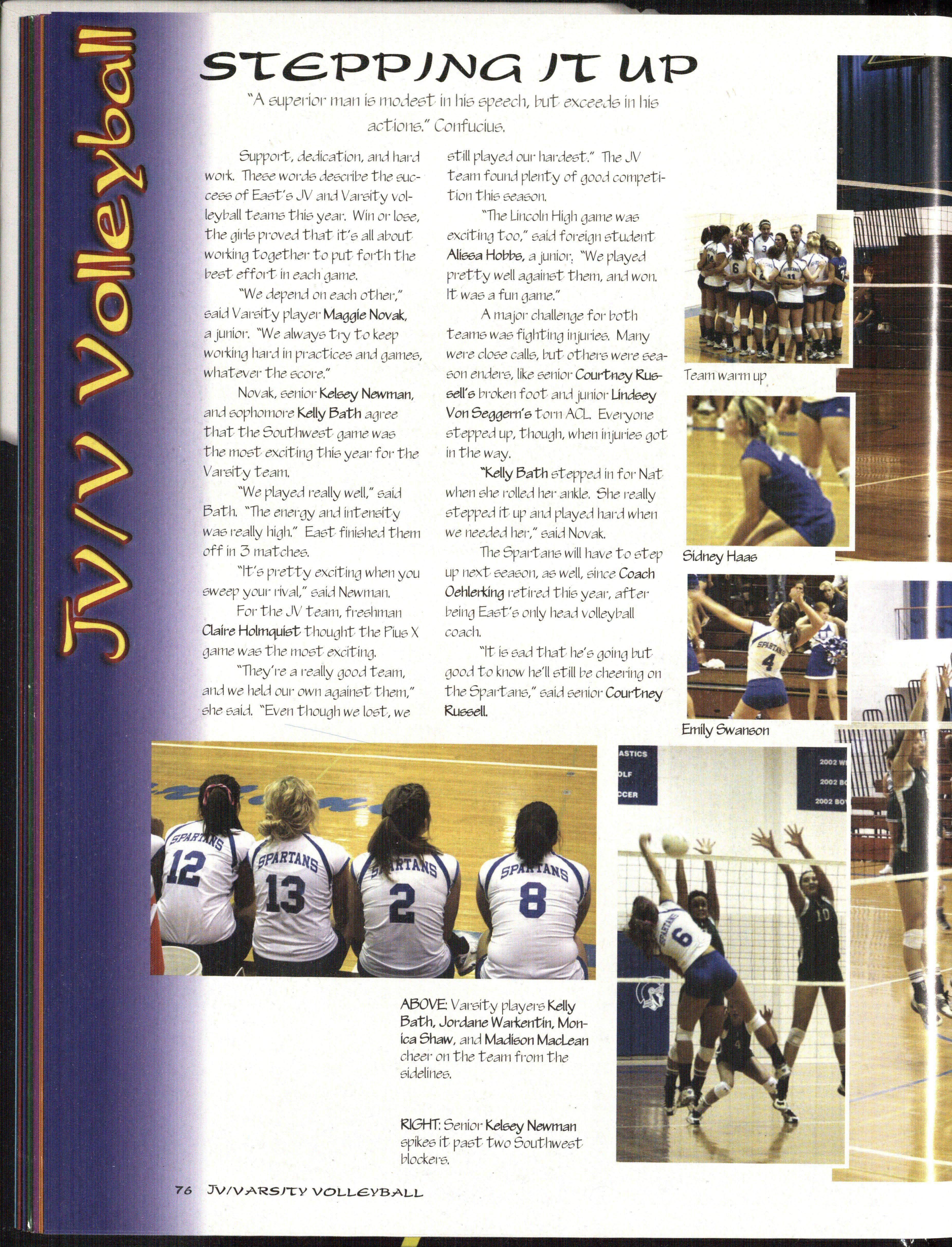 It began with the summer Olympics, hosted by China TI1e Oly mpics wern big. Even East had one of its fo1·mer students compete in the games. 1999 East g1·ad Shawn Redhage played fo1· the Austi-alian basketball team, a big change from his Spa 1·tan days on the cou1·t.