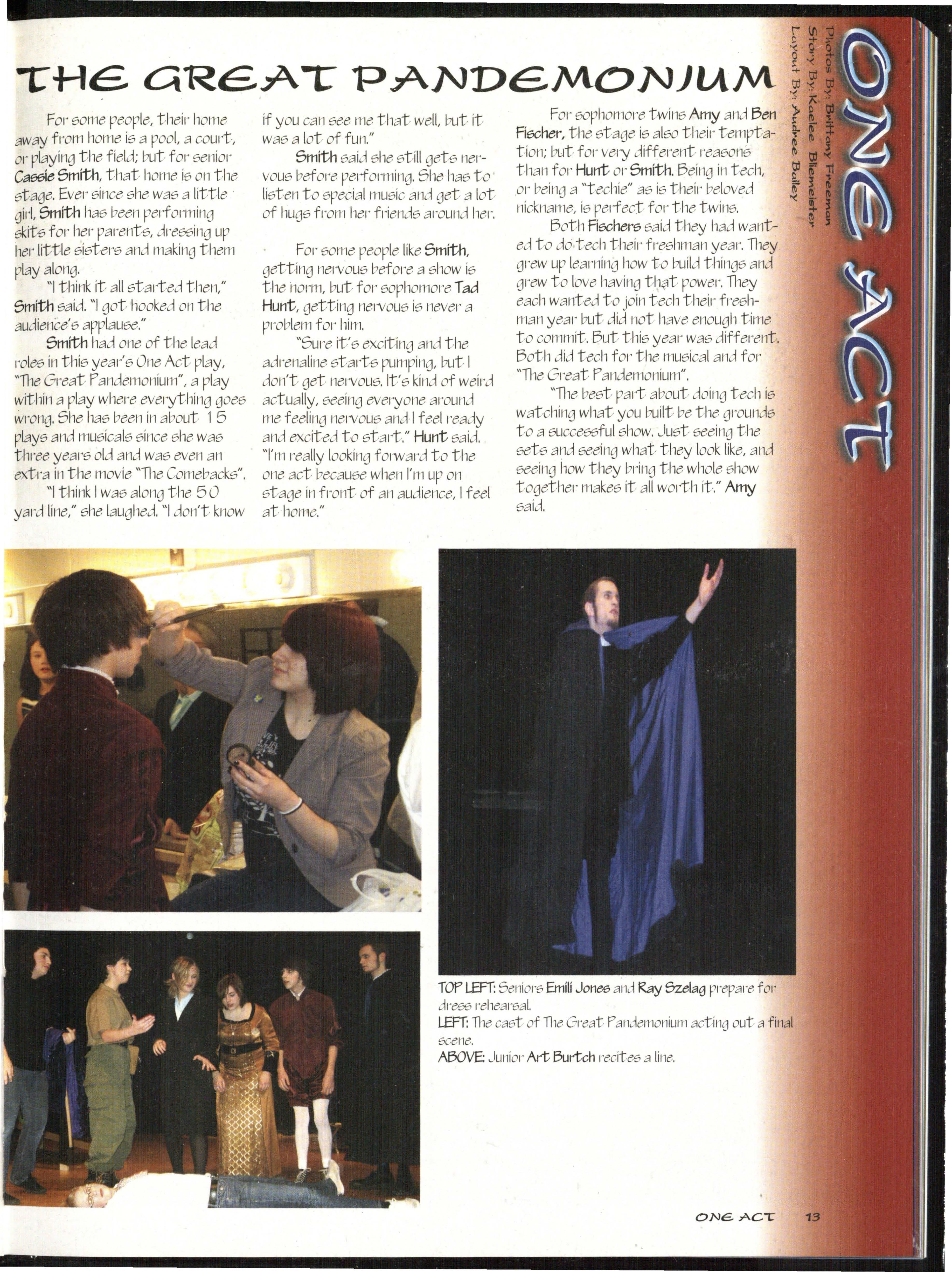 Smith had one of the lead roles in this year's O11e Act play, "Th e Great Pandemo11ium", a play within a pla y whe1 ·e everything goes wrong. She has been in about 1 5 plays and musicals since she was three yea1 ·s old and was even an extra in the movie "Tl1e Comebacks".