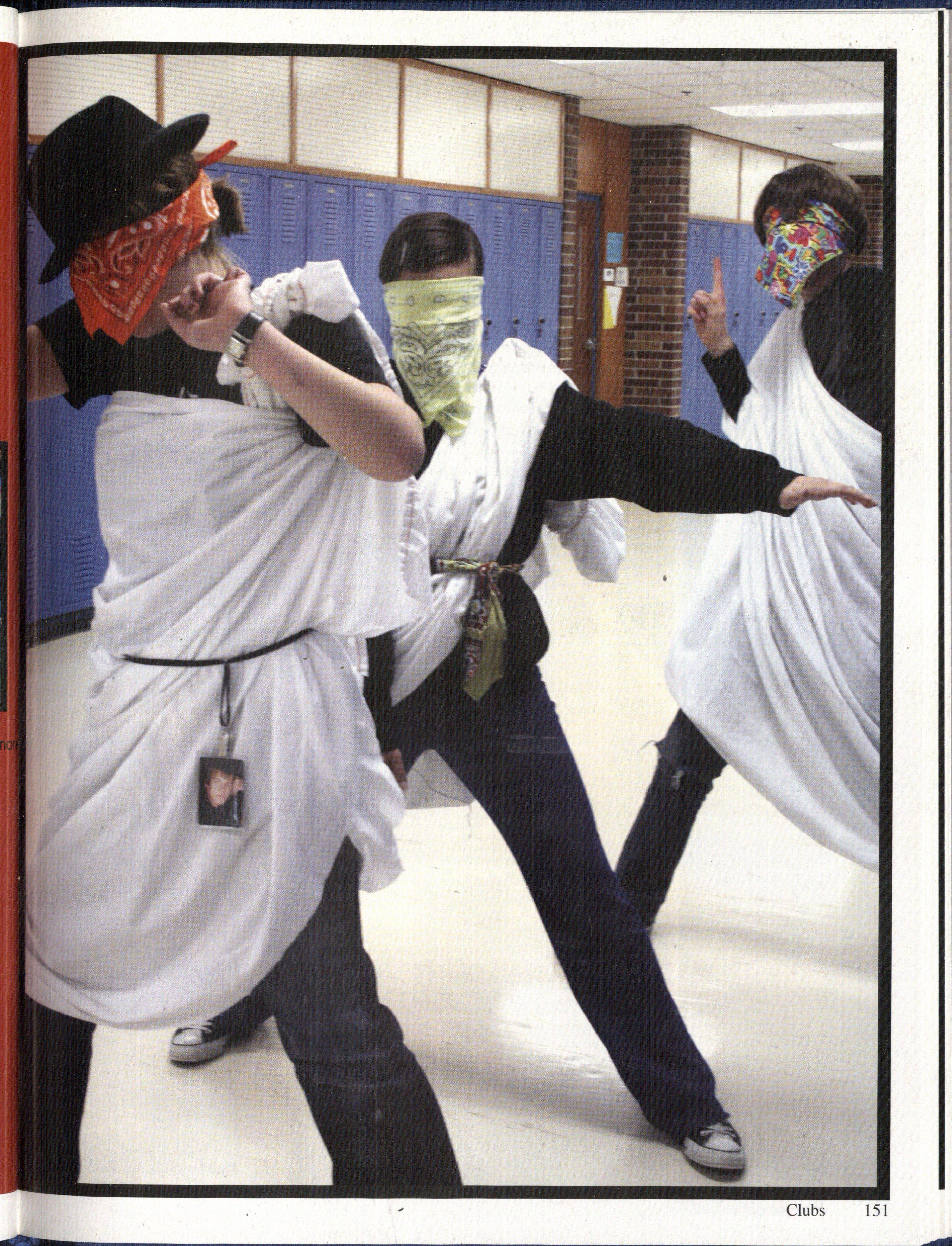"They wore long-sleeve white sweaters and pleated skirts above the knee," said Art teacher and former sponsor Donna Wilson. "They looked a little homemade but that's what the girls wanted," Today the uniforms are simpler