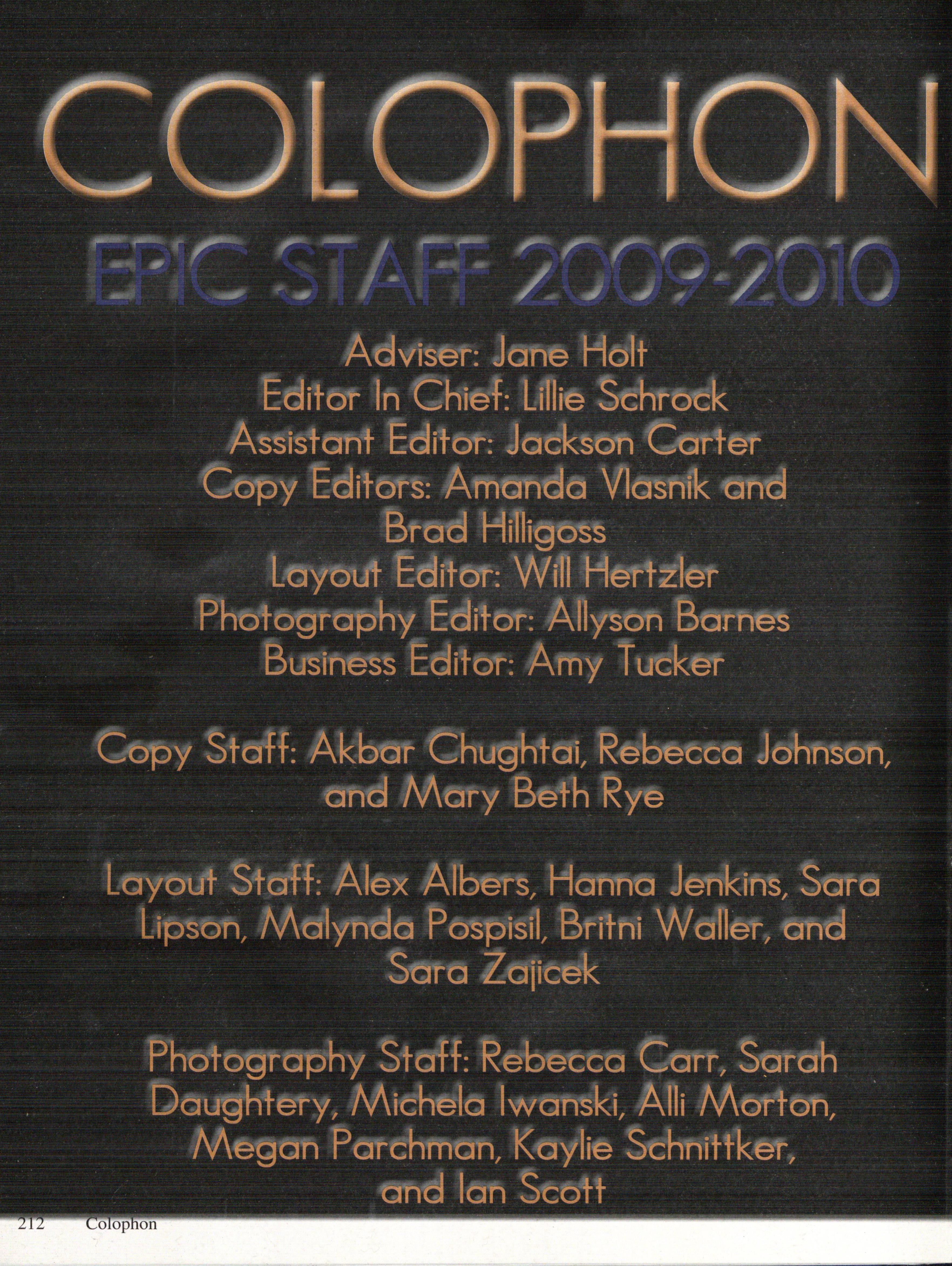 Middle Row : Terra Young , Emily Bartels, Ashley Hoffman, Kaip Watson, Sara Lipson