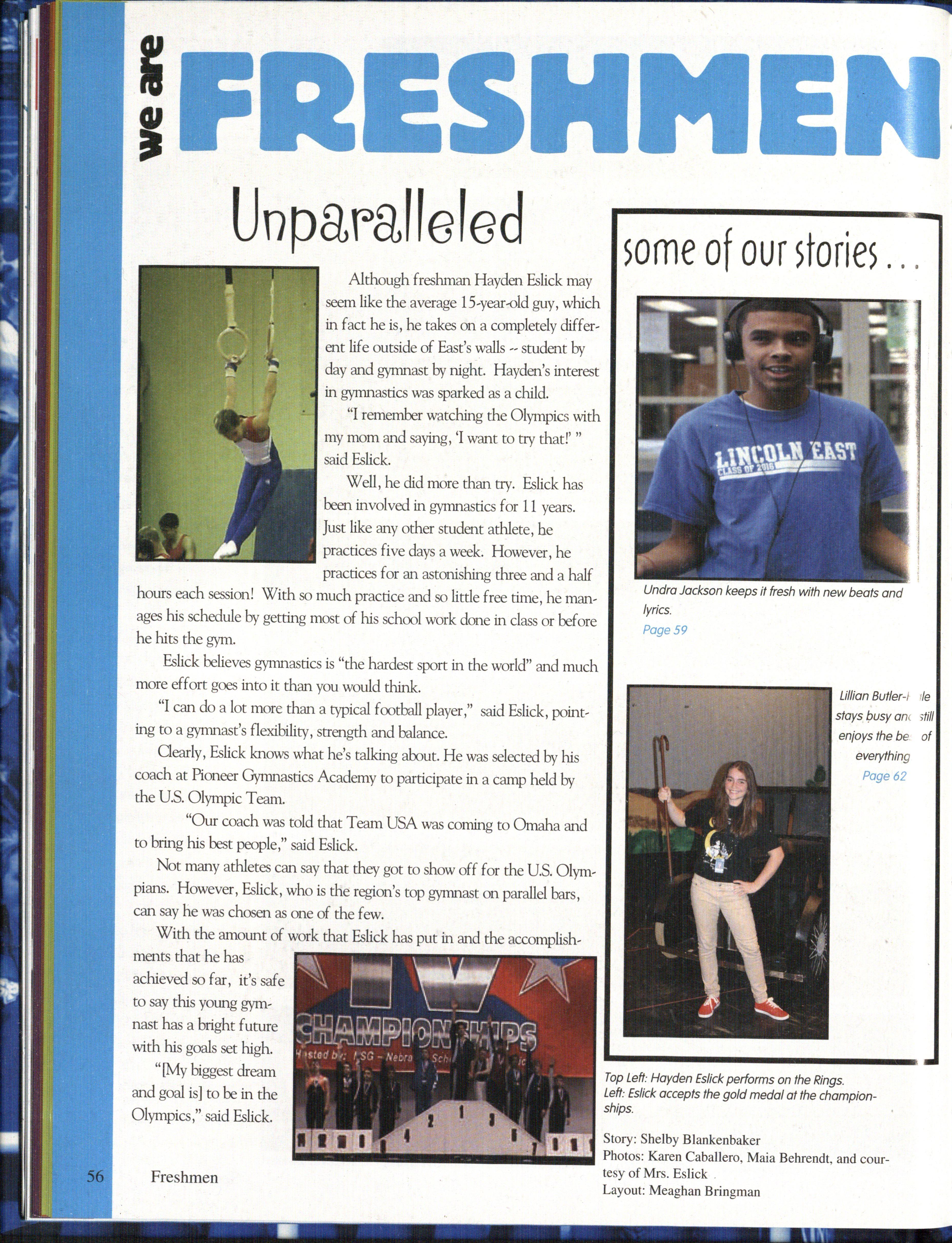 od ABOVE: Freshman Lacey Jessen hoists herself over the bar (photo by Mrs.Jessen).