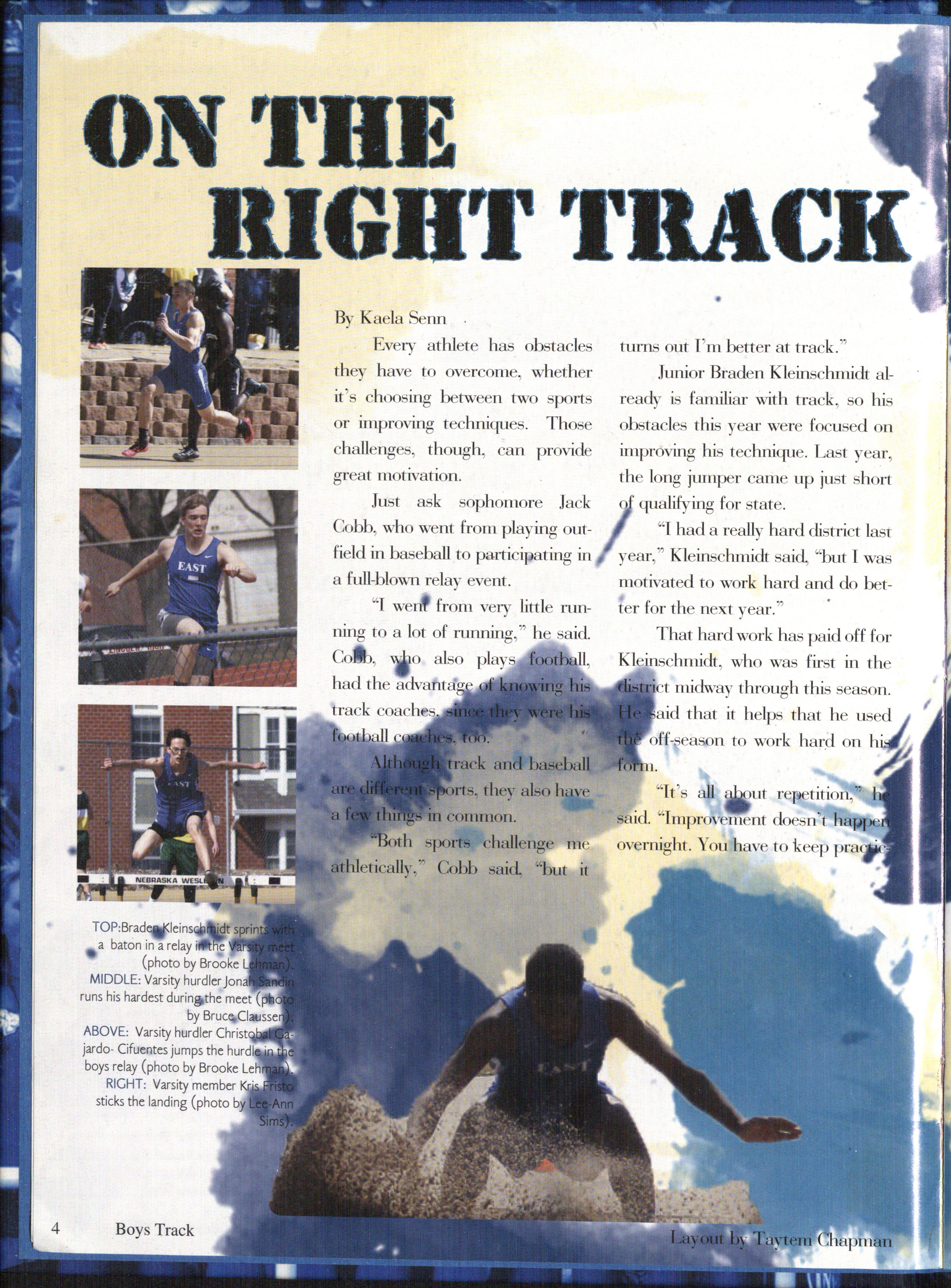 Junior Brad n Kleinschmidt already is familiar with track , so his ob tacles this year were focu ed on improving his technique. Last y ar, the long jump r cam up just short of qualifying for state.