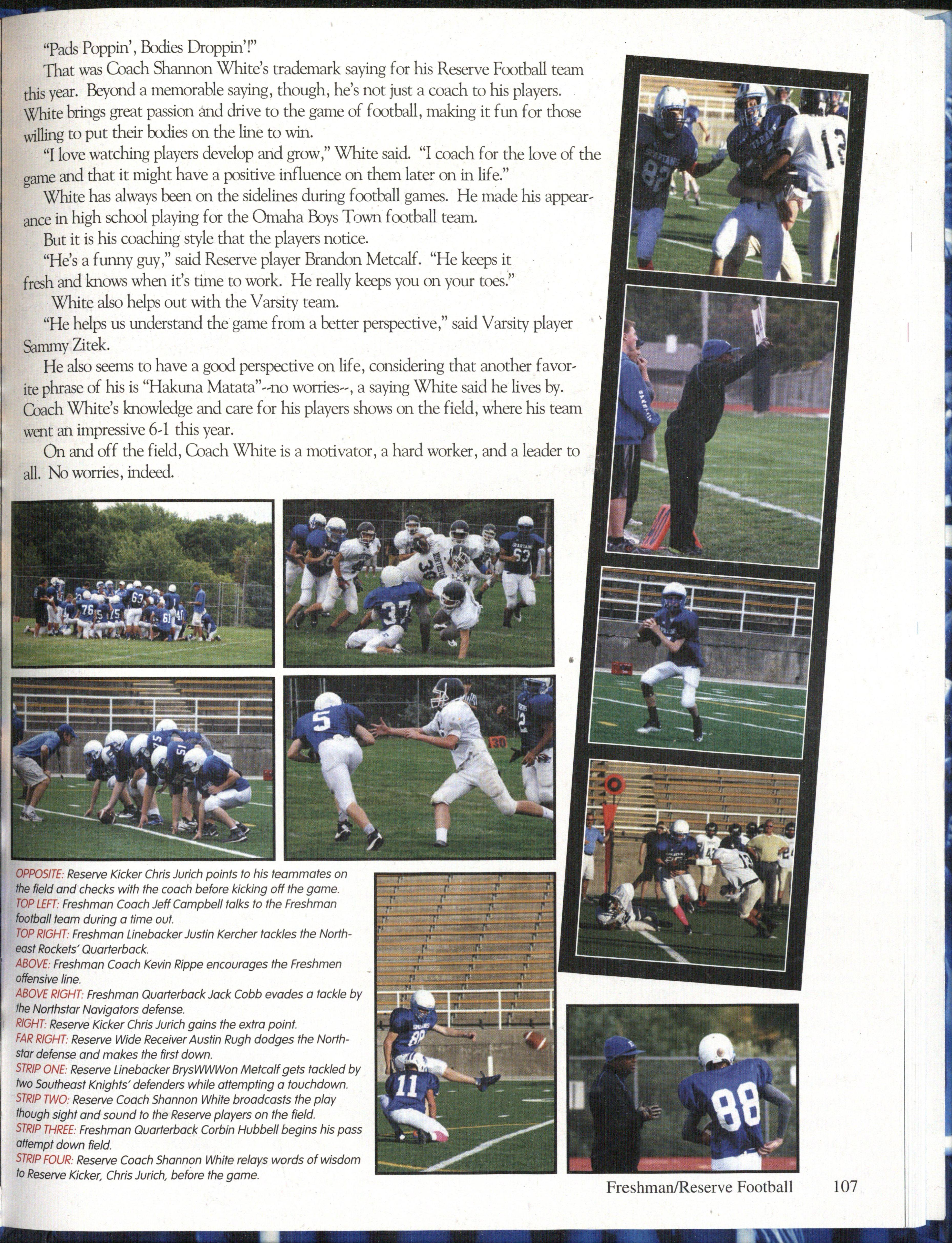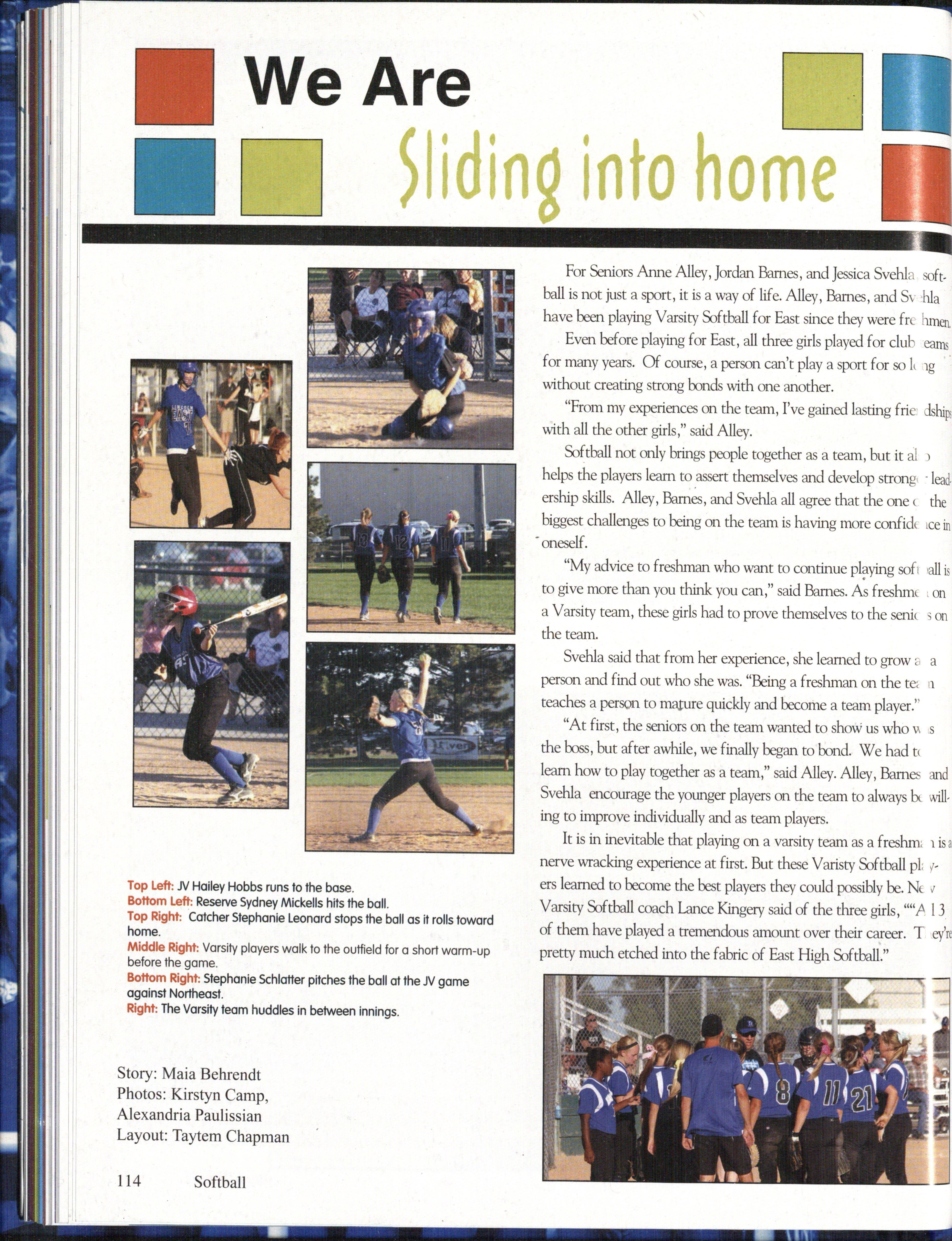 • 8:JV player Carly Boll runs down the field (photo by Marit Koszewski). <J: Rt serve girls trying to stay warm during a game (photo by Marit K ezwski).
