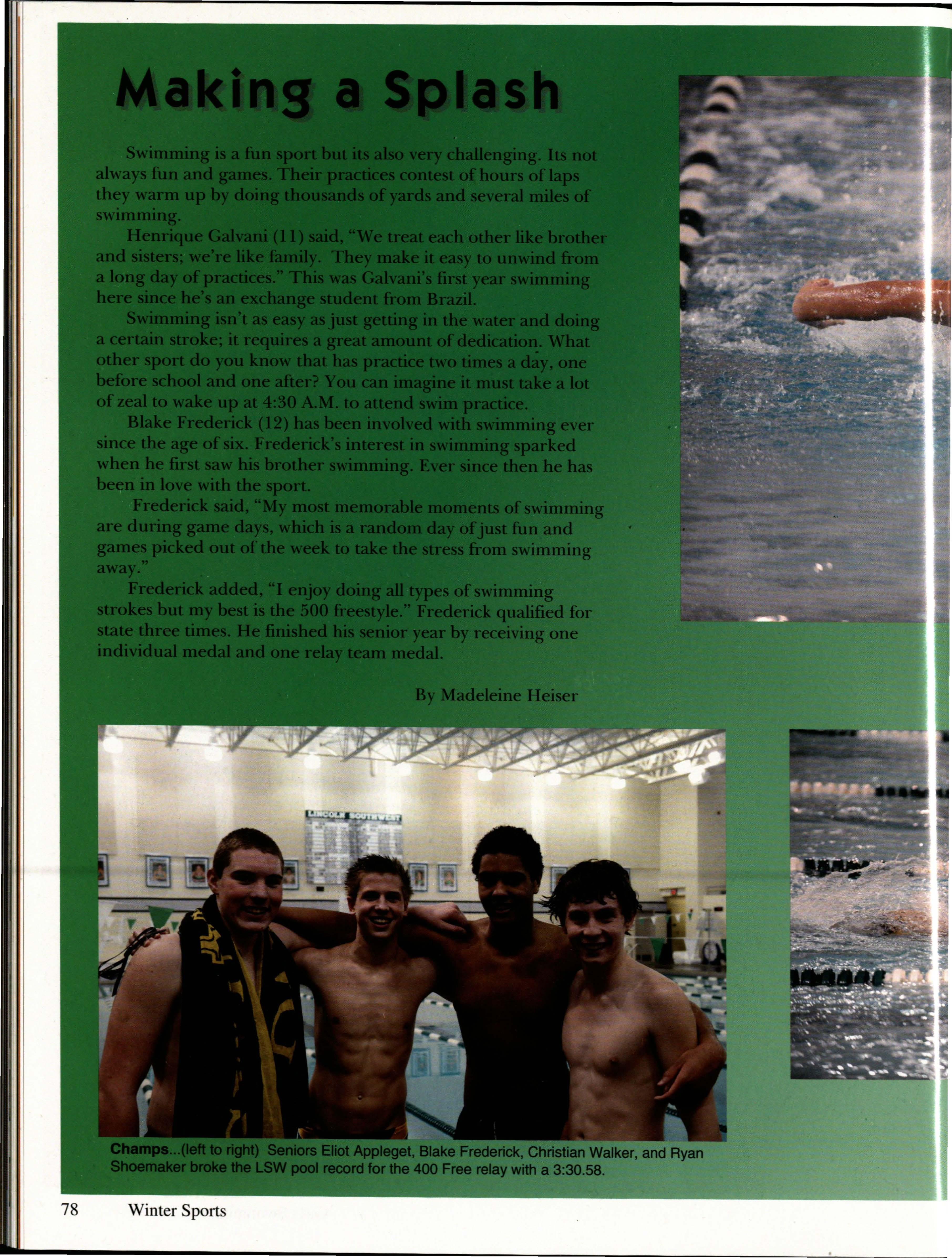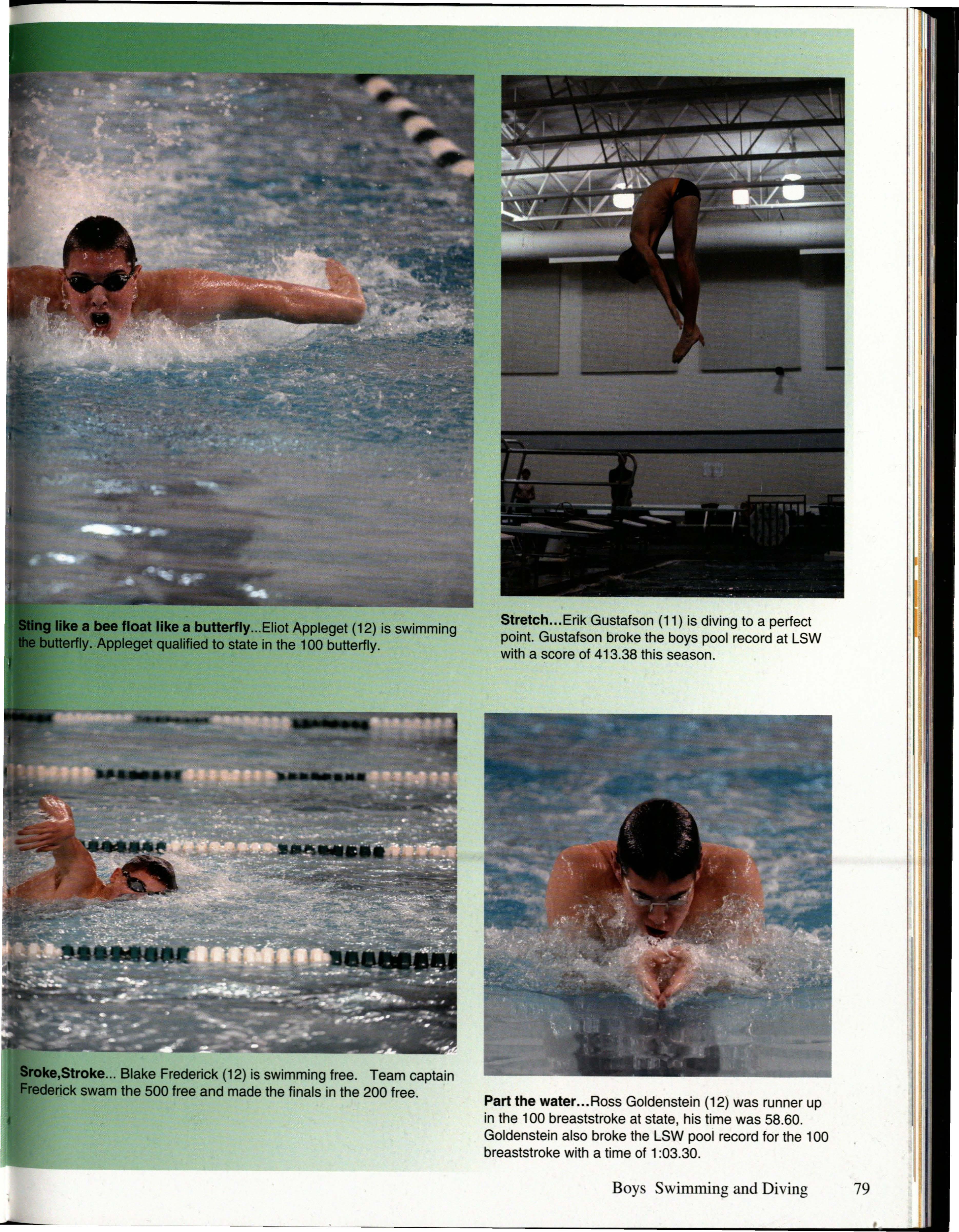 Boys Swimming Back Row (L to R): Coach Dave Peters , John Jones , Jay Stuart , Robert Lewicki , Connor Preston , Mason Christensen , Blake Frederick , Christian Walker
