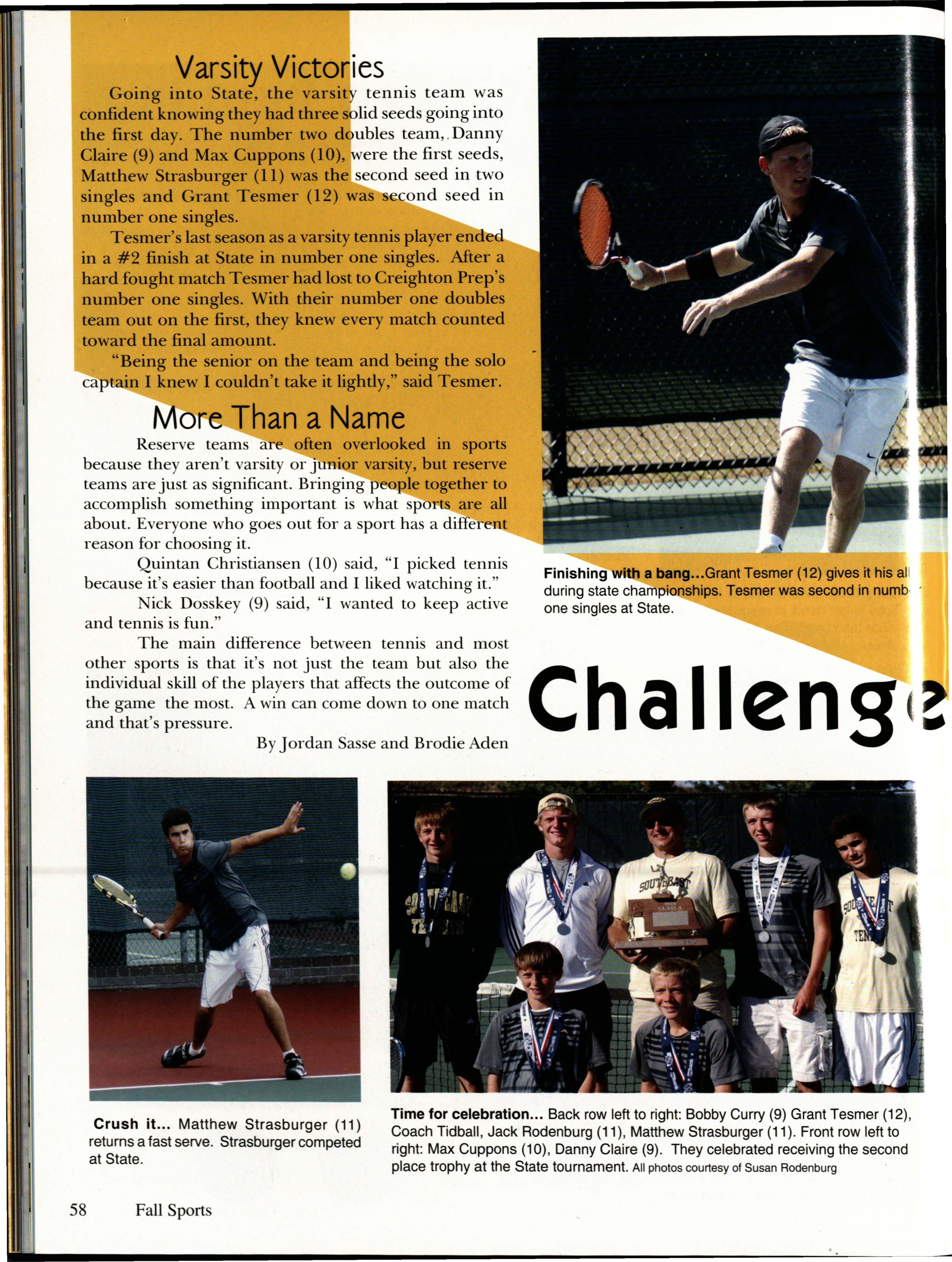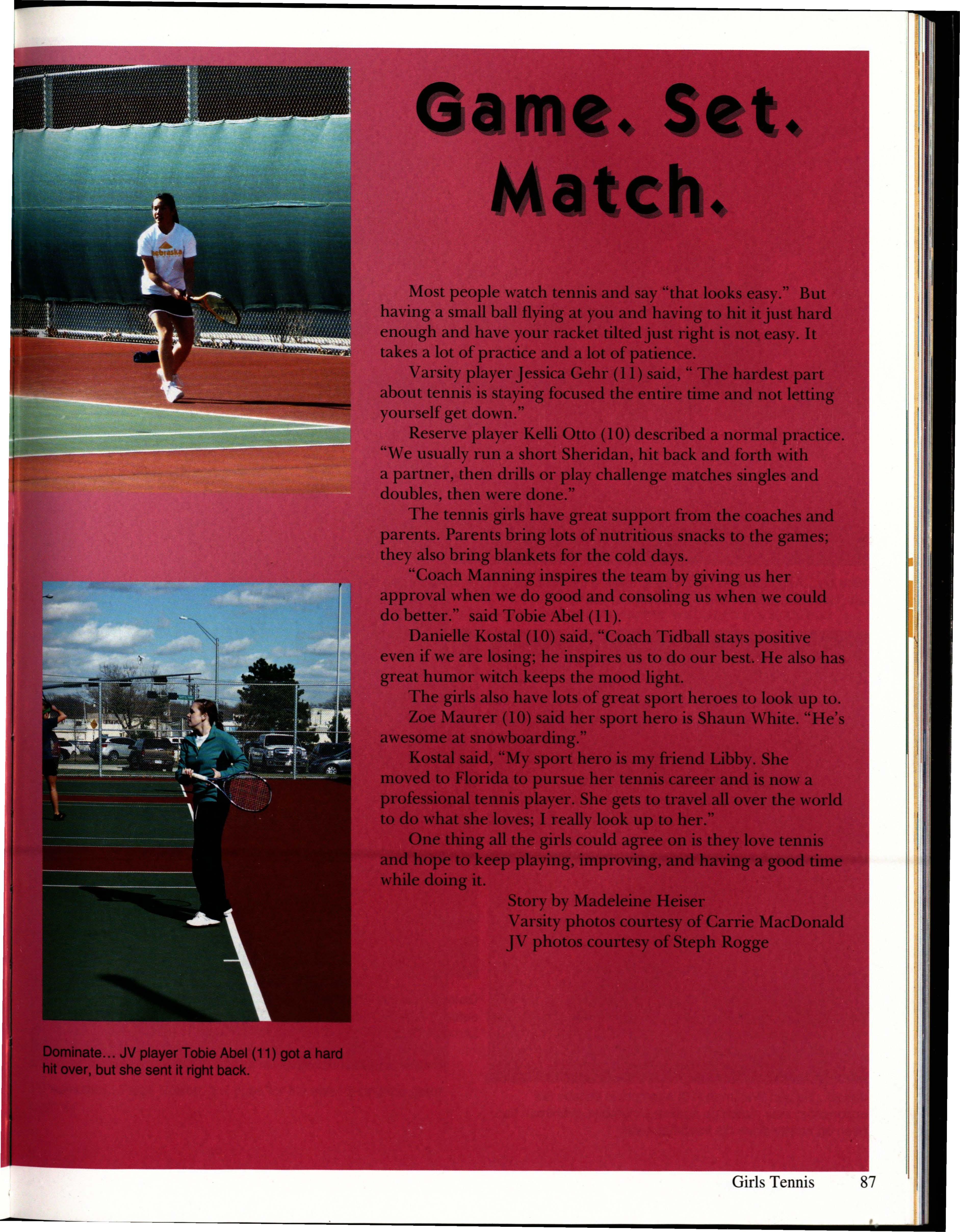 Girls Tennis Back Row (L to R): Coach Anne Schernikau ,. Head Coach T im T idball , Coach Sherrie Manning Row