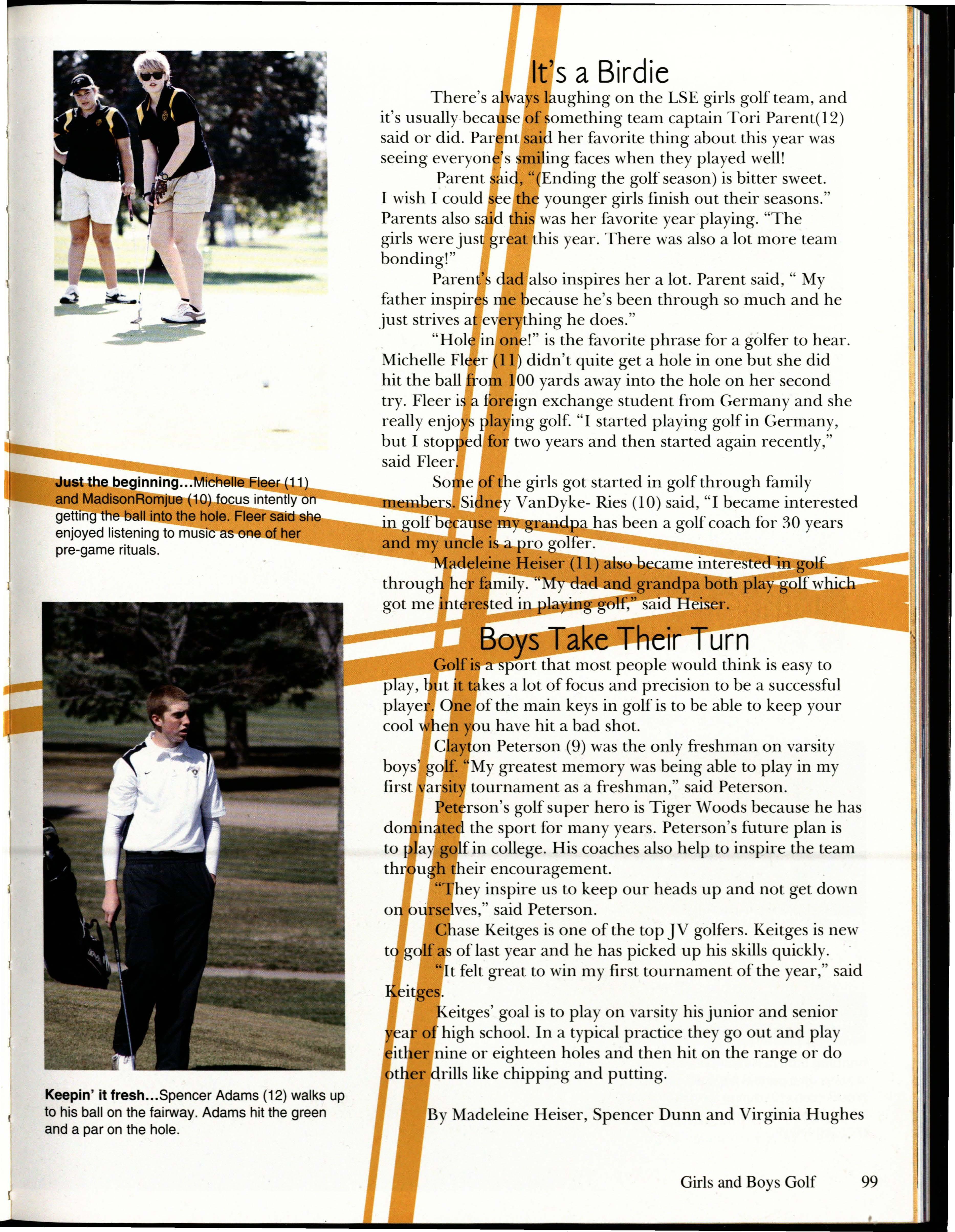 Girls Golf Back Row (L to R): Coach Spencer Duncan , Kelli O tto , Mari a Ljungs t ran d, A ndrea Holt , Coach R J Plas Front Row (L to R): Tori Parent Madeleine H eiser, Sidney