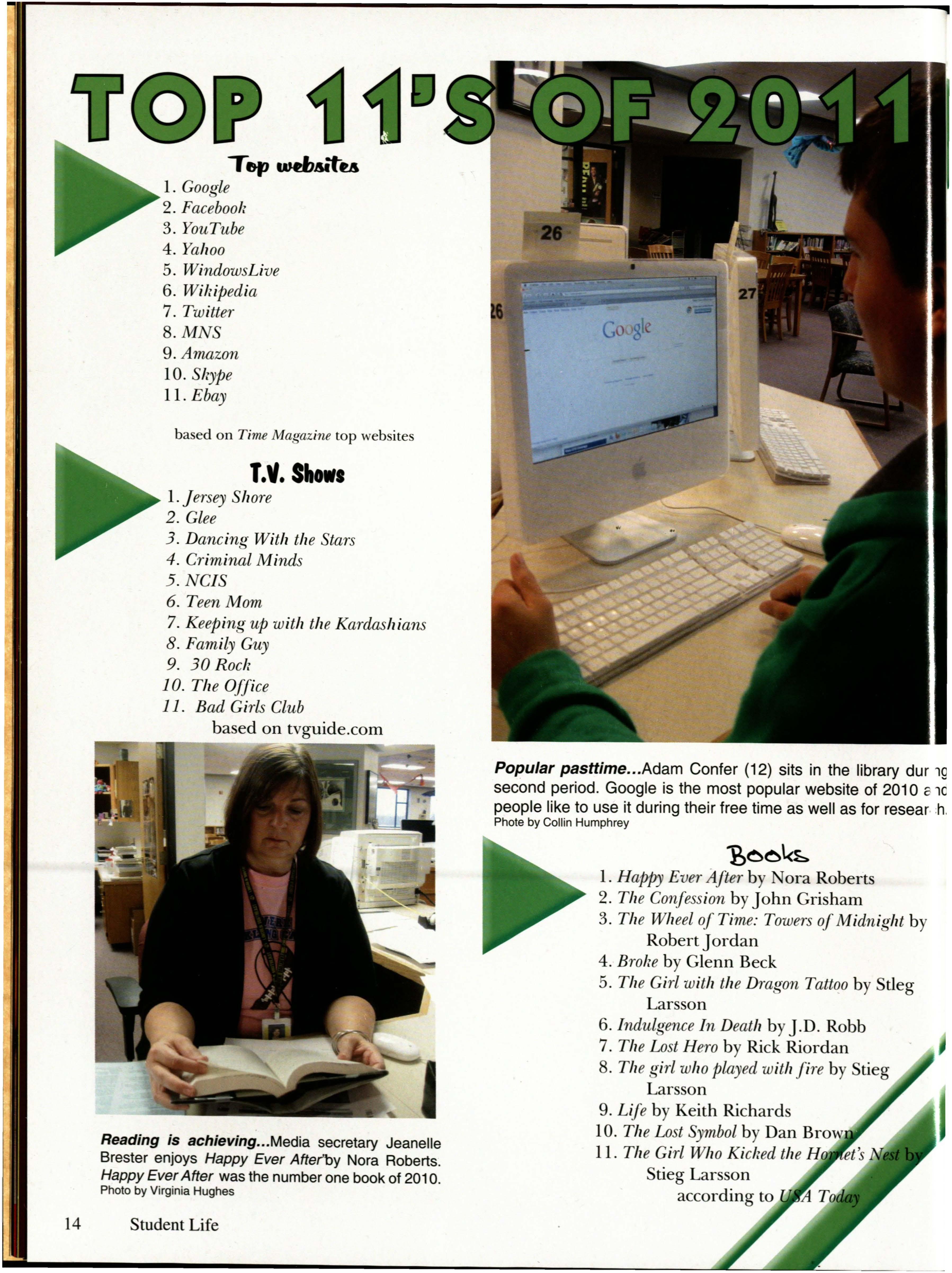Popular pasttime ... Adam Confer (12) sits in the library dur 1g second period. Google is the most popular website of 201 O a 10 people like to use it during their free time as well as for resear :h Phote by Collin Humphrey