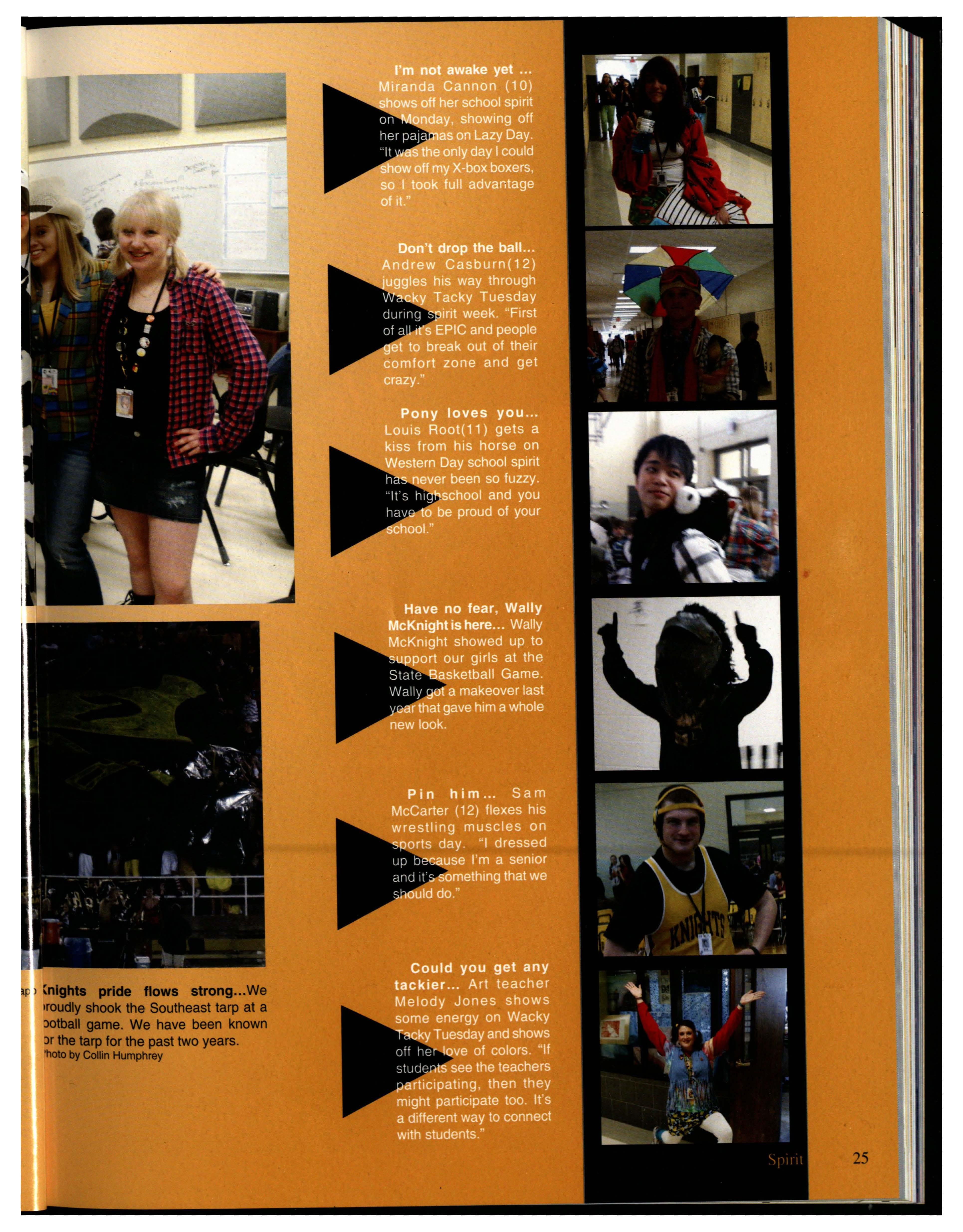 School pride "I'm proud to have the knight as a mascot because it represents strength and courage ," said Connor Randolph(12). "It's a good mascot for our school to bf.represented by."