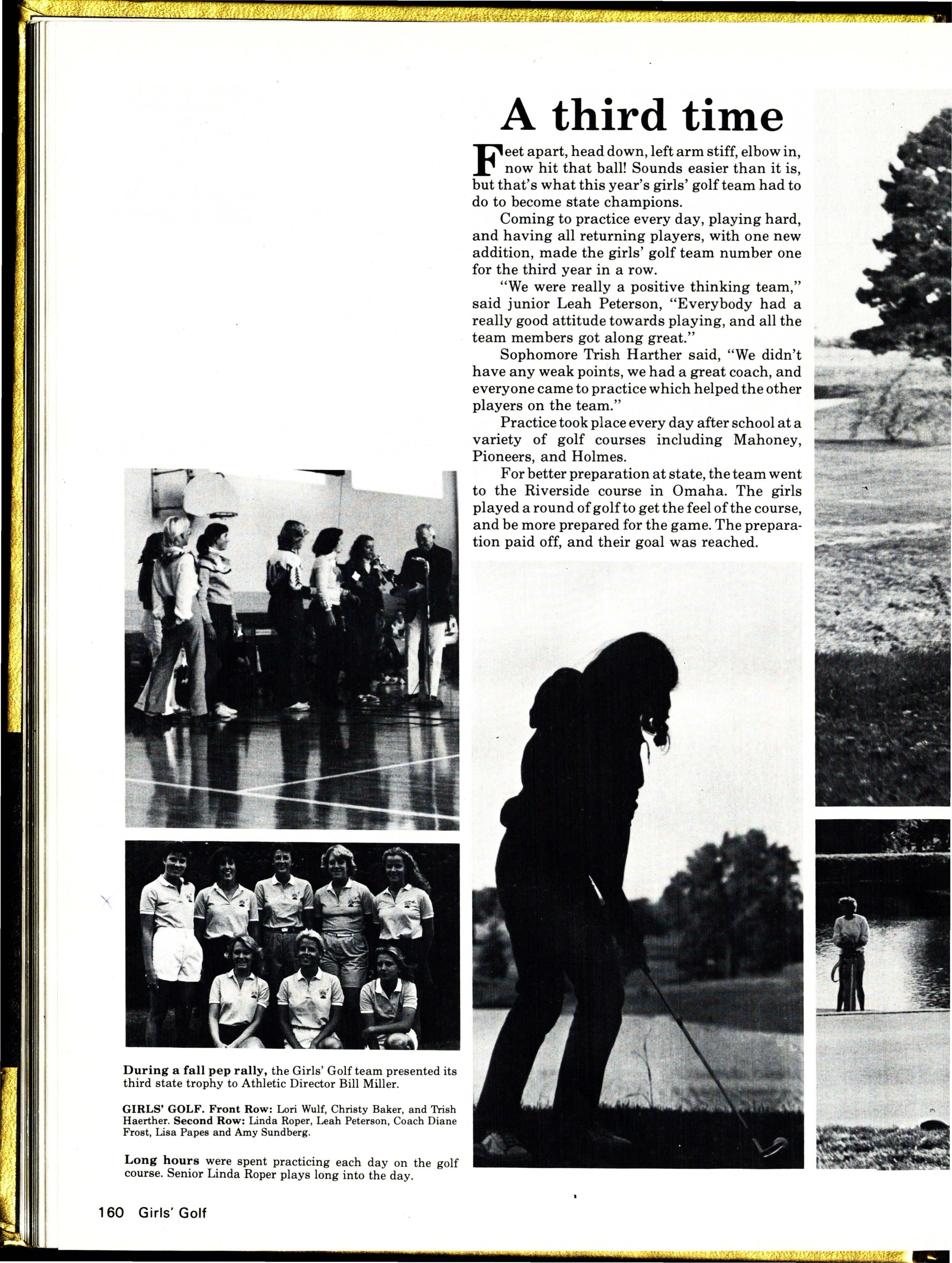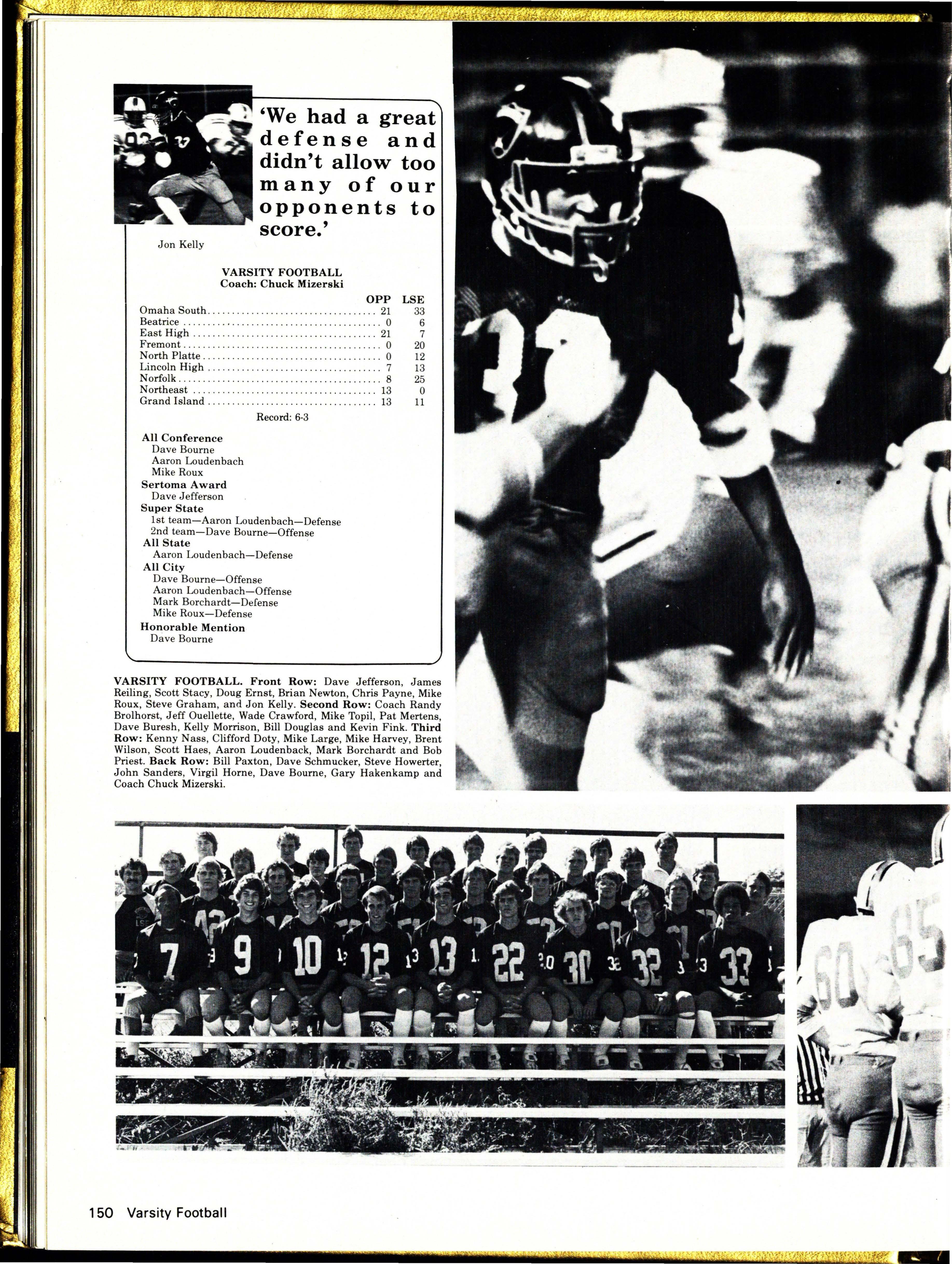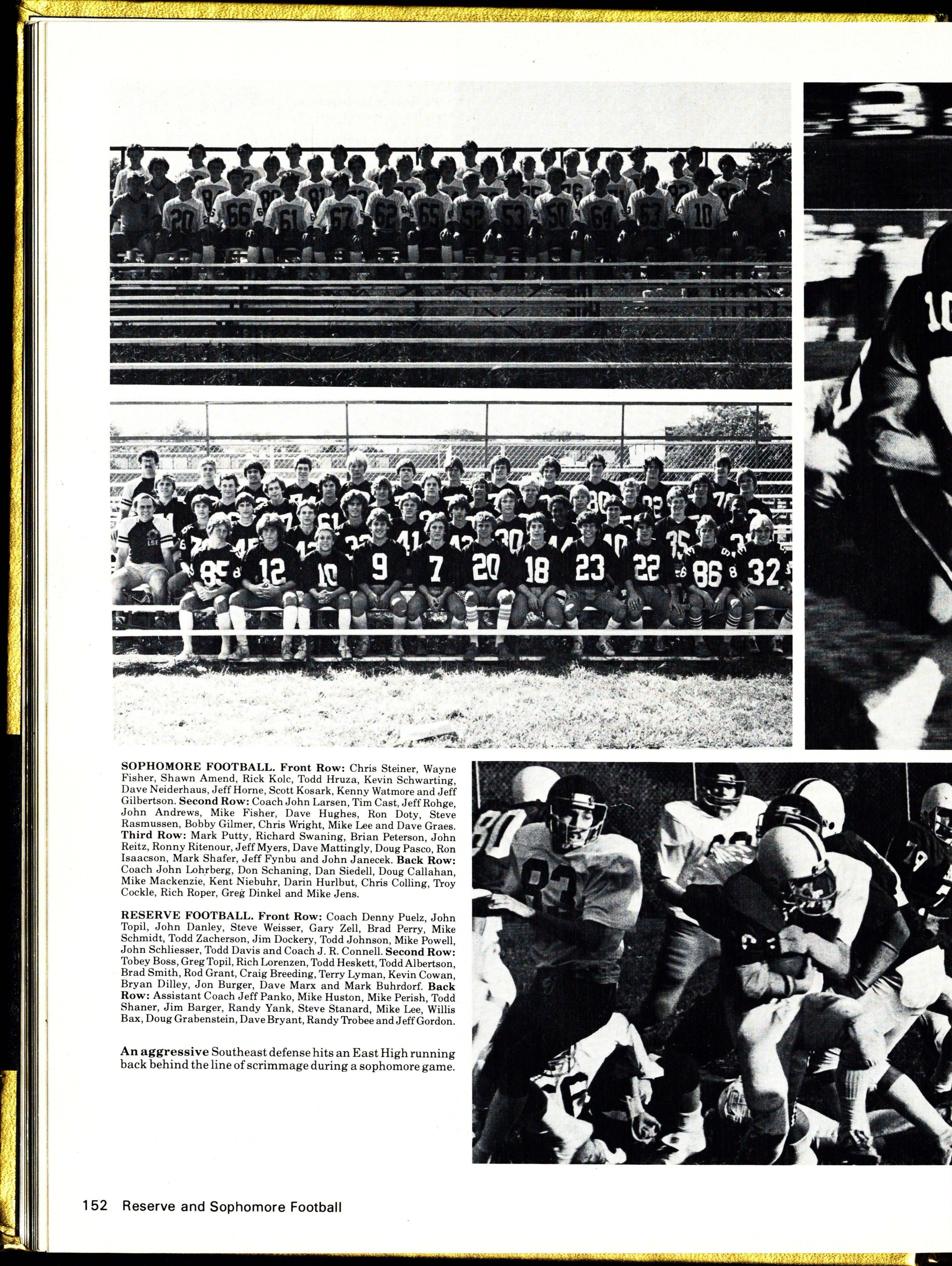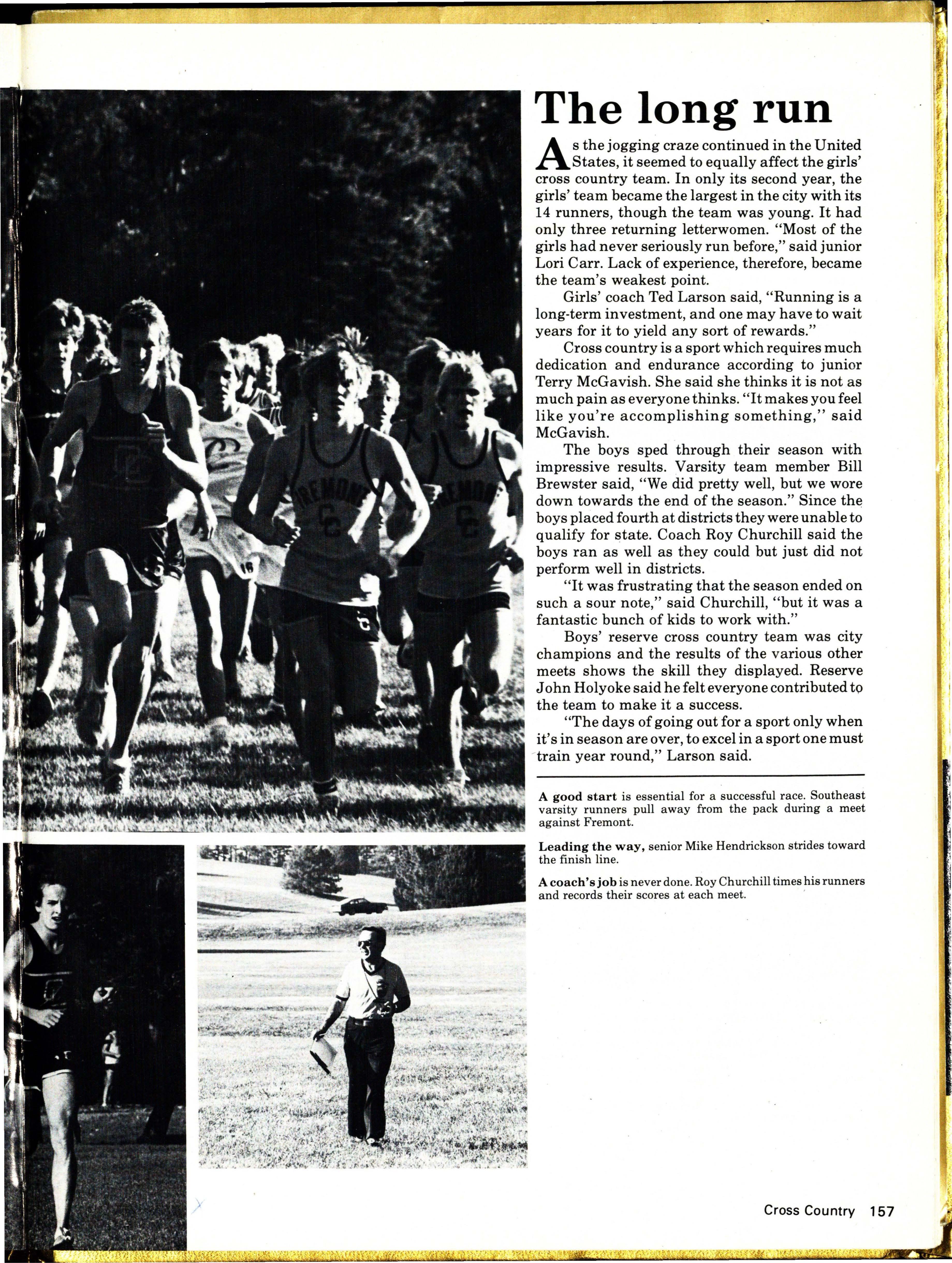 One of the strongest points of the team was the two-mile relay squad. They were likely contenders for one of the top places at the state tournament. This team consisted of seniors Doug Lee, Mike Hendrickson, juniors Rex Reason and Tom Brittenham. Aaron Loudenbach stood out in the shotput for the Southeast team. Other team members who were to do well in the district meet were Jon Kelley, John Hansen, Bill Brewster, and Dan Davis.