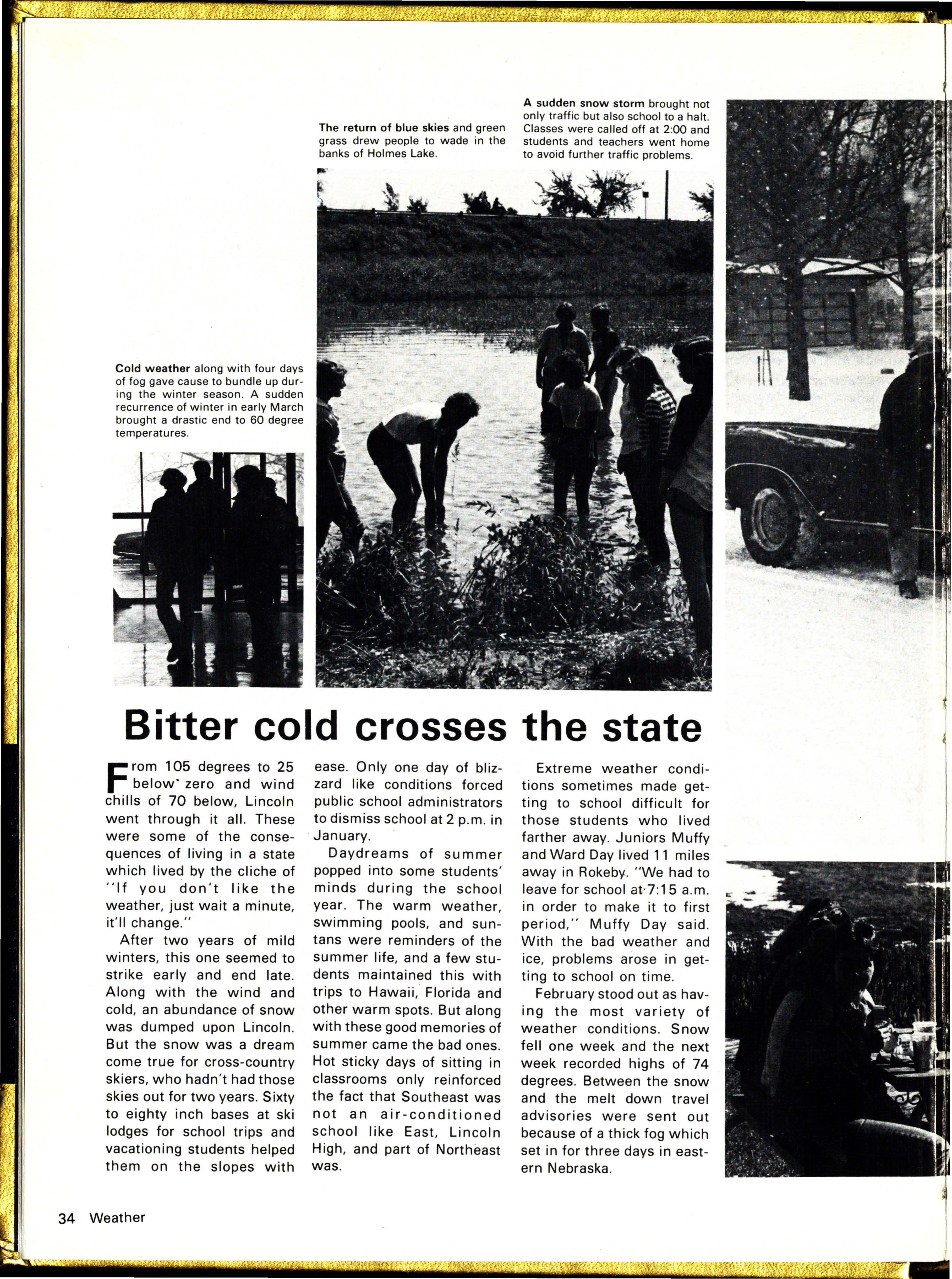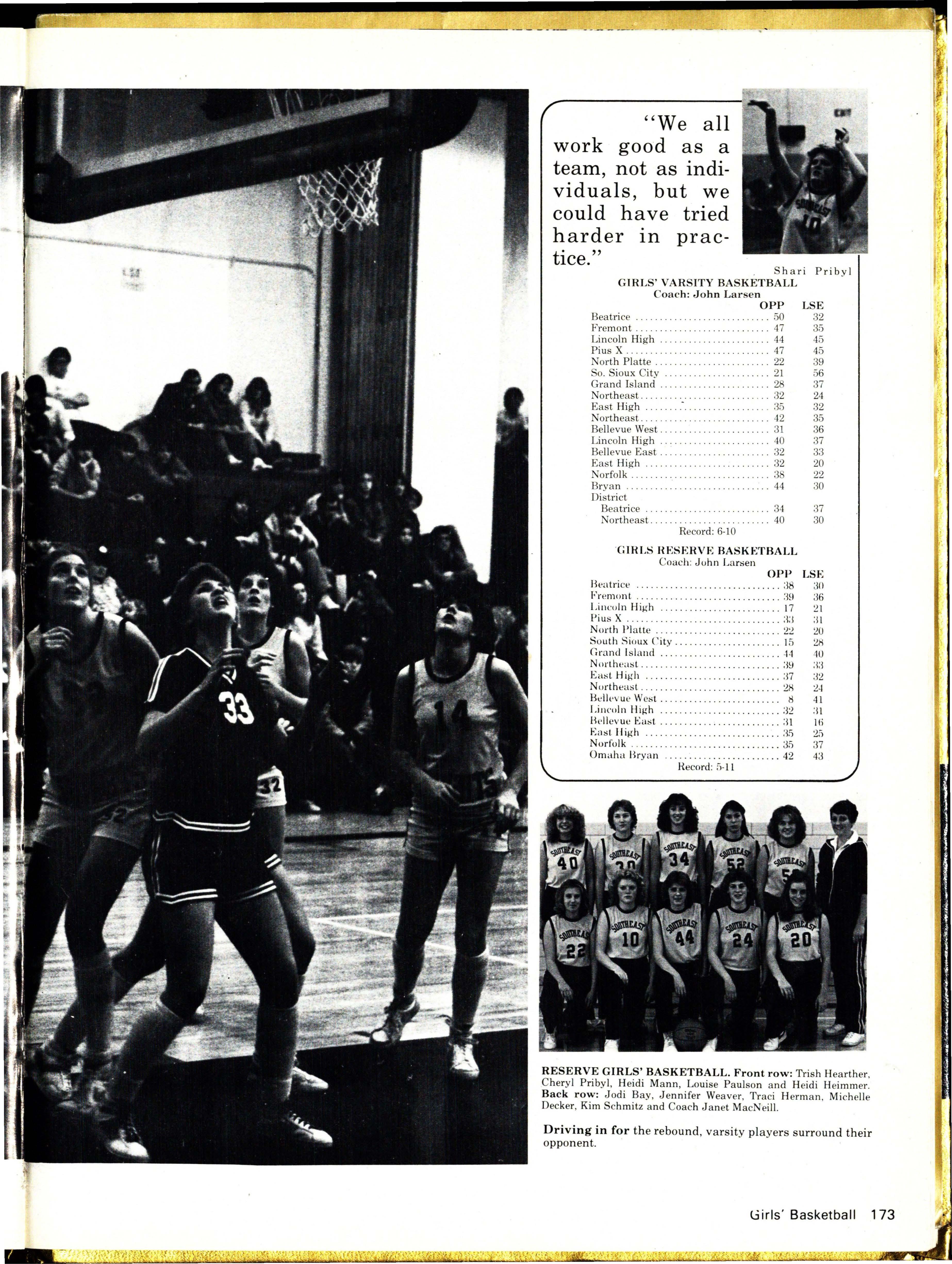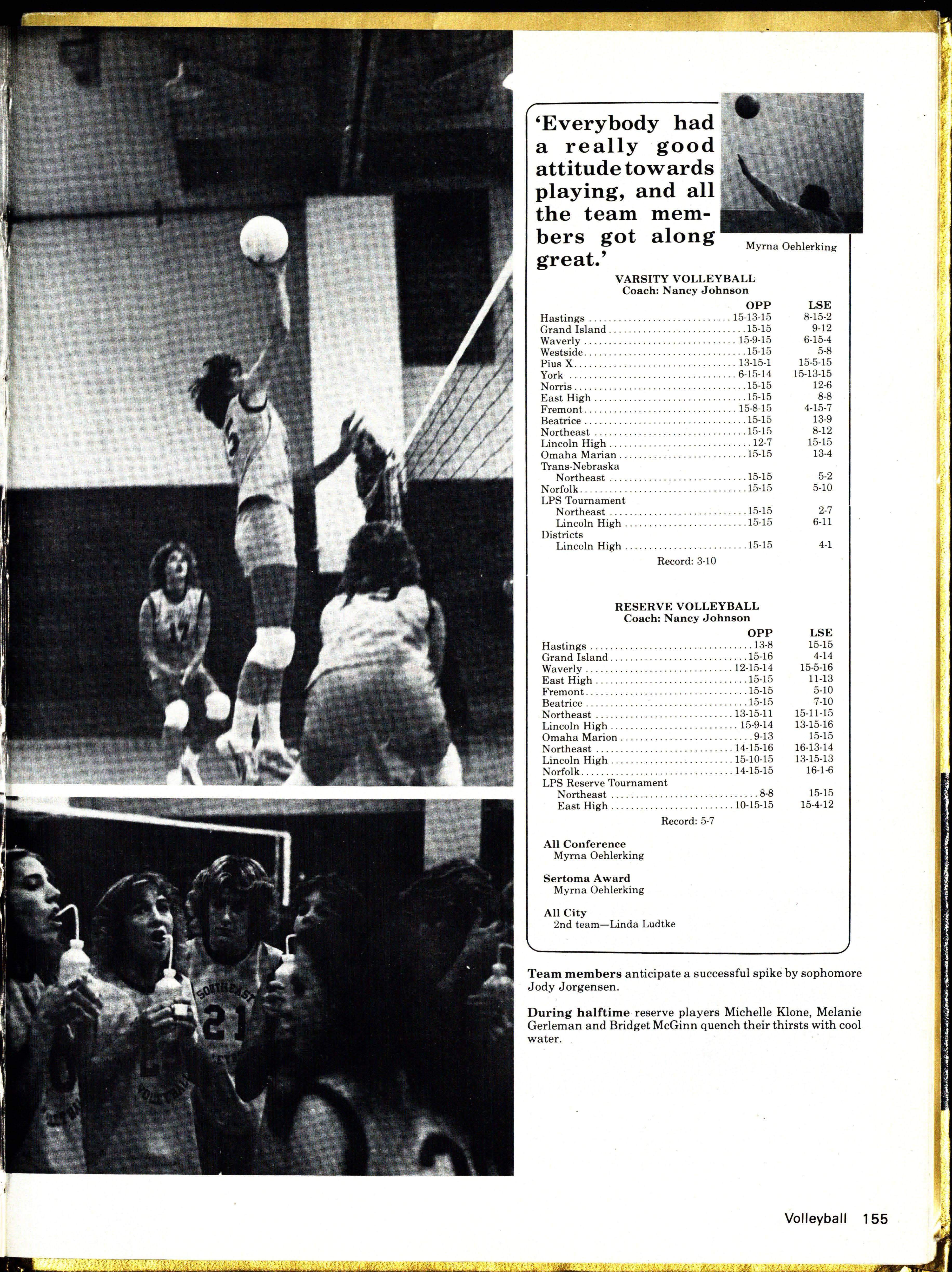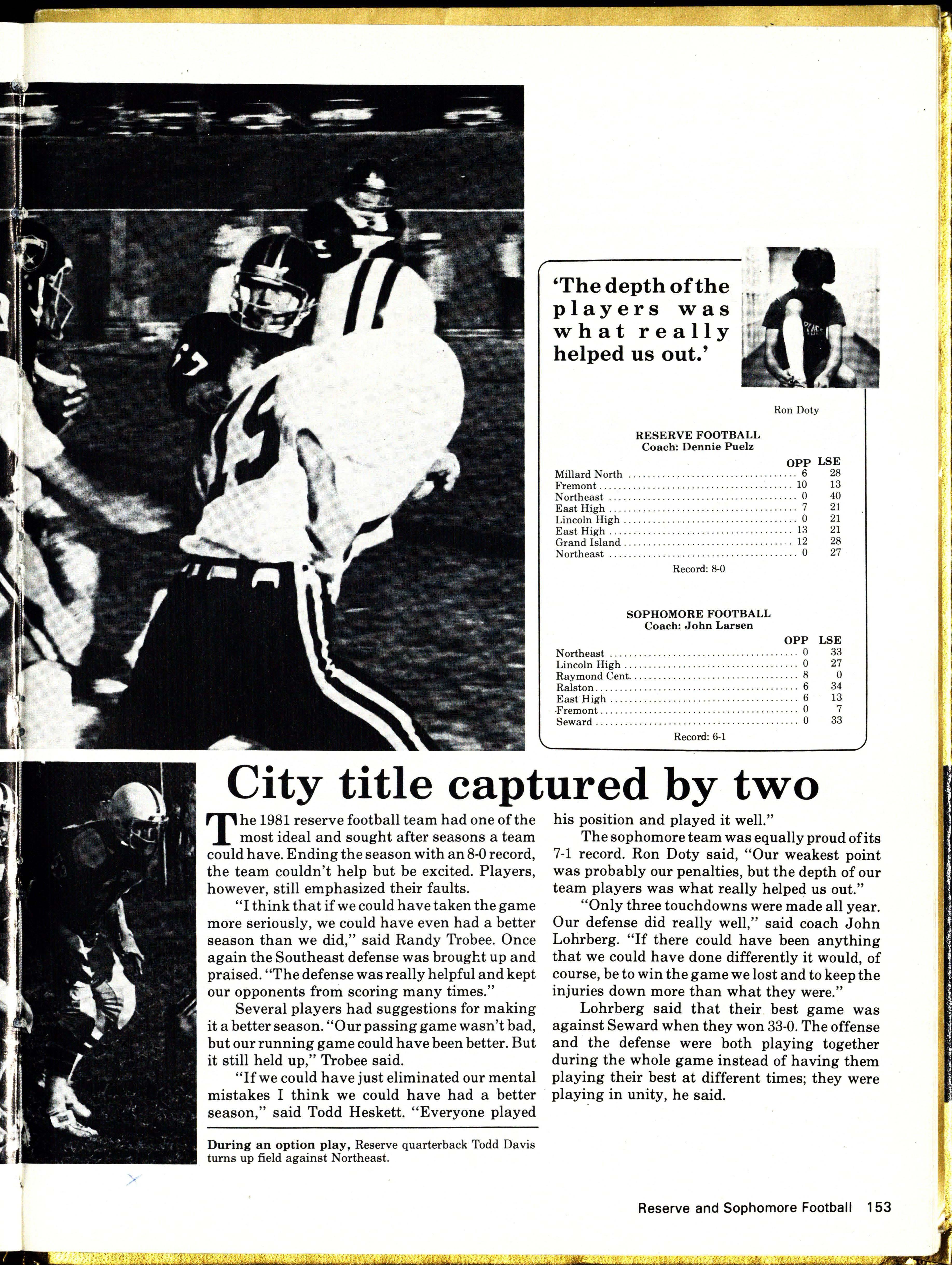 One of the strongest points of the team was the two-mile relay squad. They were likely contenders for one of the top places at the state tournament. This team consisted of seniors Doug Lee, Mike Hendrickson, juniors Rex Reason and Tom Brittenham. Aaron Loudenbach stood out in the shotput for the Southeast team. Other team members who were to do well in the district meet were Jon Kelley, John Hansen, Bill Brewster, and Dan Davis.