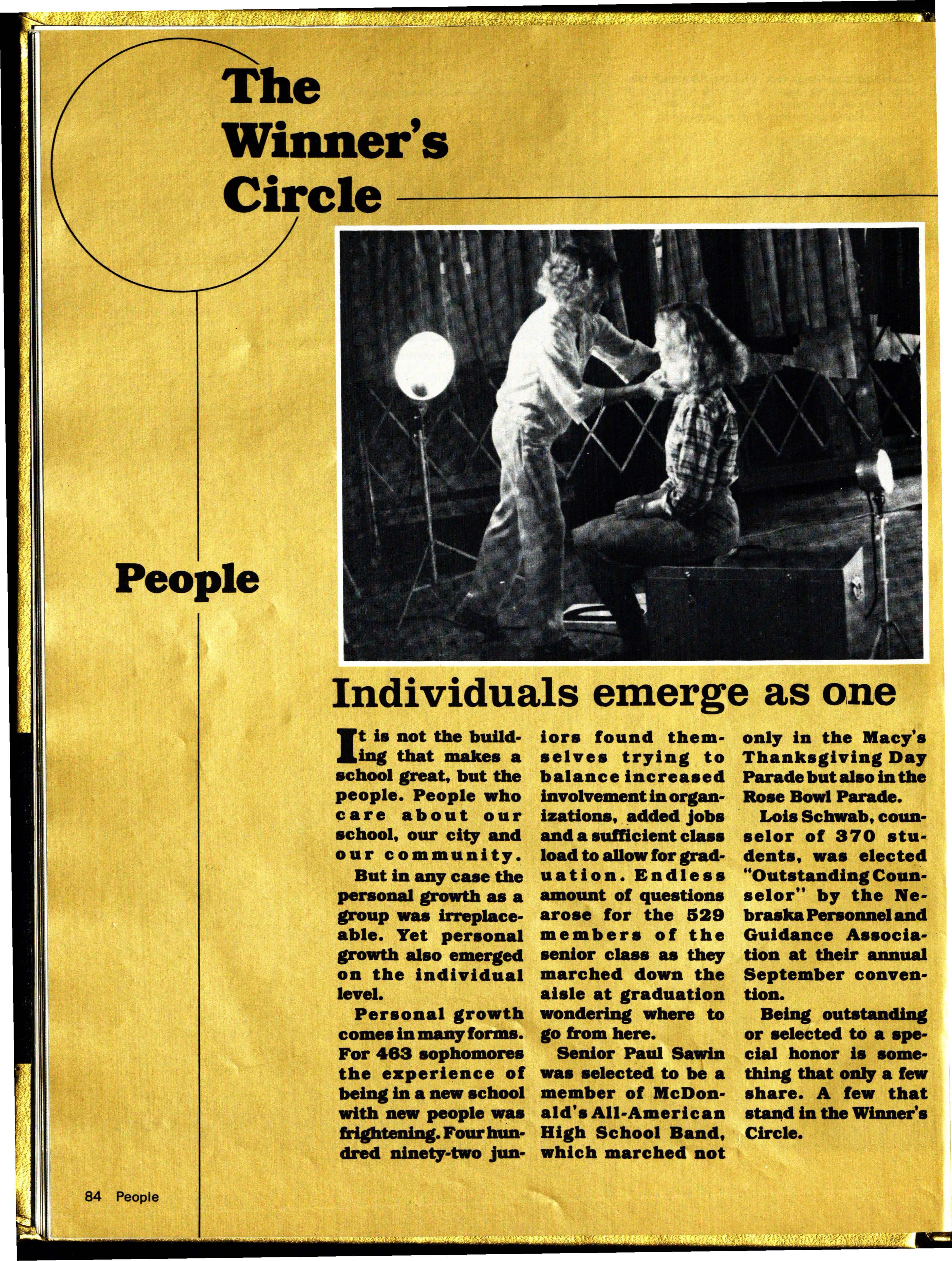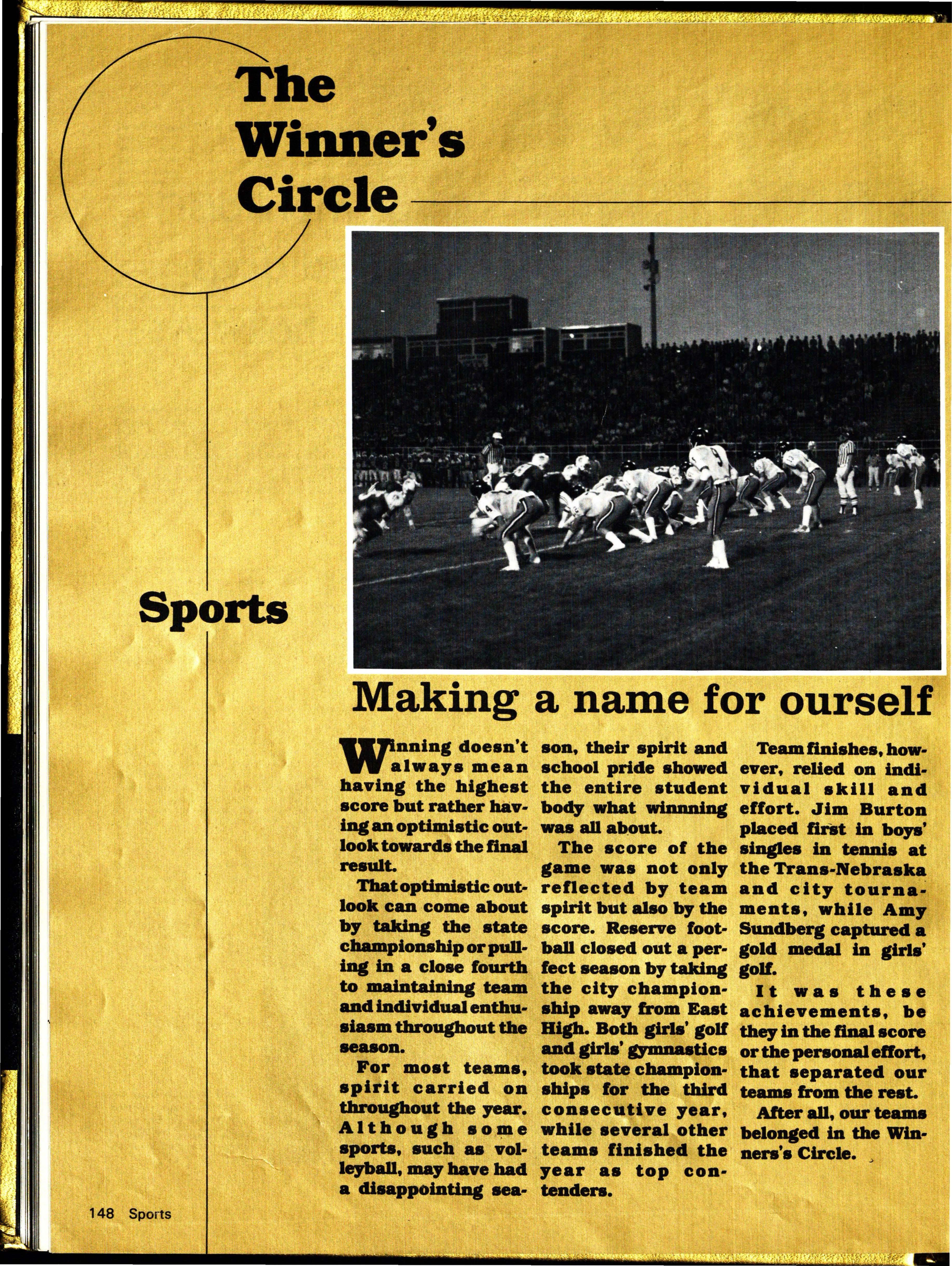 We're winners, standing in a class by ourselves, triumphing over obstacles that stand in our way to success. We've strived for the best, fought hard and finally worked our way into the "Winner's Circle.'' Our efforts shine through in every activity we partici-
