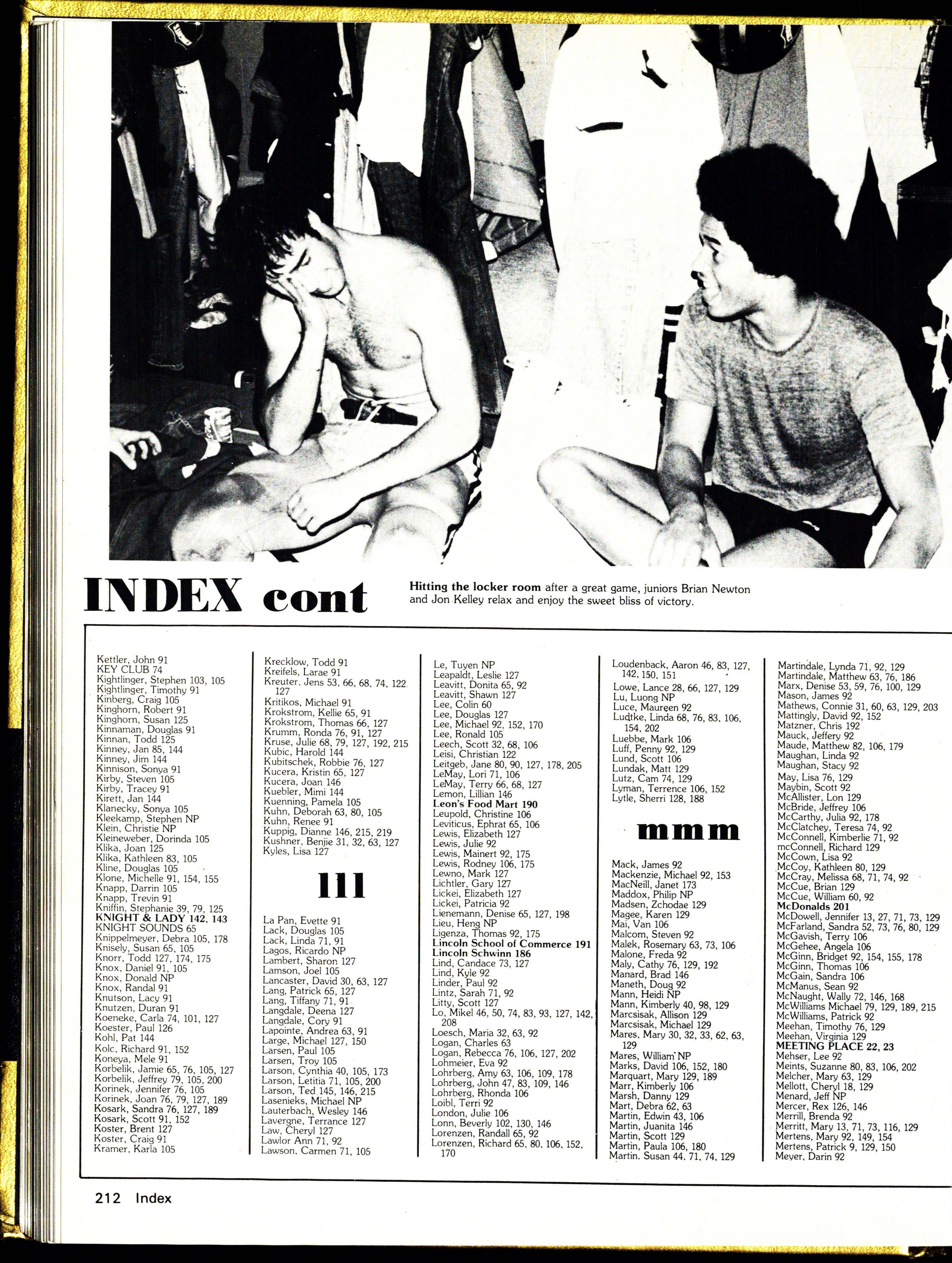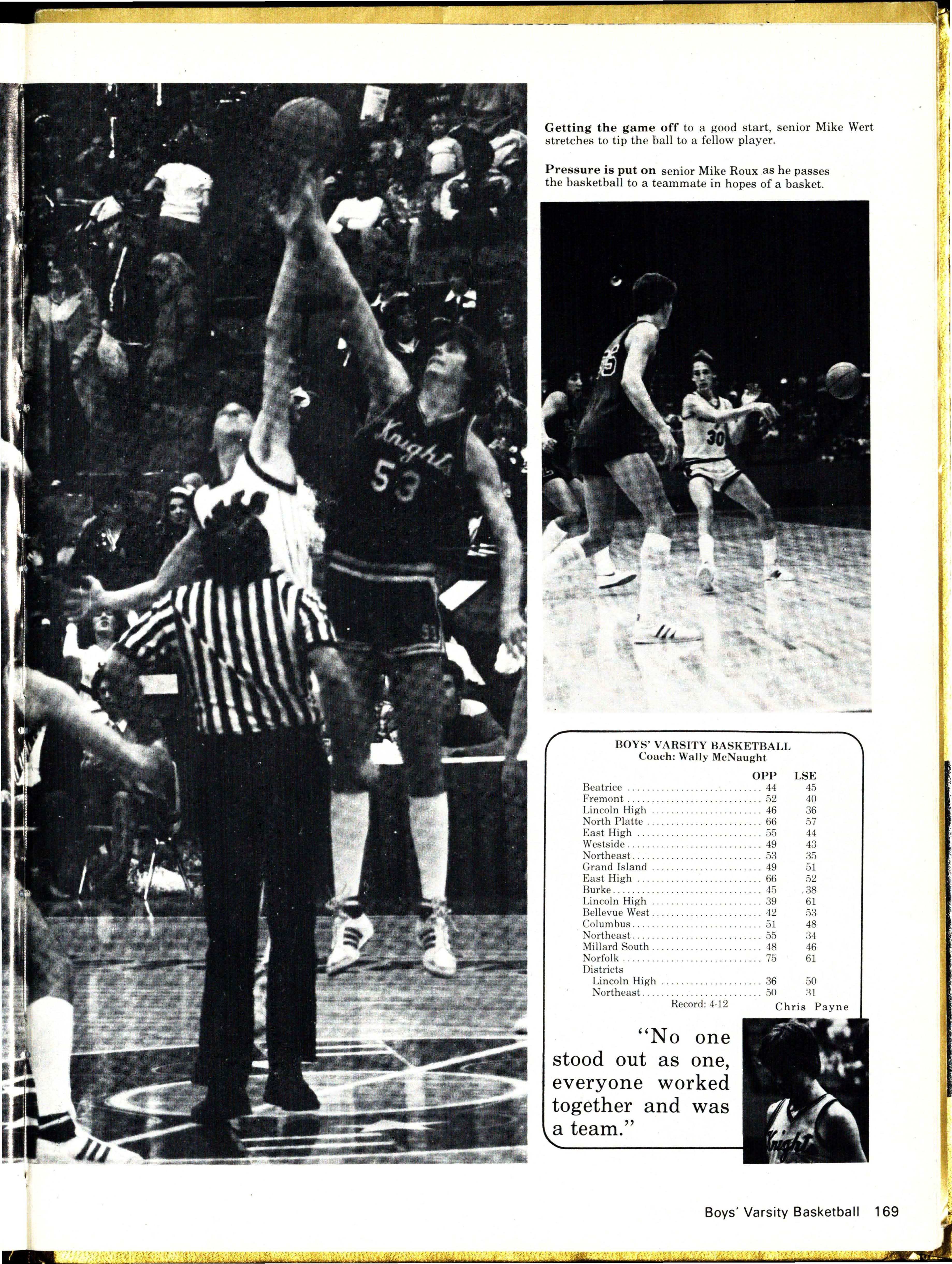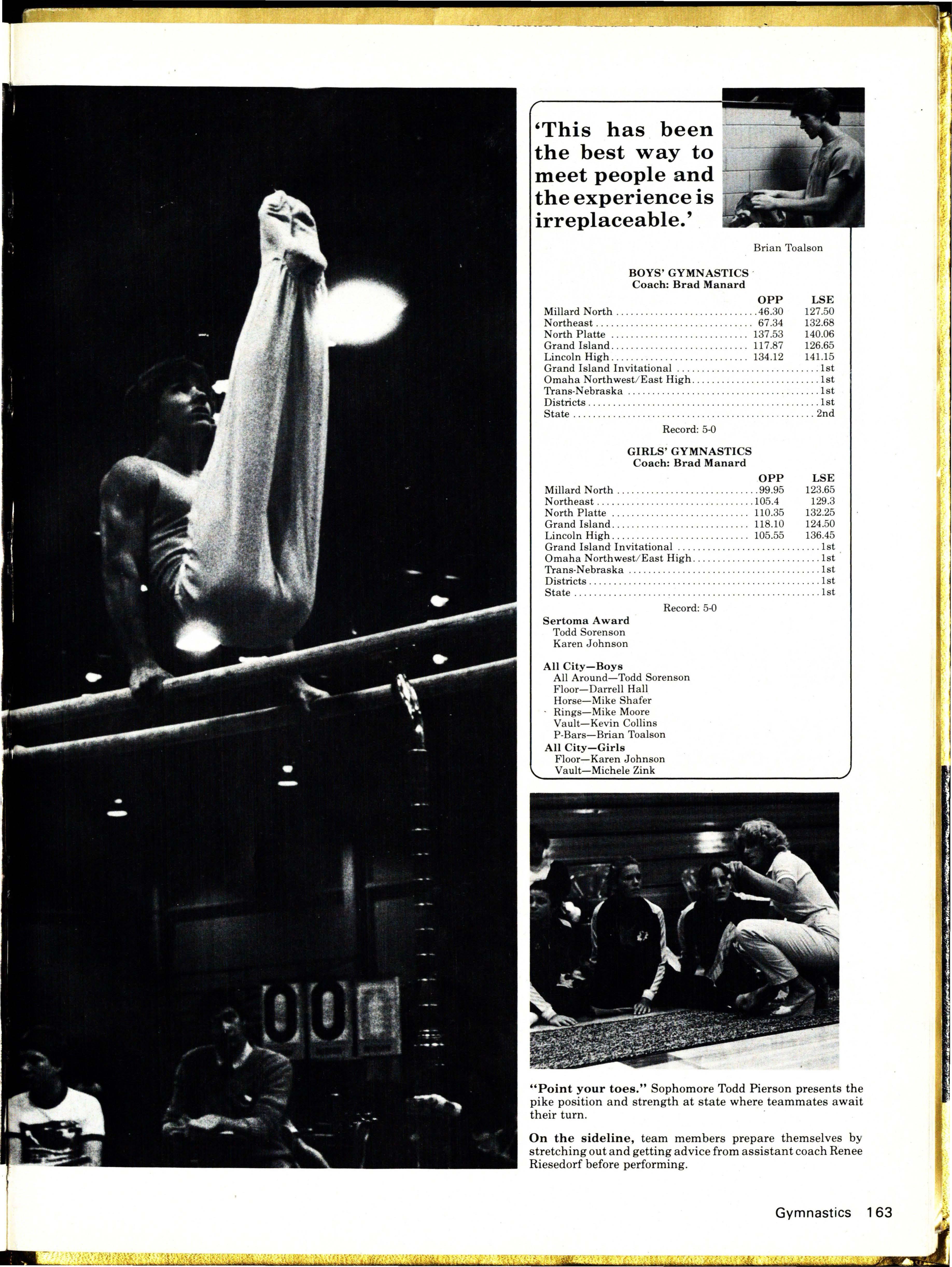 BOYS' TRACK. Front Row: Chris Yost, Kevin Collins , Troy Booth , Mike Hill , John Hansen, Mikel Lo , M i ke Hendrickson , Matt Martindale and John Br i ggs. Second Row: Doug Callahan , Ron Bahar , Scott Woodhoff , Rex Reason , Christian Leisi , Roger Slama, Lorenzo Domizolt and Dan Davis. Third Row: Scott Kozark , Mike Fischer, Todd Pospisil , Tim Javorsky, Steve Gordon , Steve Rassmussen , Jamie Cox and Todd Zehr Fourth Row: Billy McCue , Bruce Dvorak , Monte Taylor , Mitch Taylor , Todd Douty , Monte Schmidt and Dave Detelson Fifth Row: Bill Ternes, Lee Douglas, Dean Cope , Virgil Horne, Jon Kelly , Willis Bax , Randy Trobee and Rp.ndy Yank Sixth Row: Mark Borchordt , Terry Lyman , Kevin Cowan, Mike Powell , Chris Collins , Bob Priest and Aaron Loudenbach. Back Row: Coach Chuck Mizerski , Ass 't Dale Neilson , Coach Ted Larsen, Bill Brewster , Mark Nimeth , Doug Lee , Tom Brittenham , Coach Roy Churchill and Karl Vogel.