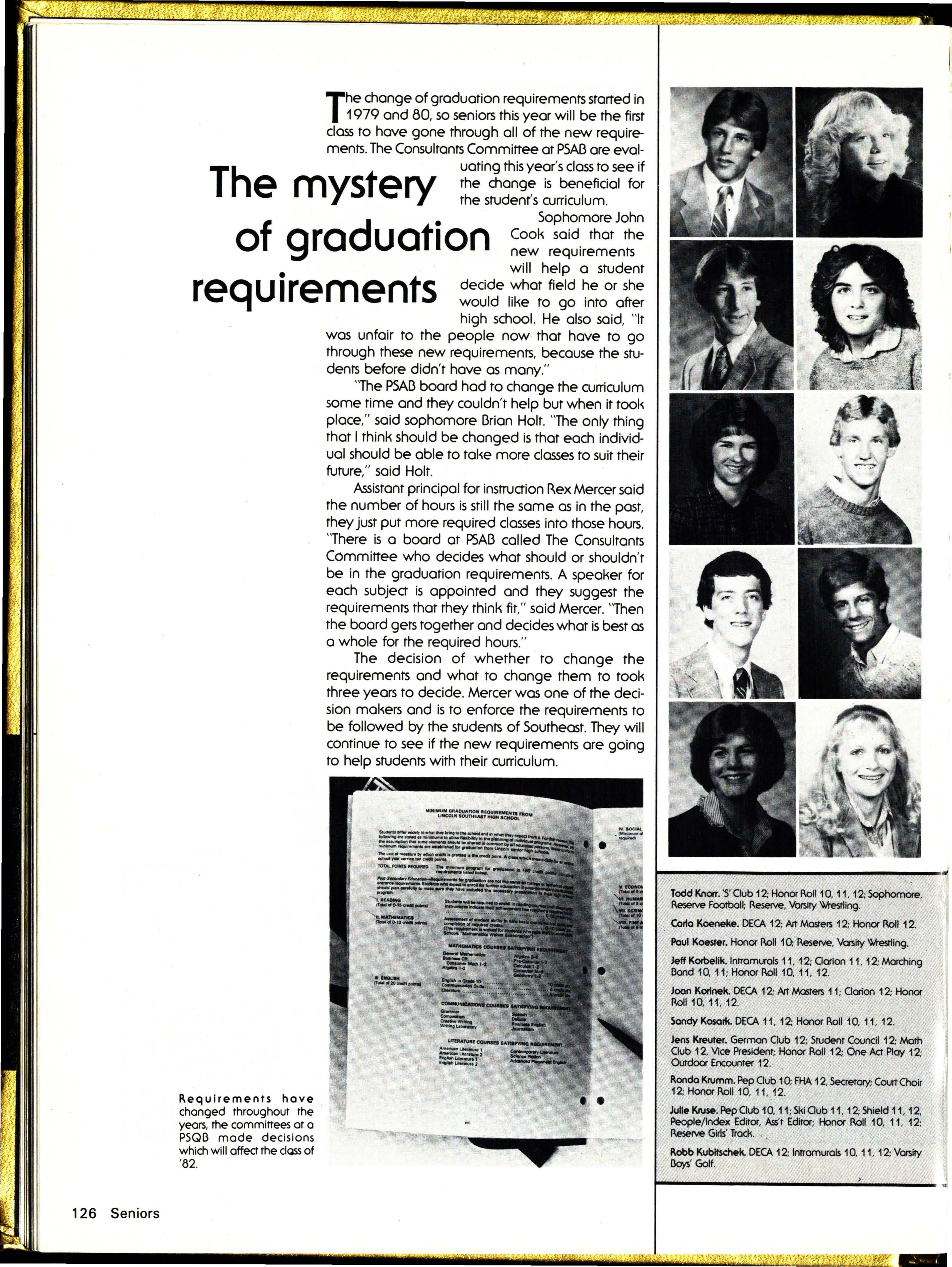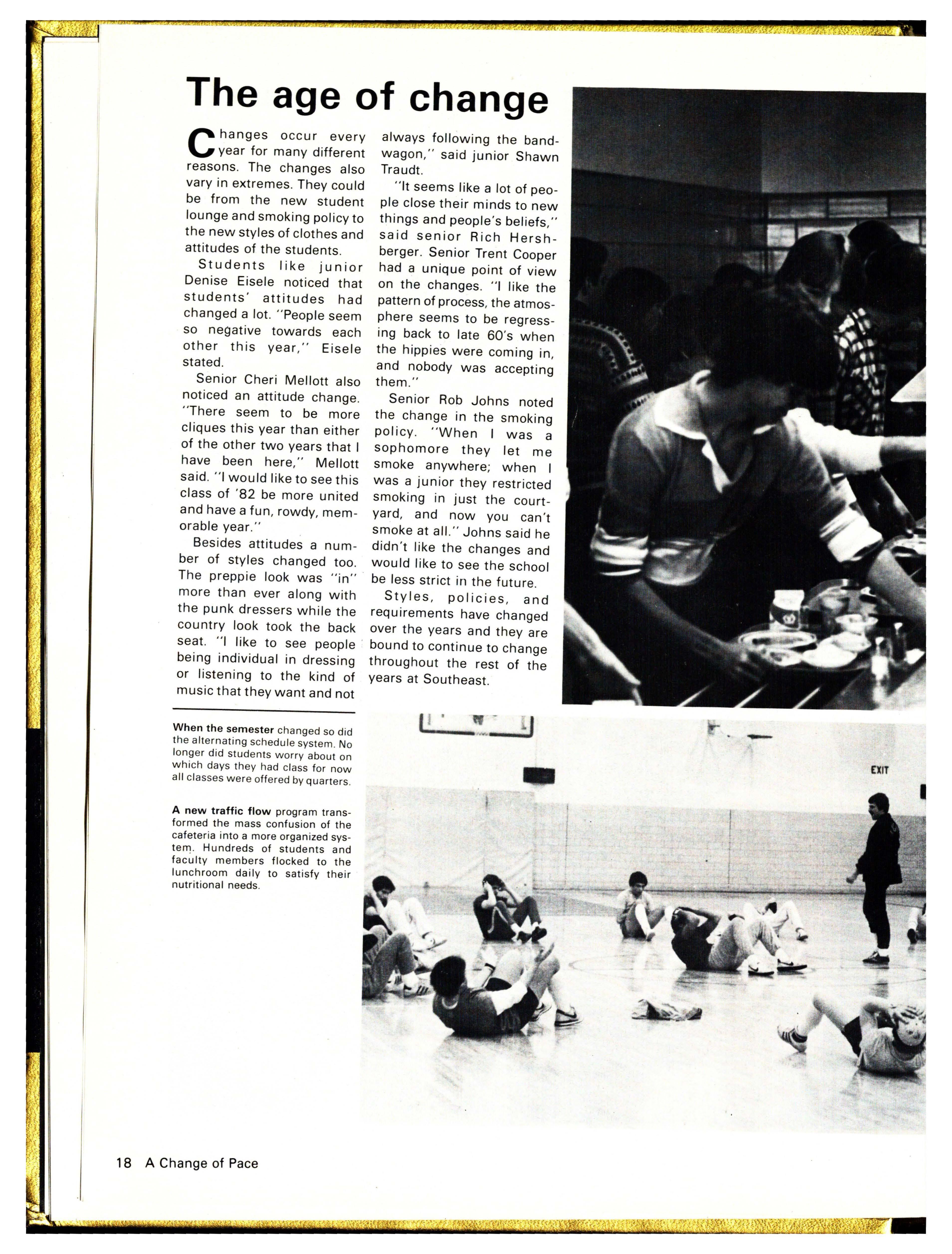 Grasping your diploma you realized that you seemed to fit into the role of a typical Southeast student. There are new horizons to expand you. Some may be college or marriage, the armed services, or the ever popular job market. There is a lifetime full of decisions waiting for you, the graduating class of 1982.