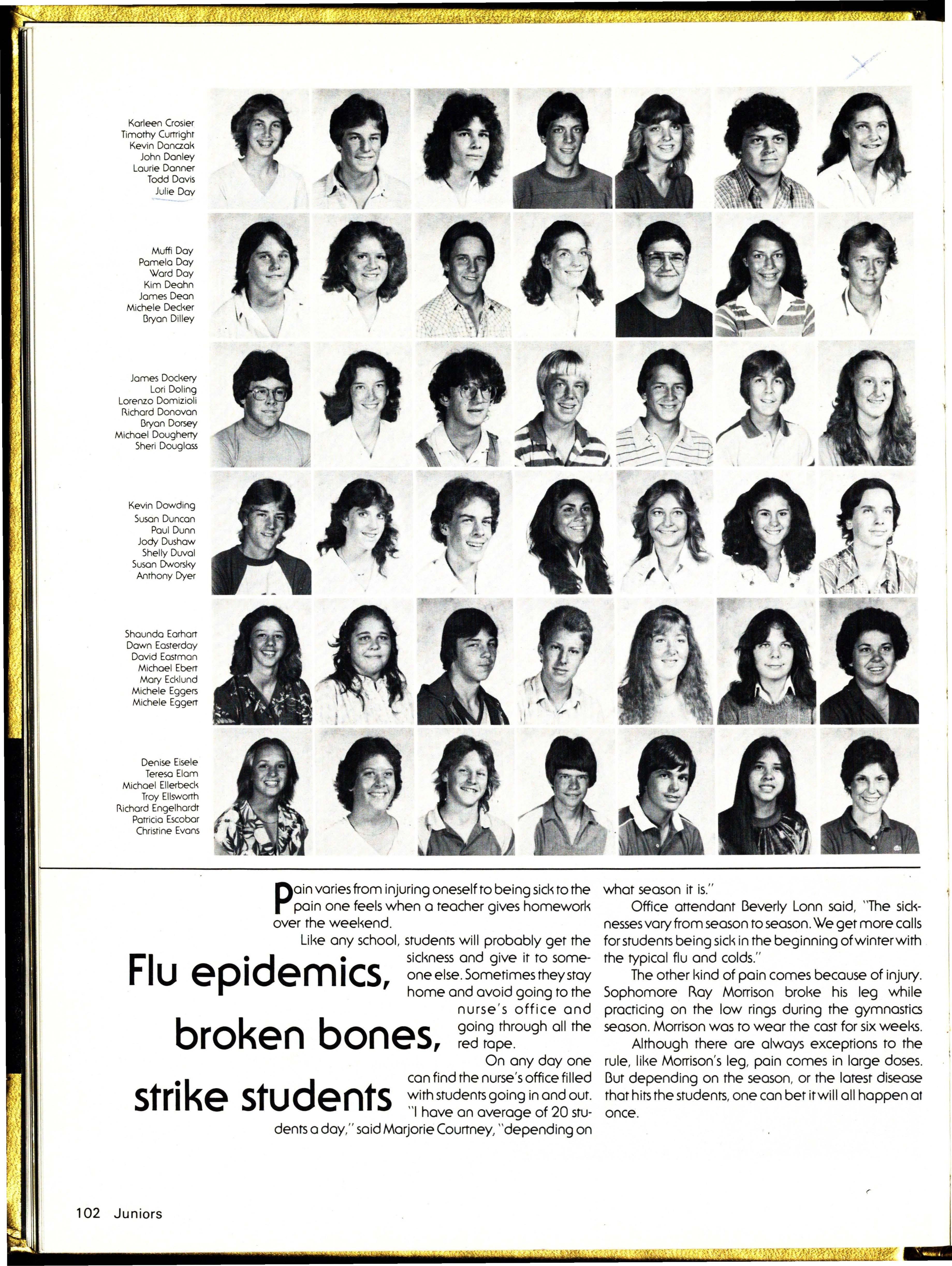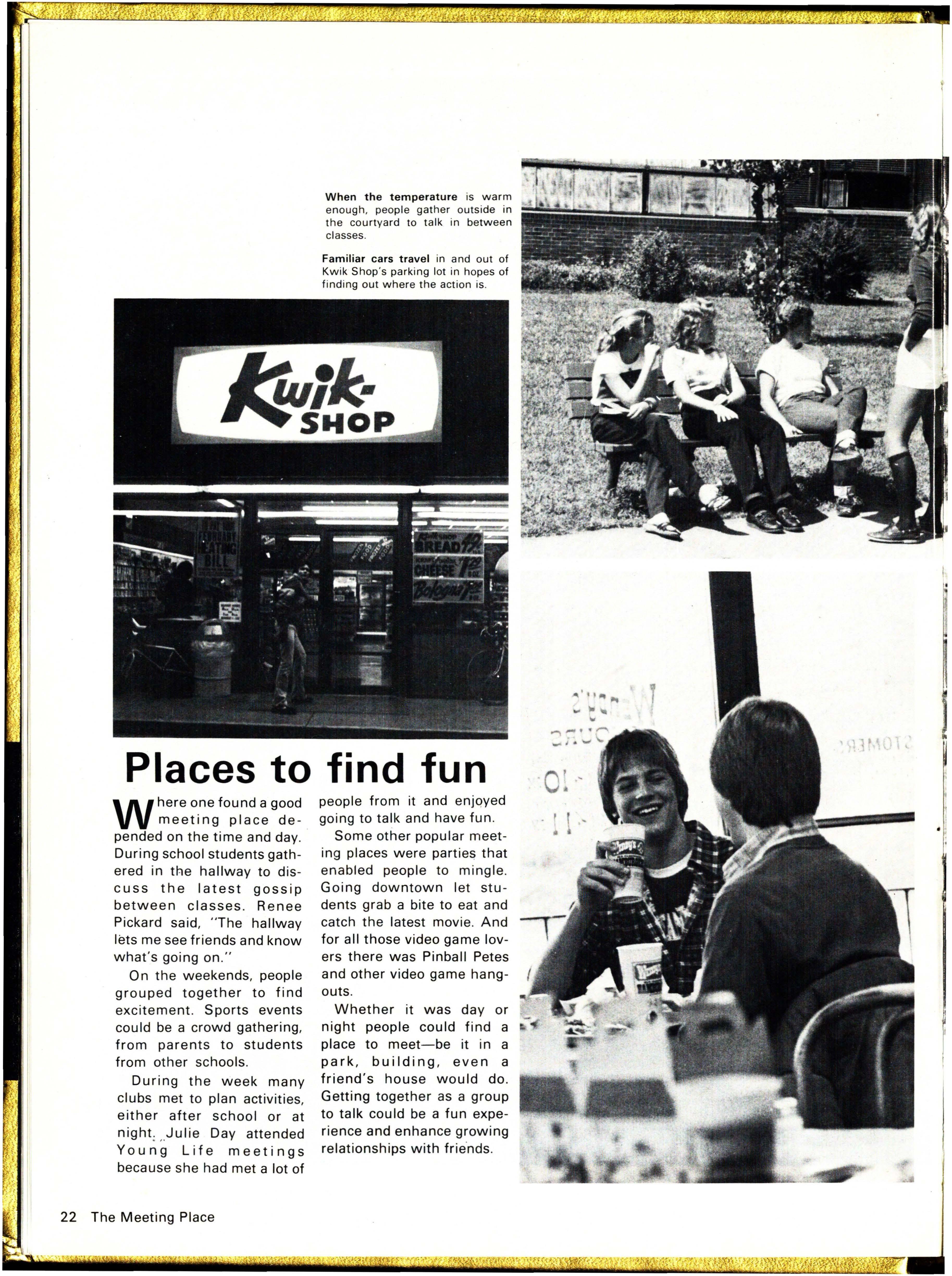 Junior high brought out all of your hidden insecurities. It was the first time you had to show your body to 35 other sweaty people in the locker room. Yo-u also had your first opportunity to discover the true meaning of homework. Trying new things included anything from smoking cigarettes and marijuana to drinking and dating · and kissing. Your parents became chauffers and you discovered the true meaning of walking. The famous hang out was McDonalds and the local rec centers.