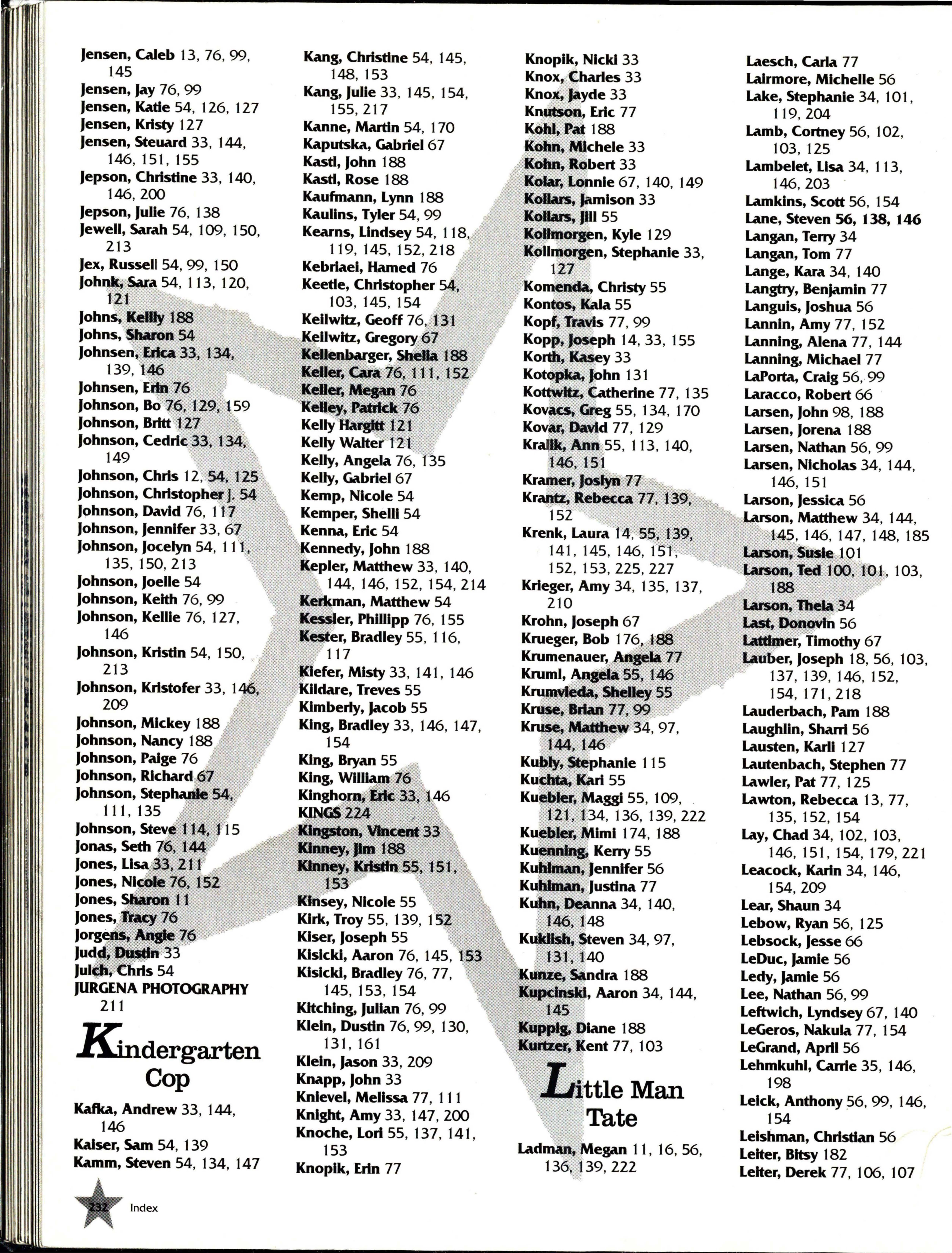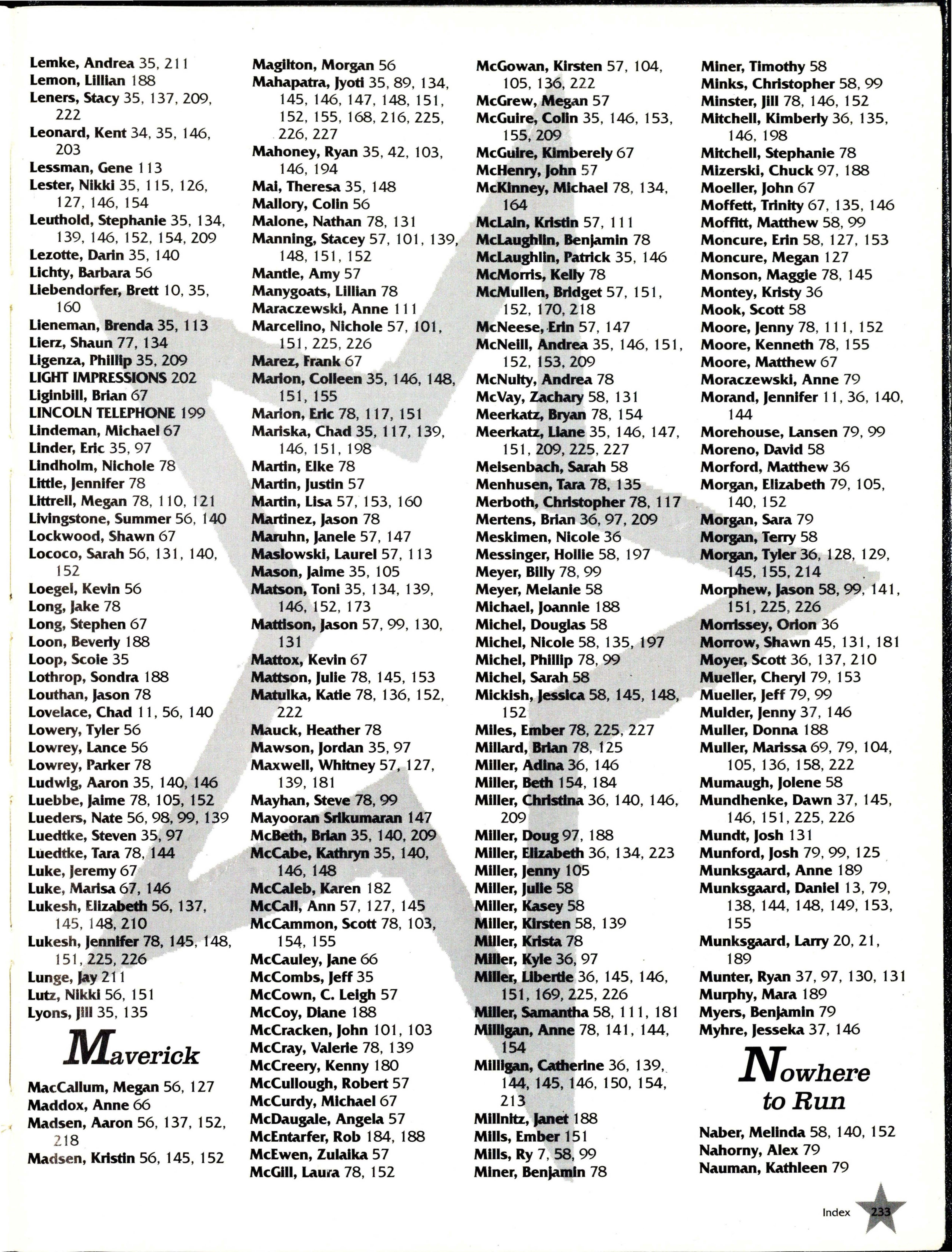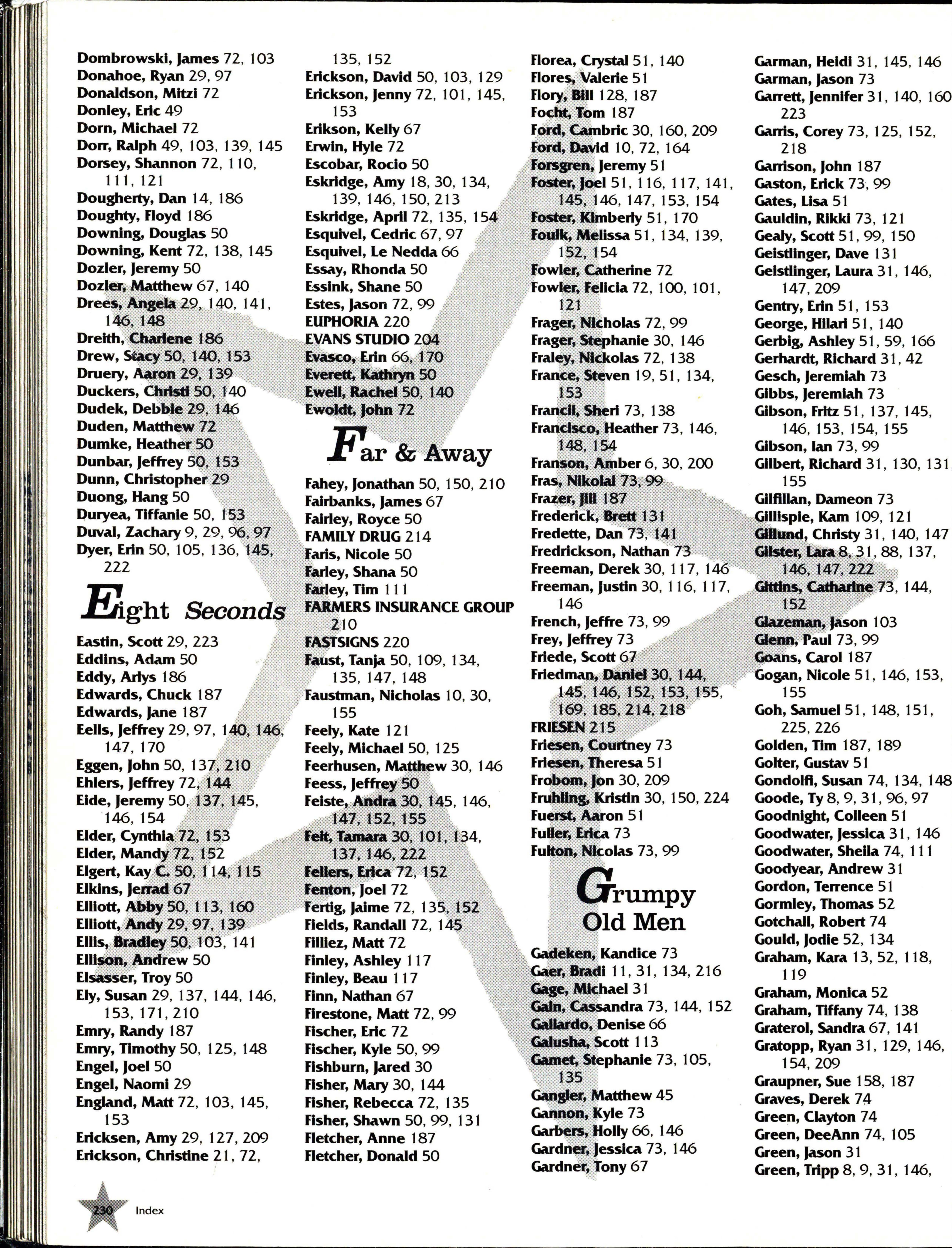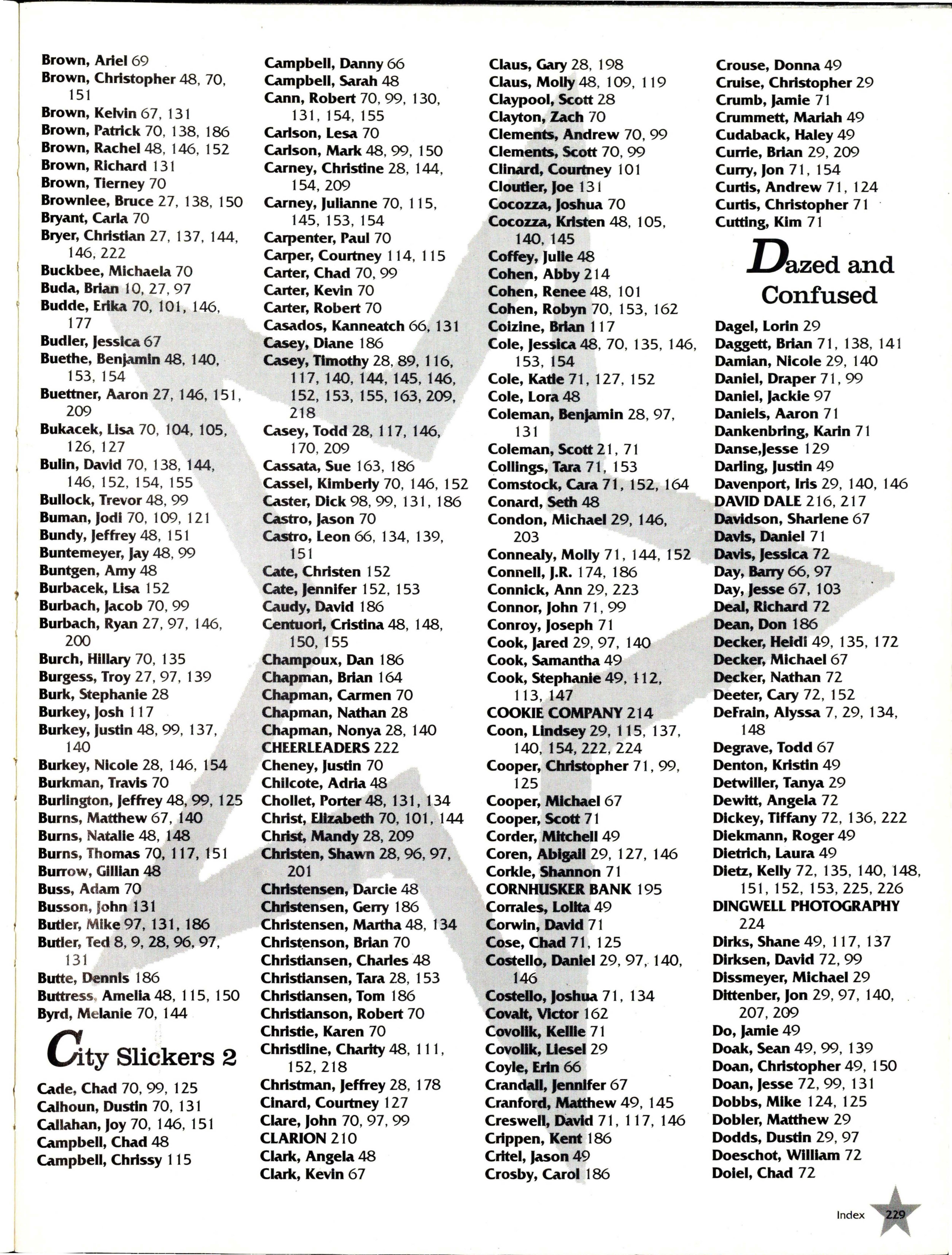 ALTERNATE IMAGE 213 Bare, Kelly 26 , 101 , 144, 145, Beverage, Betsy 8 , 27 , 137, Branclle ; Jeffrey 7 , 47 , 153