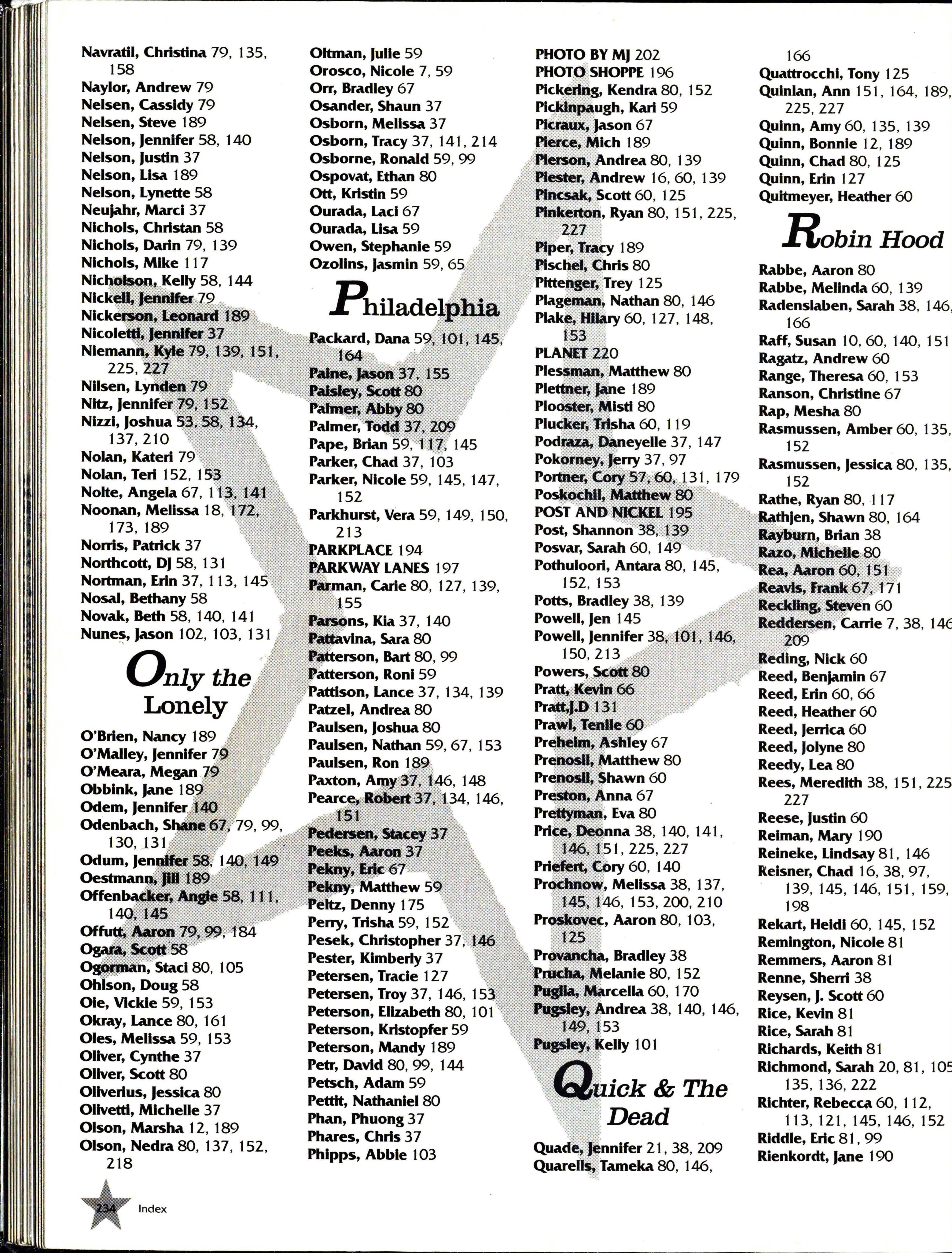 Atfredson, Amy 46 , 127 , 184 • Baker, JIii 68 , 152