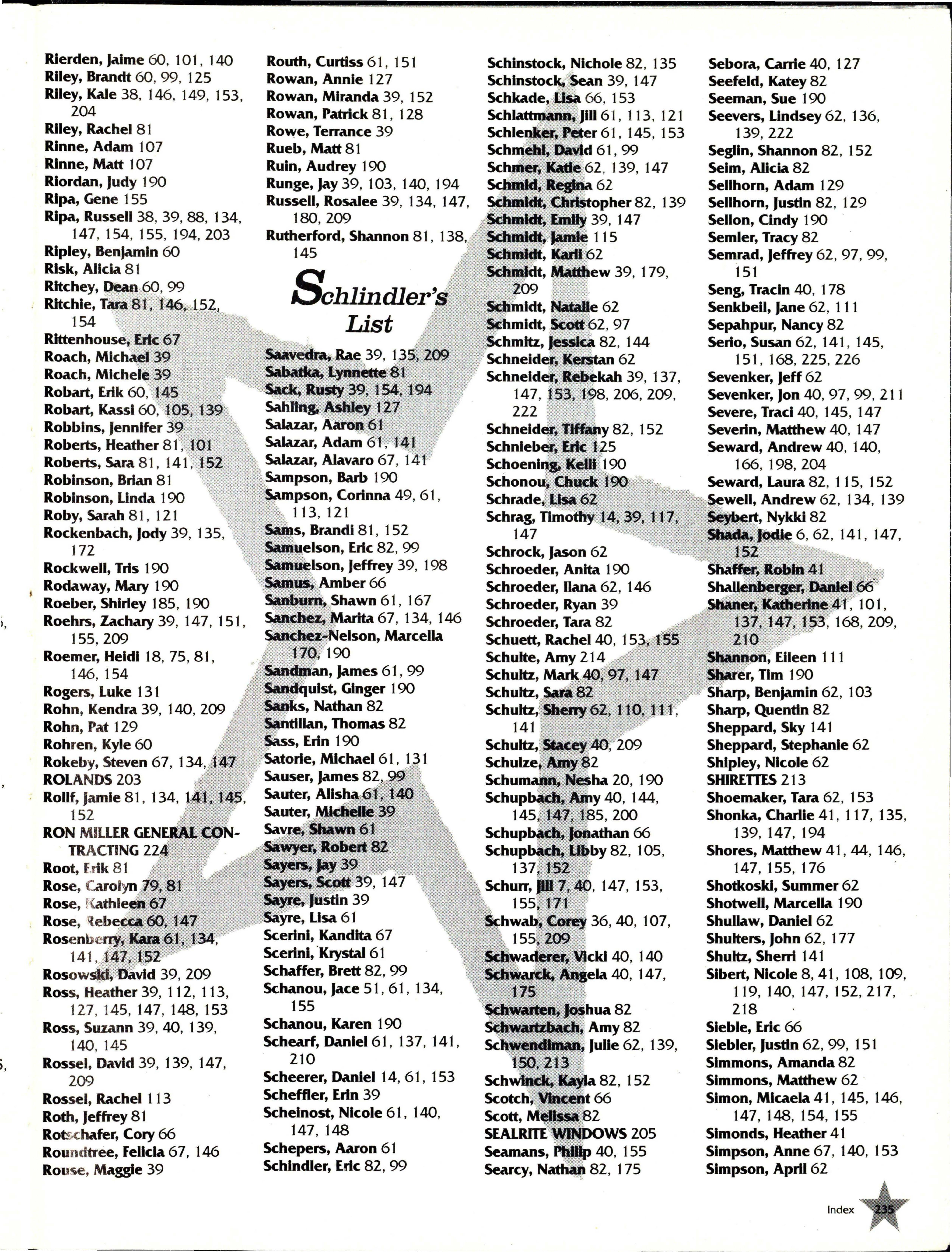 Blessing, Terry 67 218 AndersOII, Micki 26 , 137 , Barth, Sarah 66 , 140