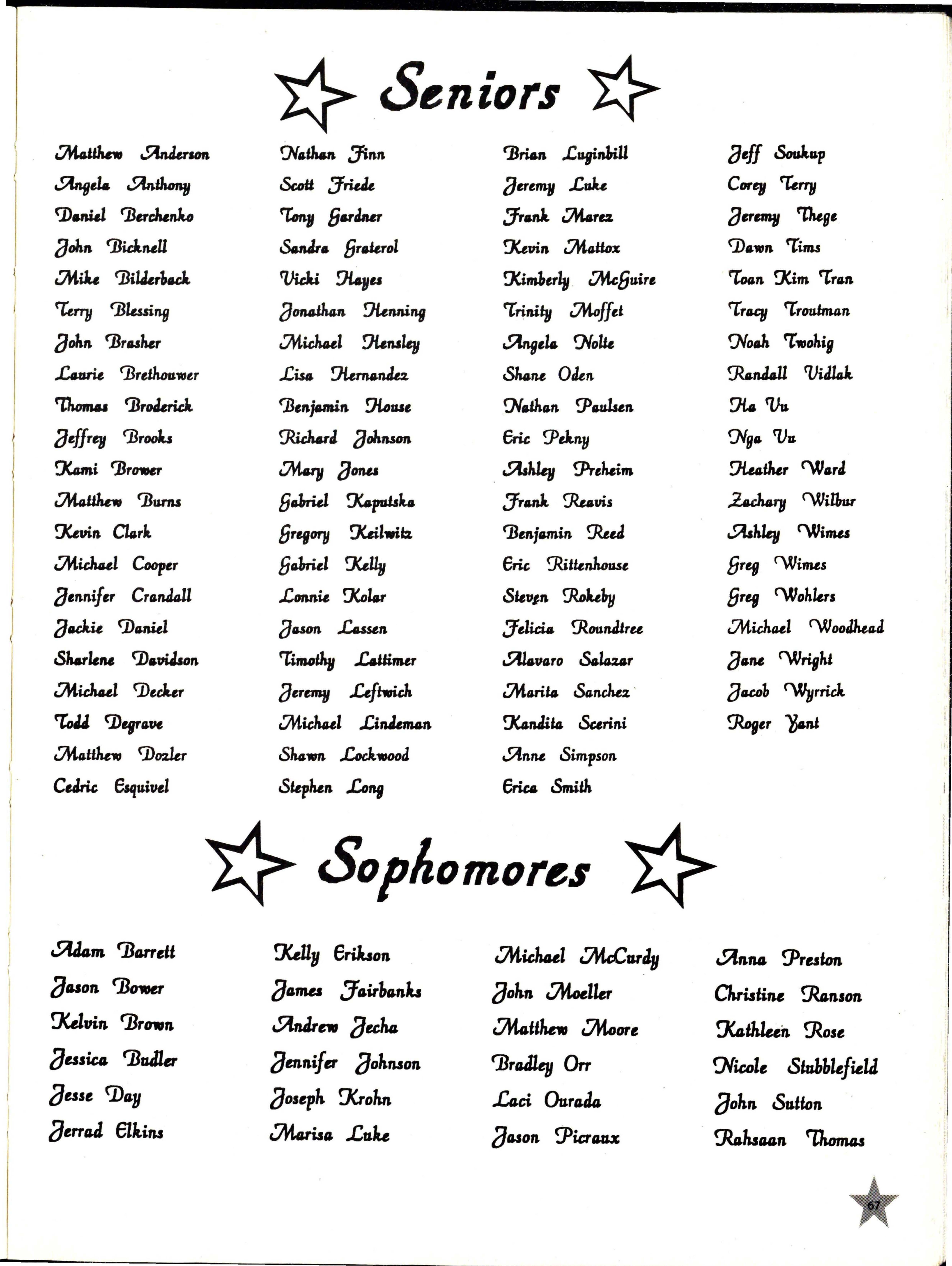 Brethouwer, Michelle 69 Anderson, Amanda R. 68 , B:arrett,Aclam67