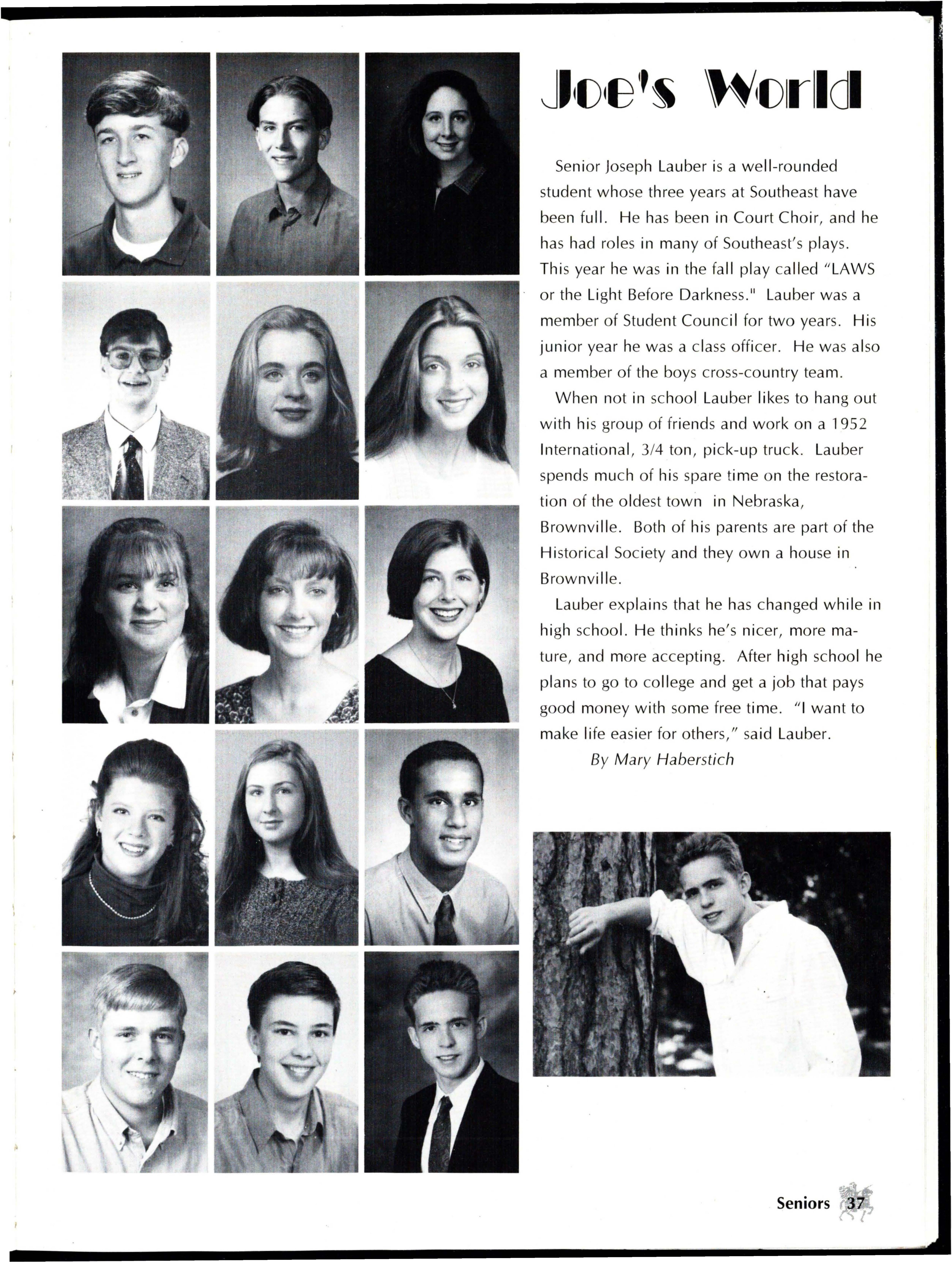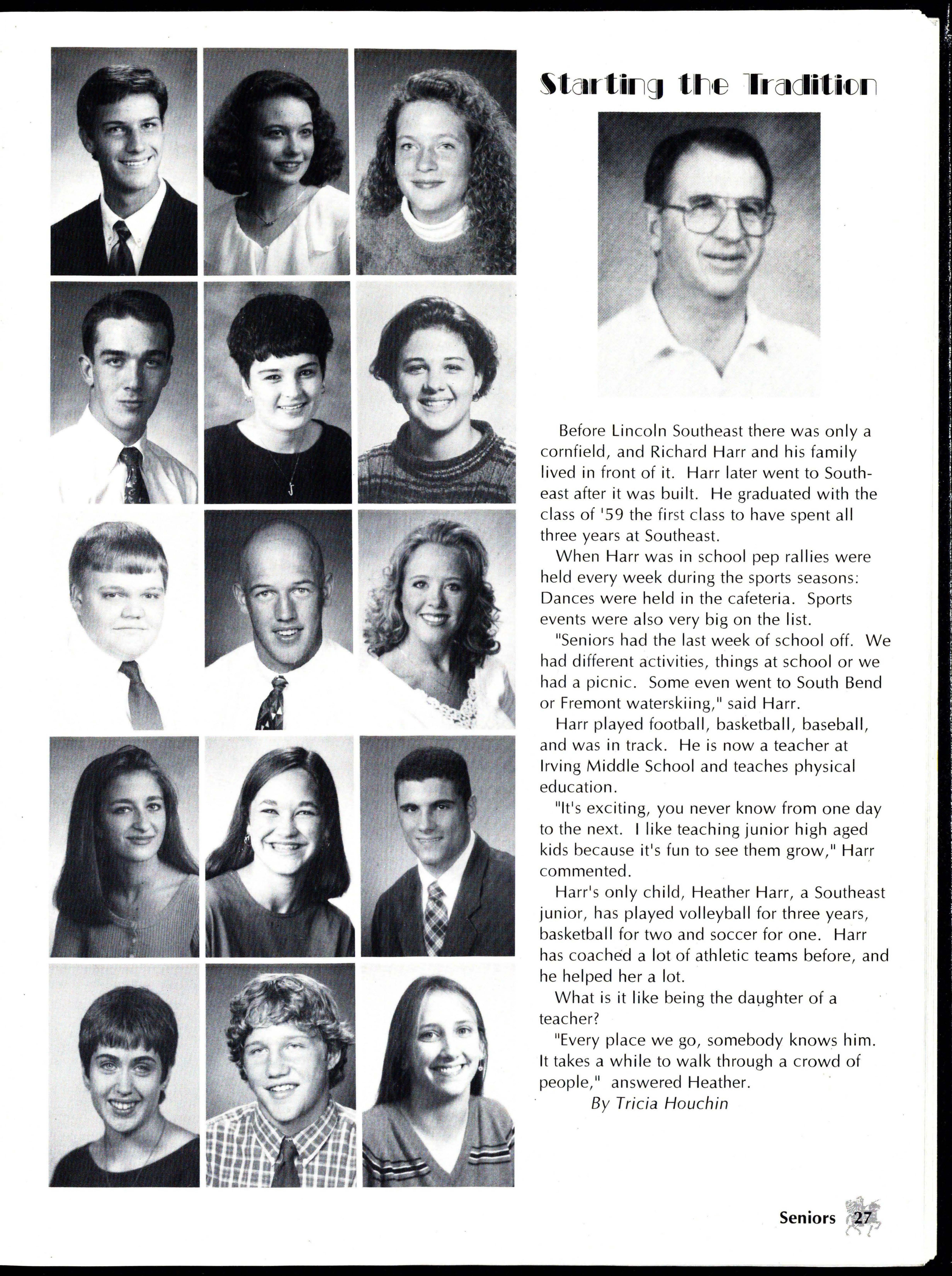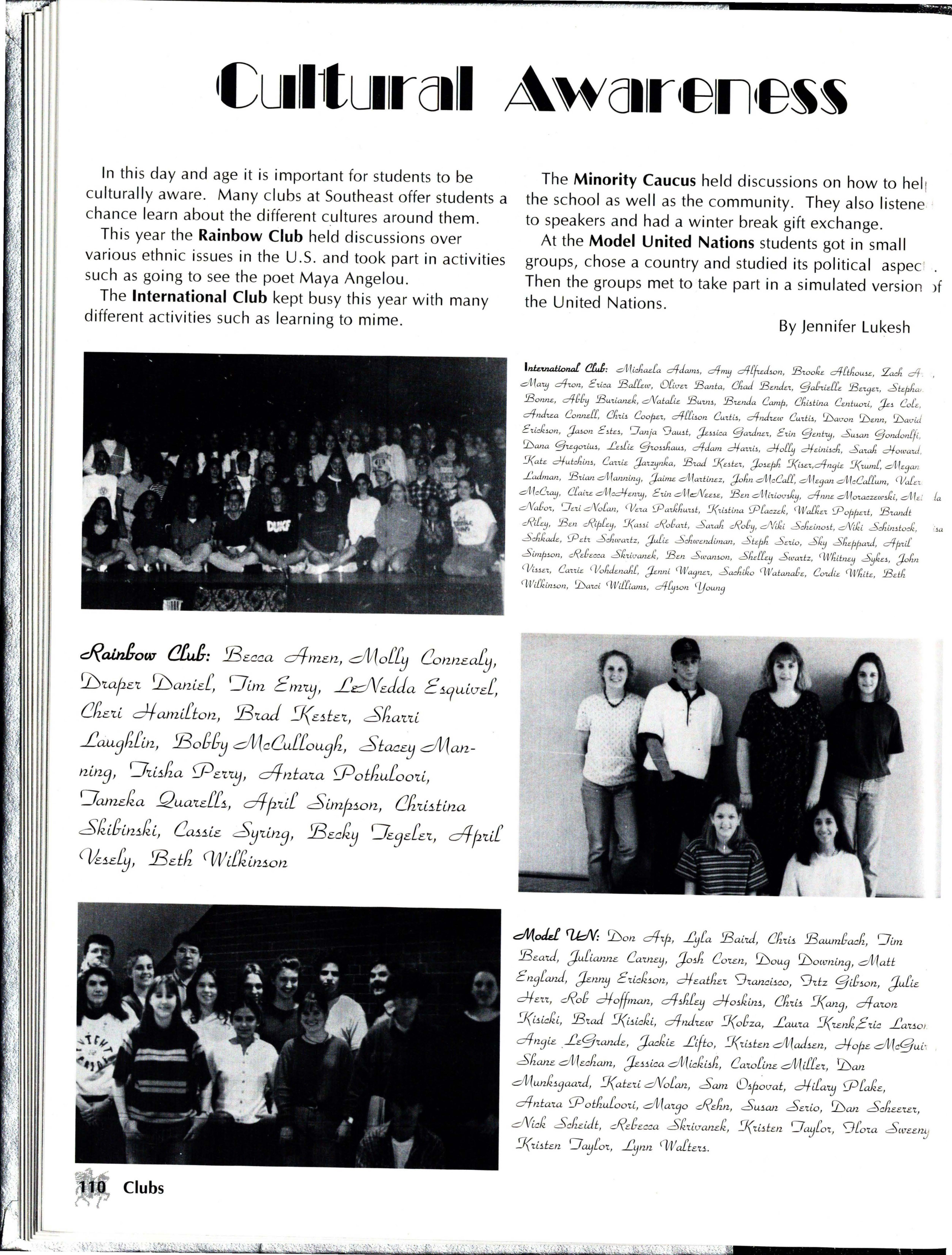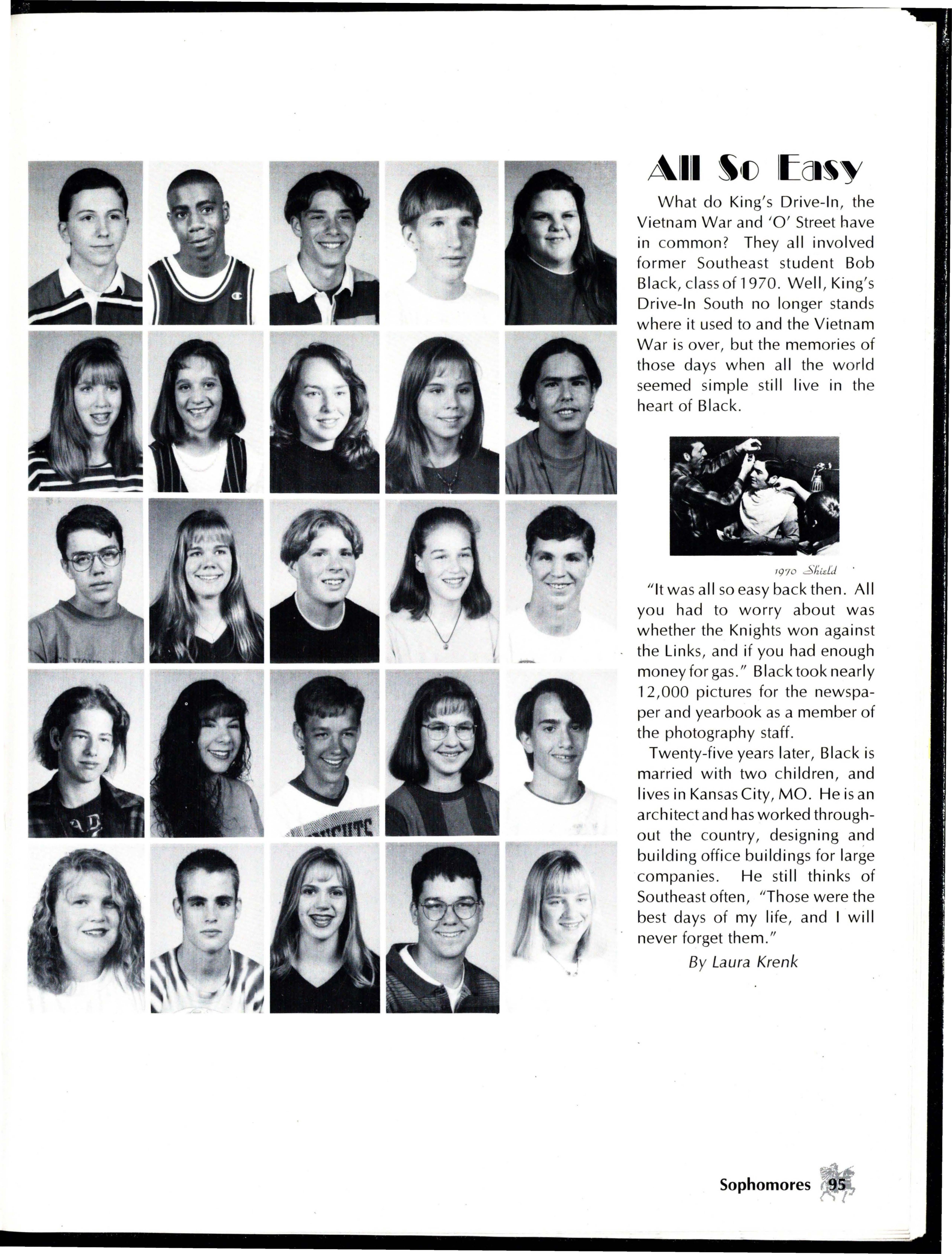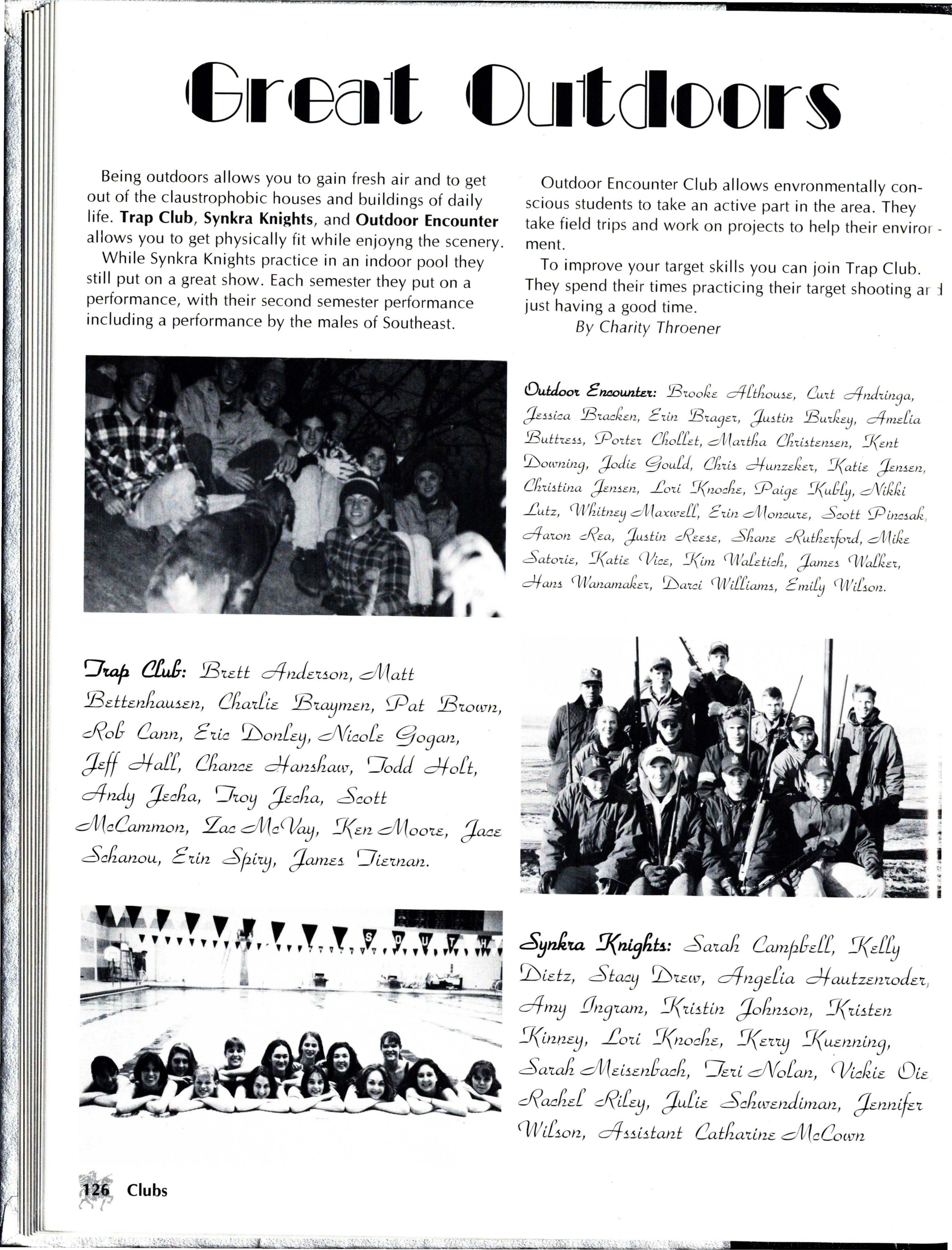 Southeast graduates live in all 50 sta t es and 35 foreign countries. They have a vast array of jobs ranging from state senators to do c tors to housewives to hundred s of other lfurt~ professions The y have been there, done that, and pulled every prank in the book Th ey played football, ba sketball , baseball, and even tiddlywinks They have go n e ~eaI1rs through all the fads: bellbottoms , platform shoes, b ee hives , and wearing their c lothe s ba c kwards. They hav e been in every club , have taken every c la ss, and some hav e tried A\lll dl to drive their tea c hers in sa ne