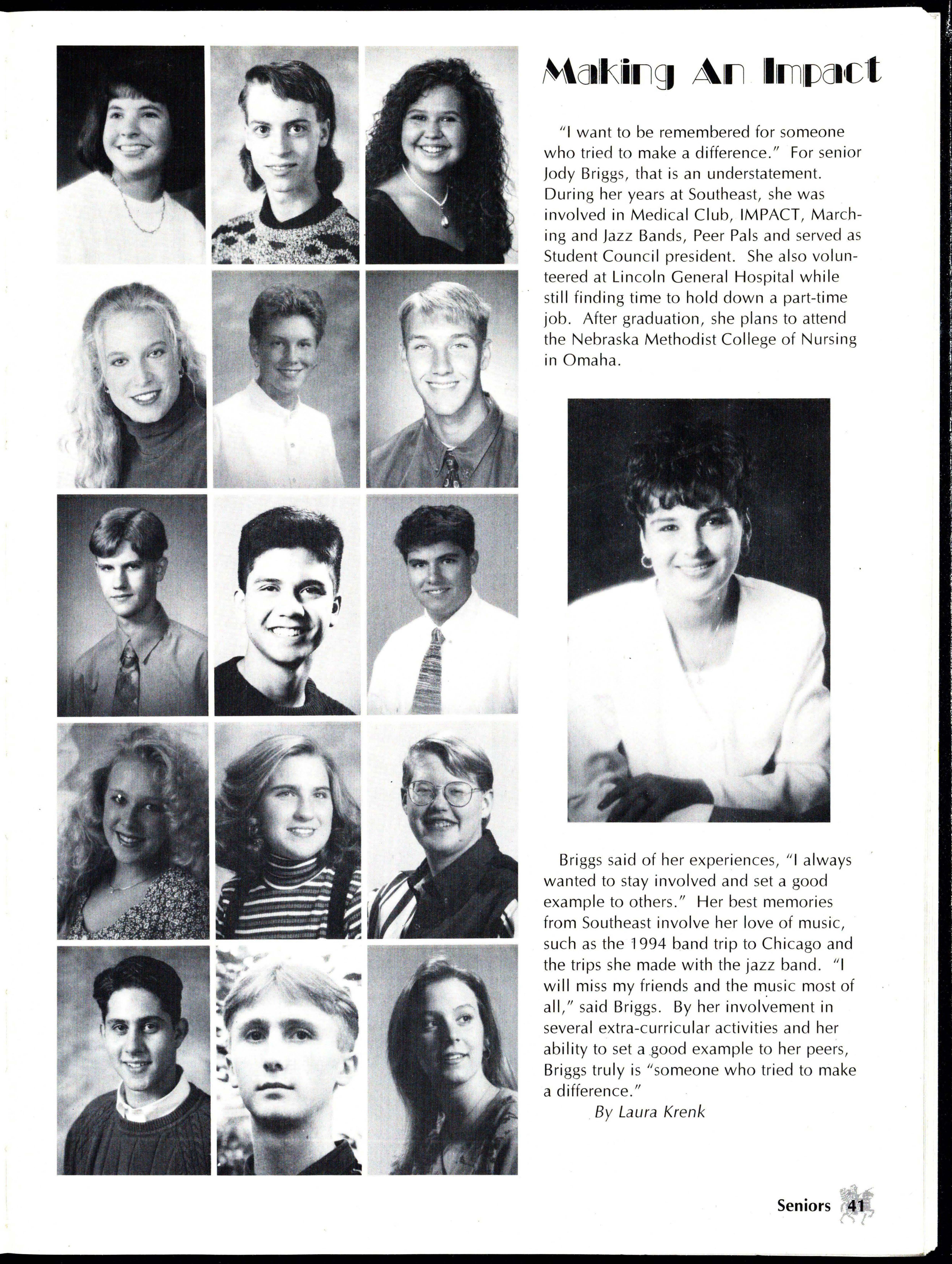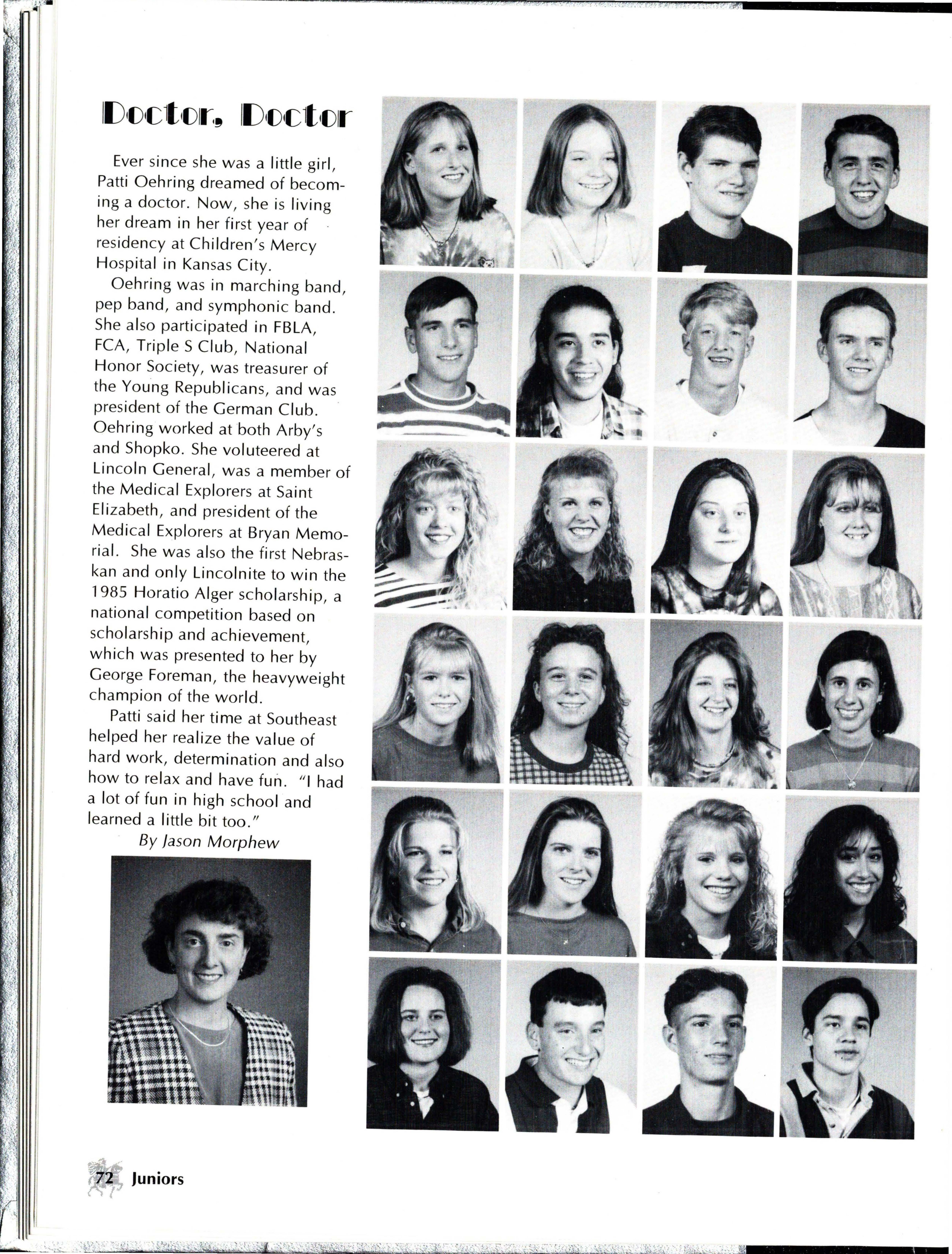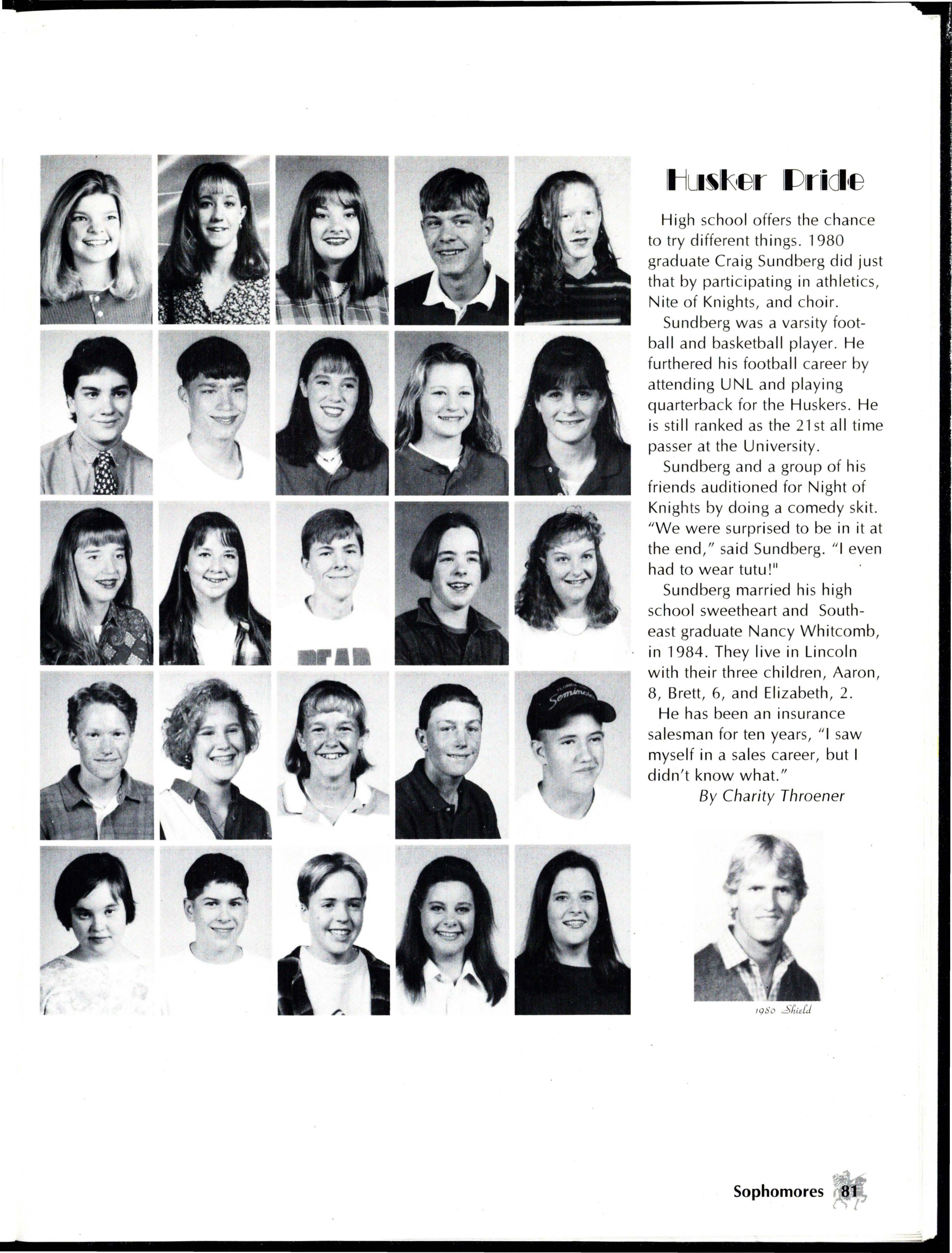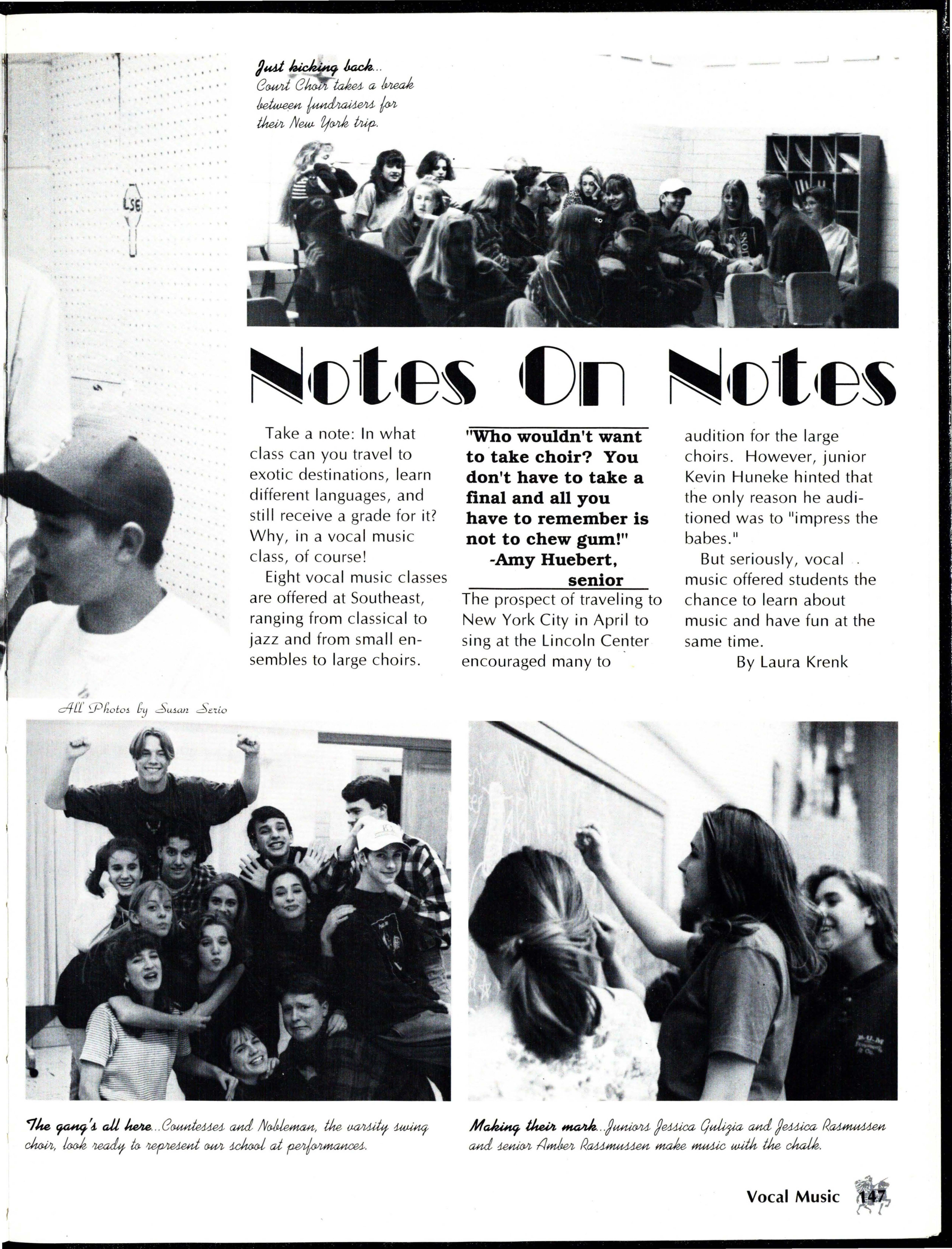 Southeast graduates live in all 50 sta t es and 35 foreign countries. They have a vast array of jobs ranging from state senators to do c tors to housewives to hundred s of other lfurt~ professions The y have been there, done that, and pulled every prank in the book Th ey played football, ba sketball , baseball, and even tiddlywinks They have go n e ~eaI1rs through all the fads: bellbottoms , platform shoes, b ee hives , and wearing their c lothe s ba c kwards. They hav e been in every club , have taken every c la ss, and some hav e tried A\lll dl to drive their tea c hers in sa ne