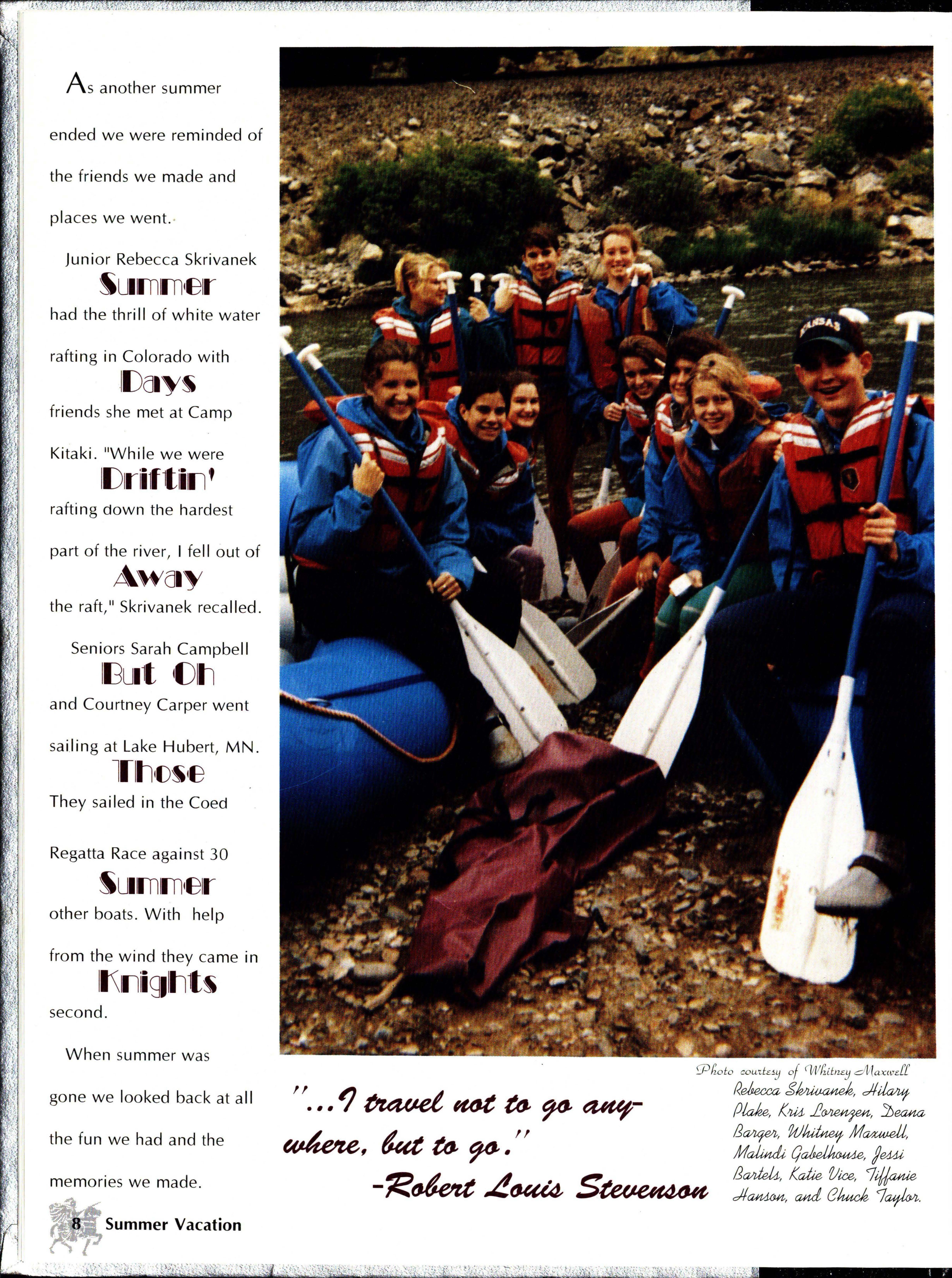 Junior Rebe c ca Skrivanek i Ulllllll1Elr had the thrill of white water rafting in Colorado with ll)a1yi friend s she met at Camp Kitaki "While we were ll)1 r ii1 f t iill' rafting down the hardest part of the riv e r , I fell out of A\W olY the raft , " Skrivanek re c alled