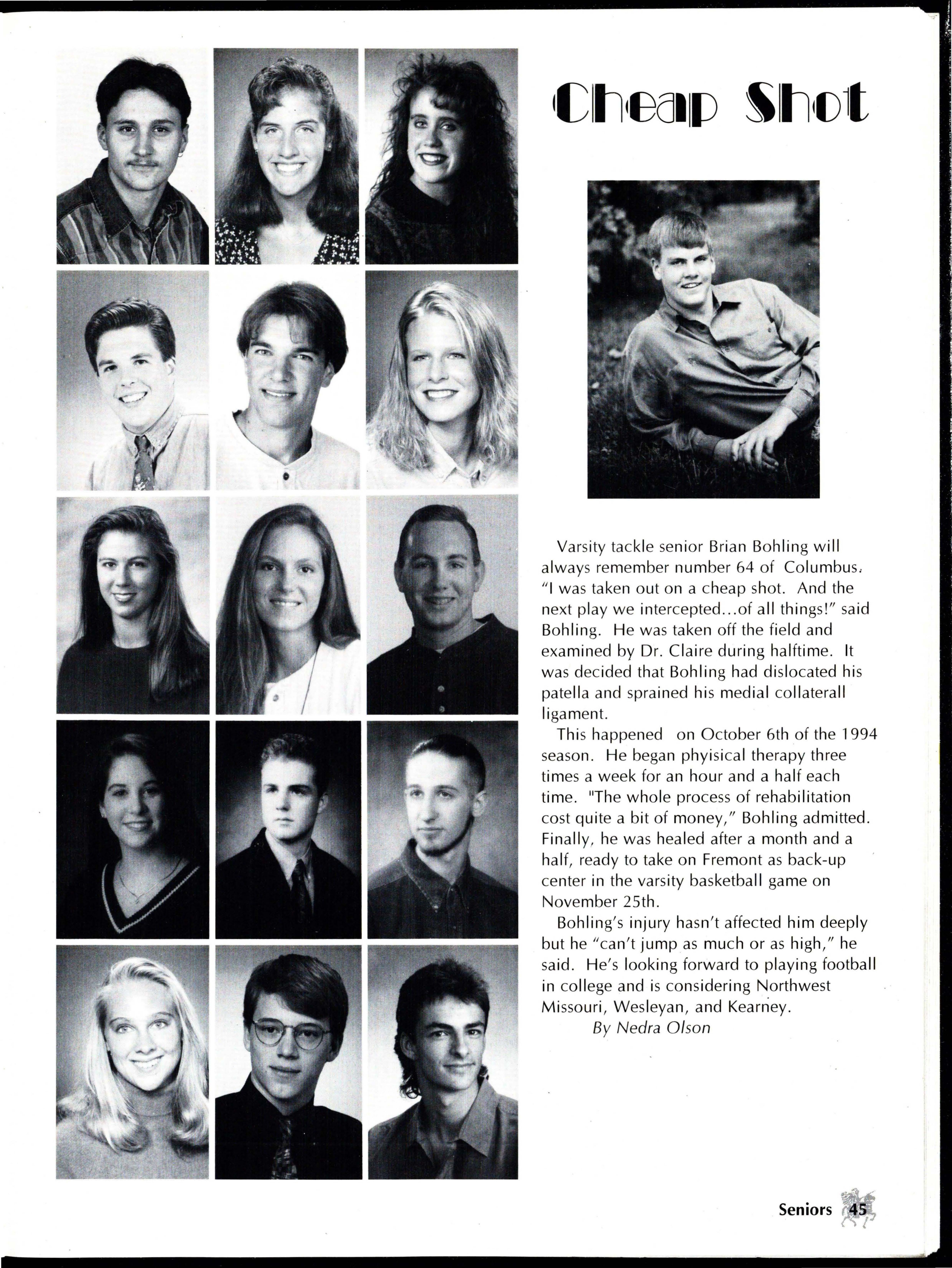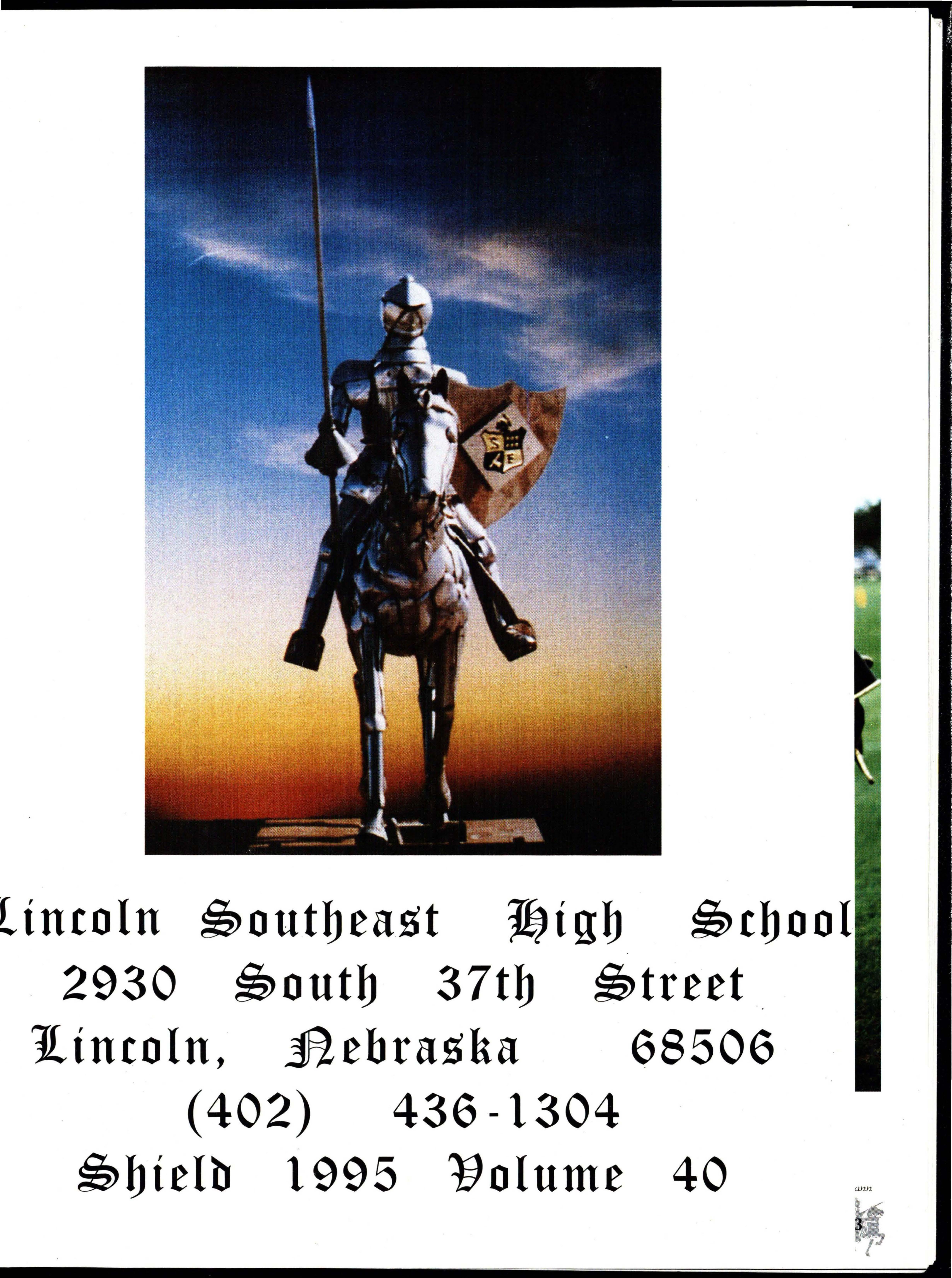 Th e 1995 Shield wa s printed by Walswort h Pu bli shing Company in Marceline, M i ss ouri. 1400 copies of the 240 rage book were ordered. The 40th Anniver,ary t heme was created and carri ed th ro ug hout the book by editor Kyle Nieman n and th e yearbook staff.