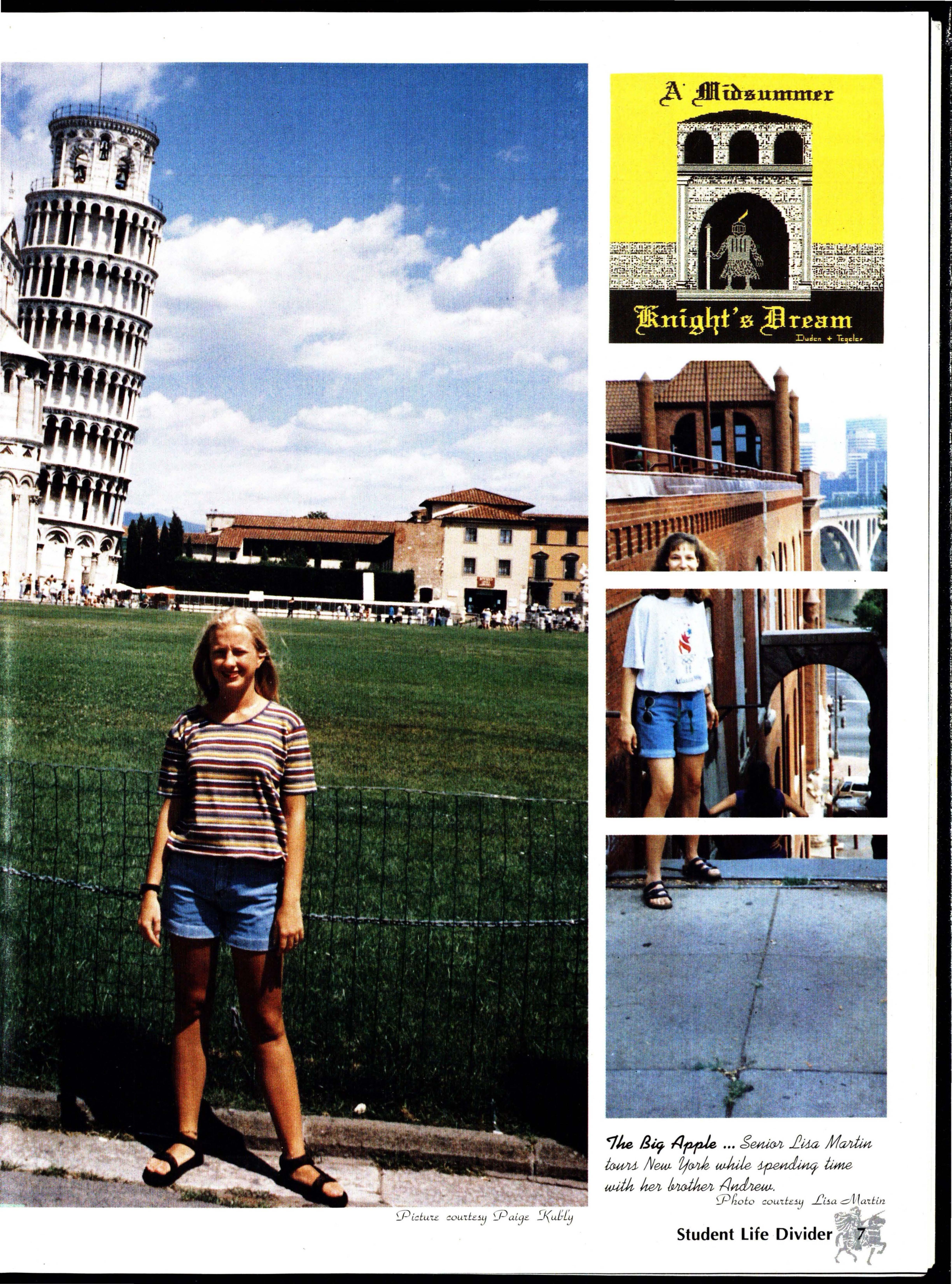 In twenty years you won't remember that grade you got on your Spanish quiz, or the topic of that history paper you spent all night working on. All those periodic symbols will be gone from your memory. As your child comes up to you and asks if you have read Lord of the Flies, a faint glimmer of English 10 comes to mind, but you can't remember what the book was about. After your child leaves the room you begin to reminisce about high school days. Friends, people, those are the Knights you Remember . People
