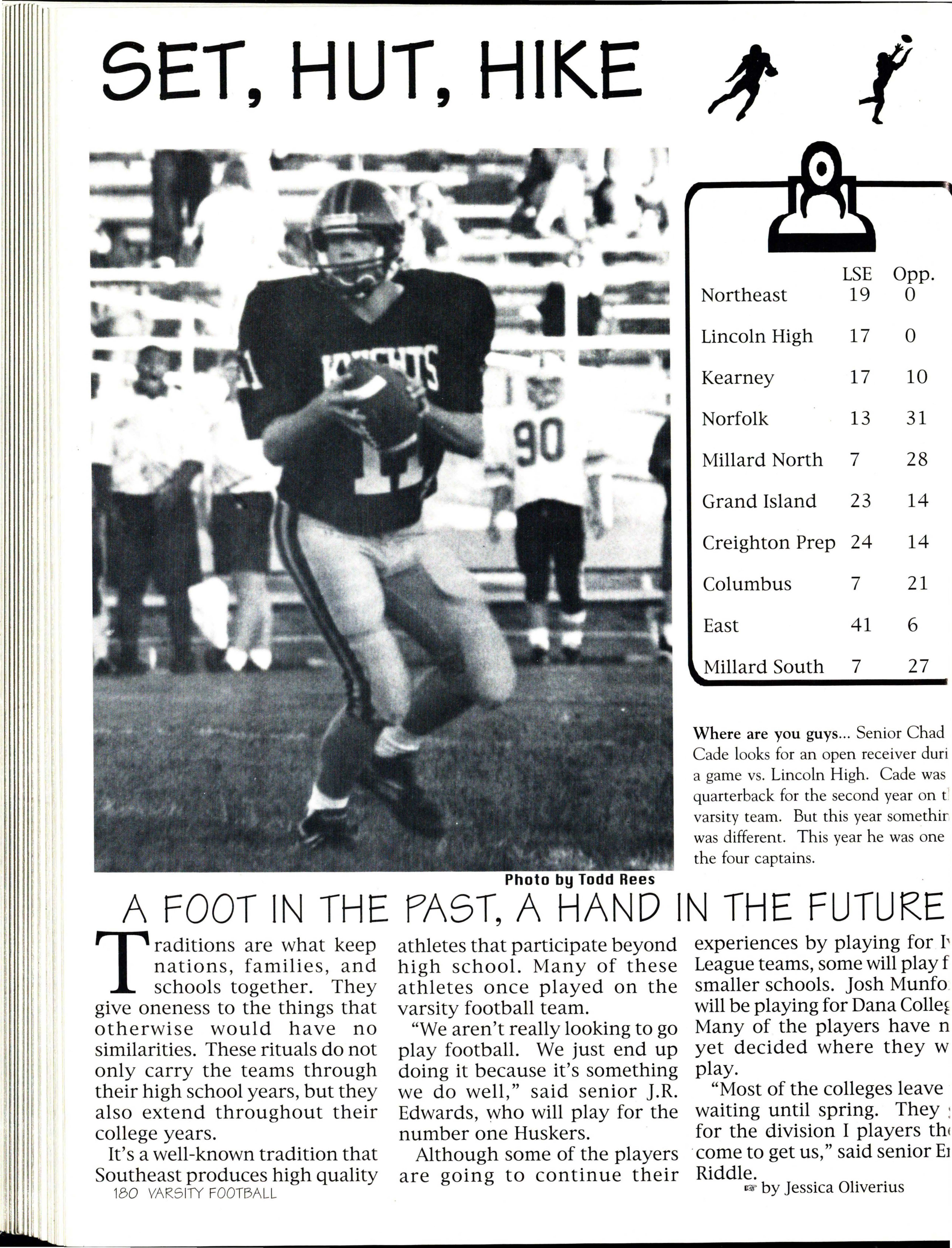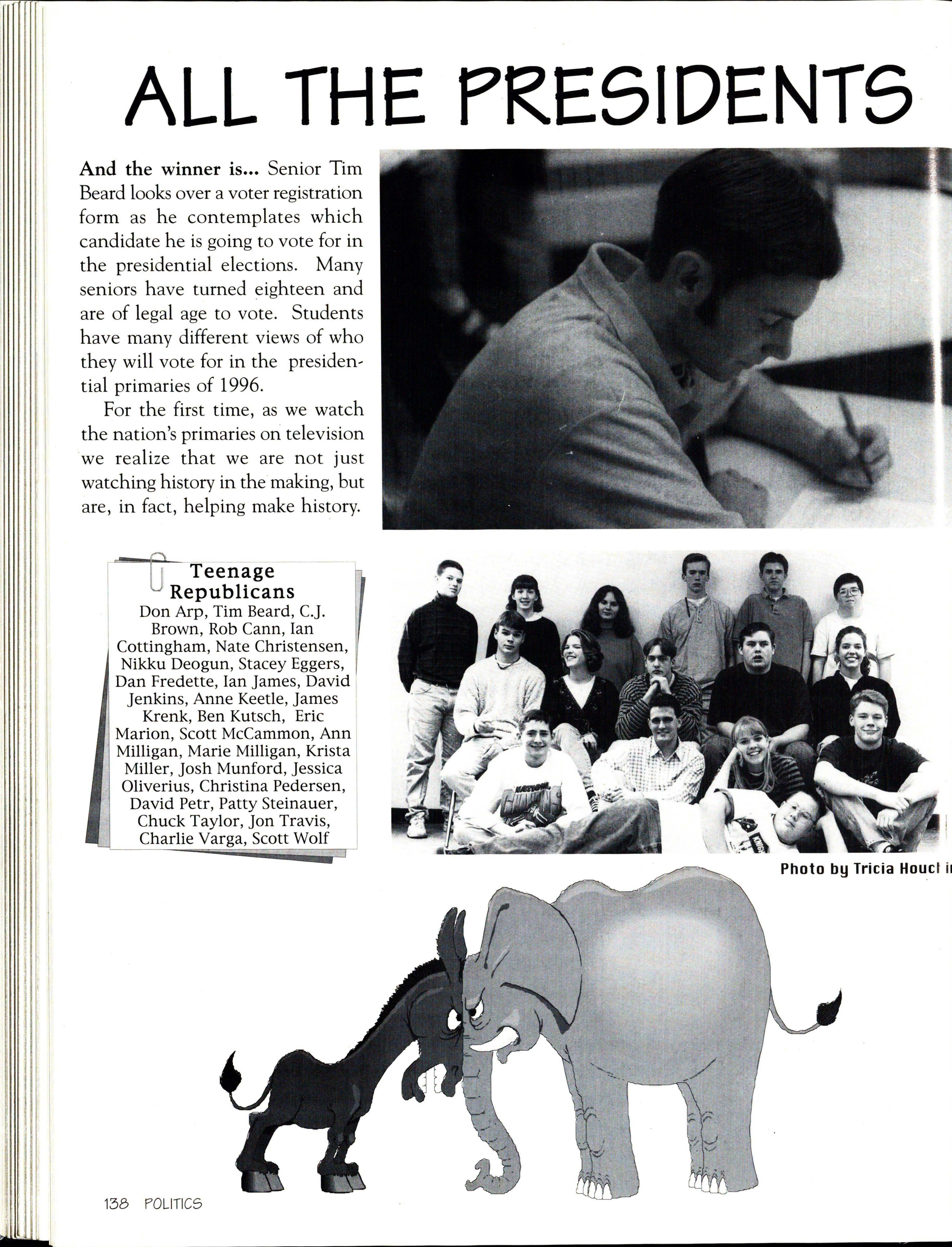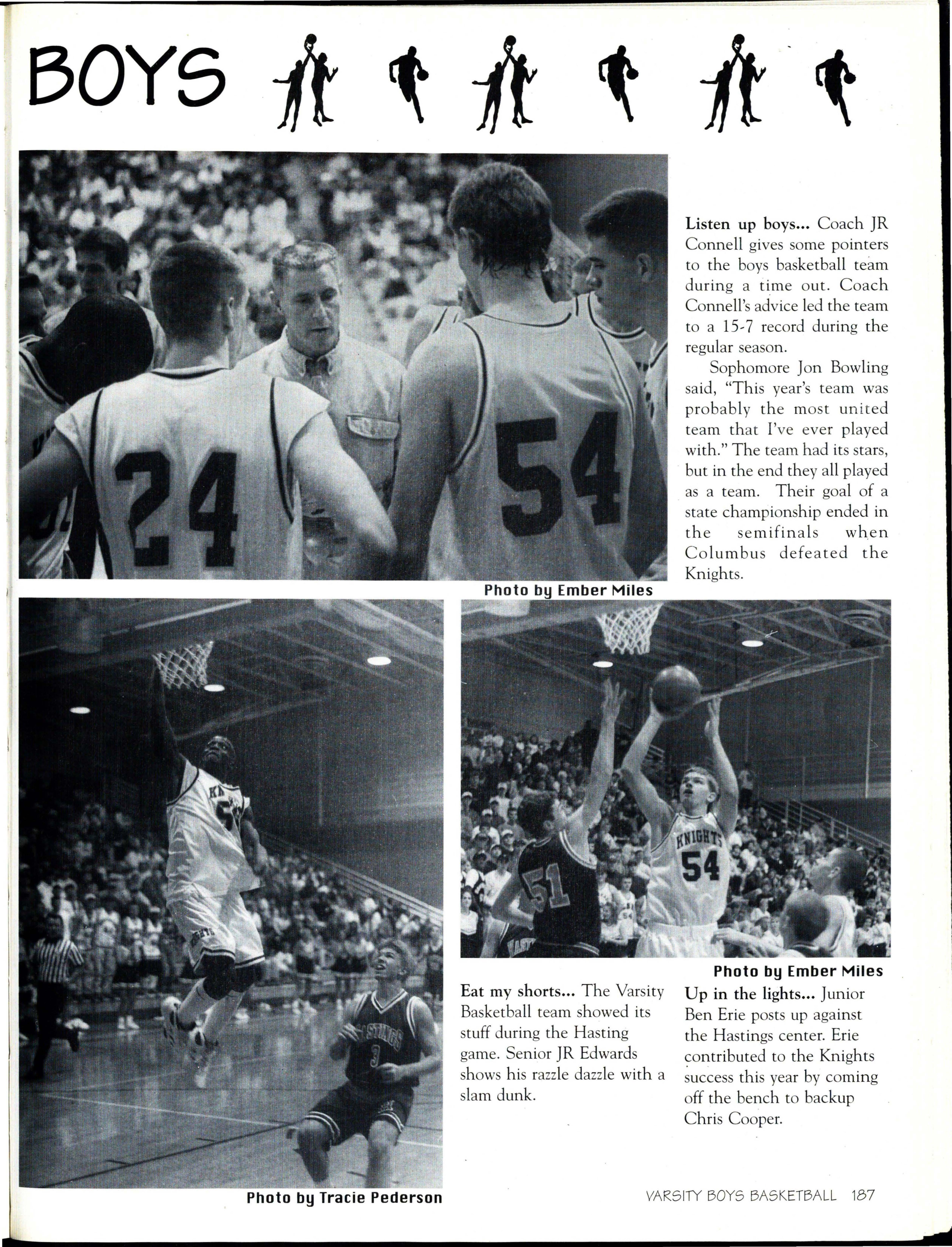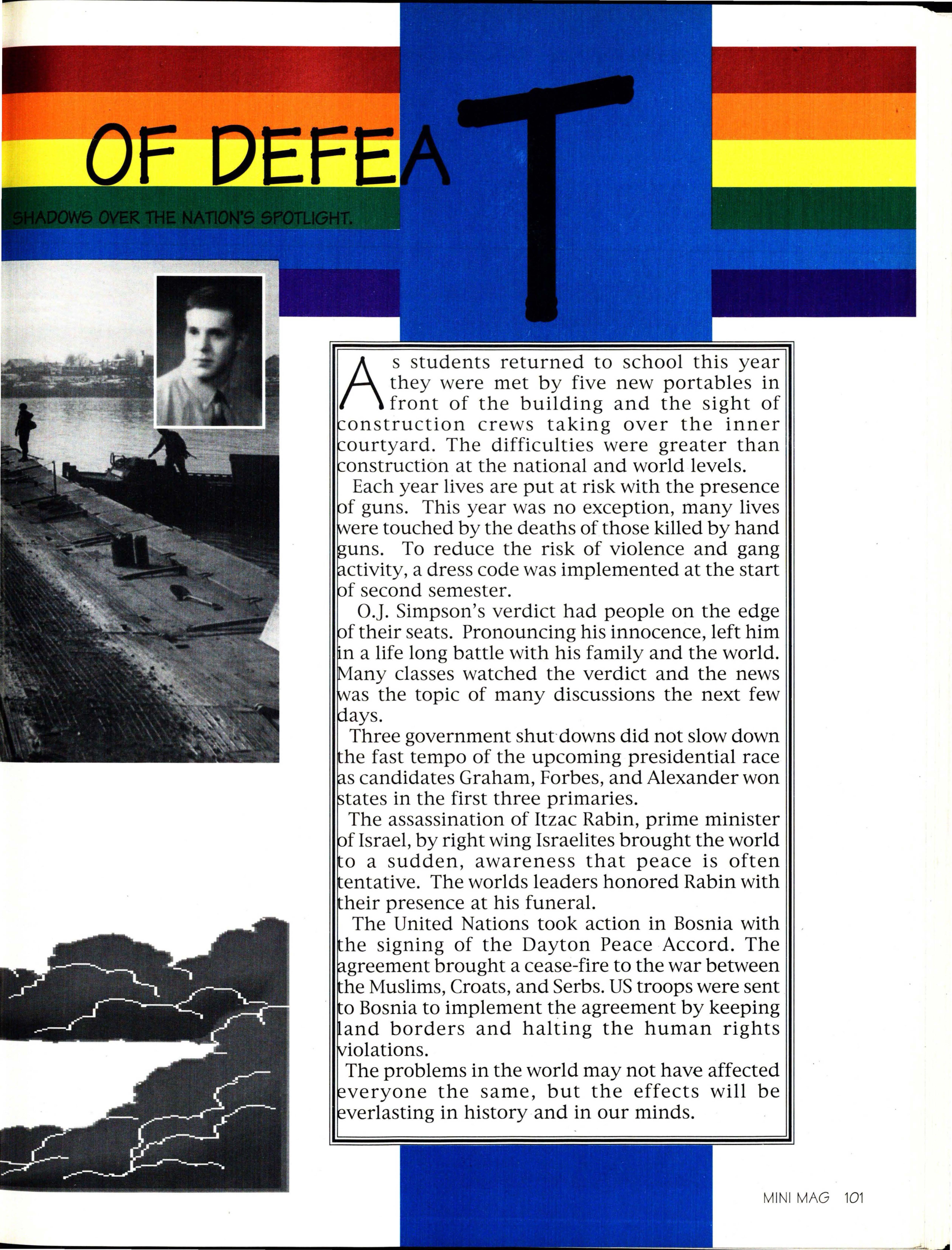 The 1996 Shi e ld was Printed b y Walsworth Publishing Co mp any ir, Marce lin e , Missouri. 1500 copies of the 41s t Shie ld were orde red After c h a nging themes many times t h e Co lo r of Knights was crea te c an d carri ed o ut throughout the book by Editor s Kyle Nie m ann, Char it ) Throene r , Jenny Lukesh , an d t h e entire yearbook staff. Usi n g Page m a ke r 5 0 the book was completed in six deadlines Th f fonts used for the Shie ld we re New York , Technical, Chi cago, Gild e Times, a nd Za pf Dingbats