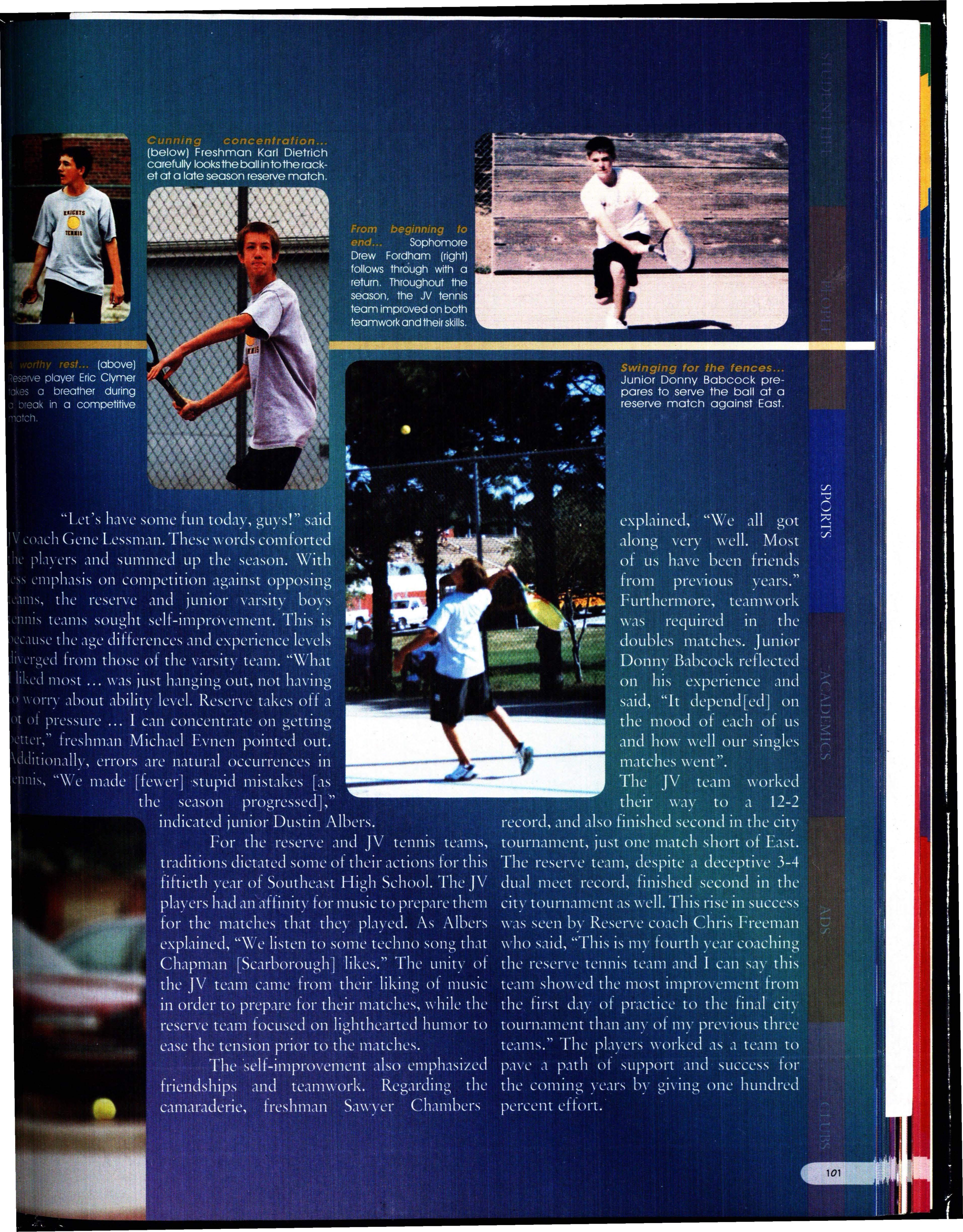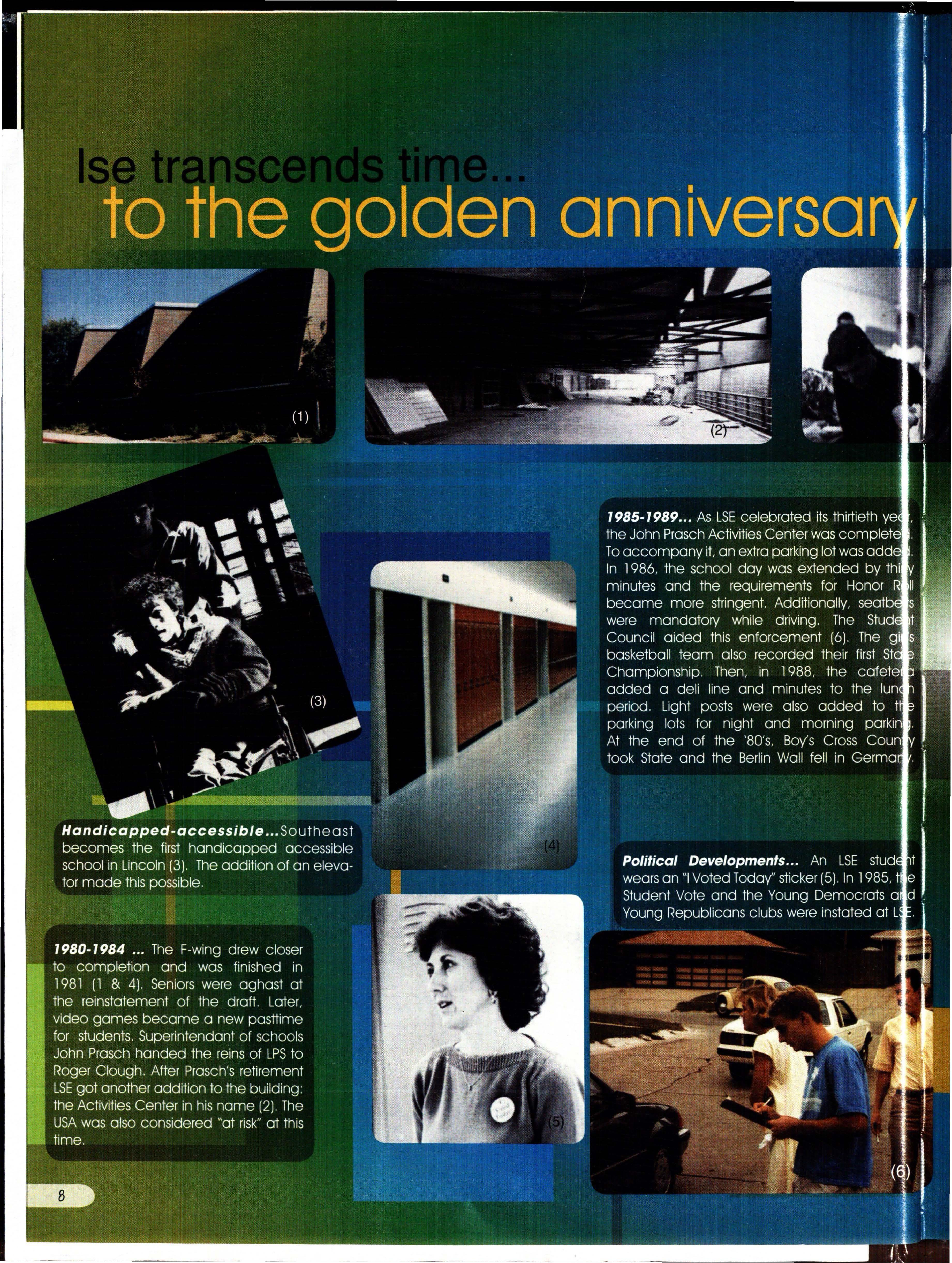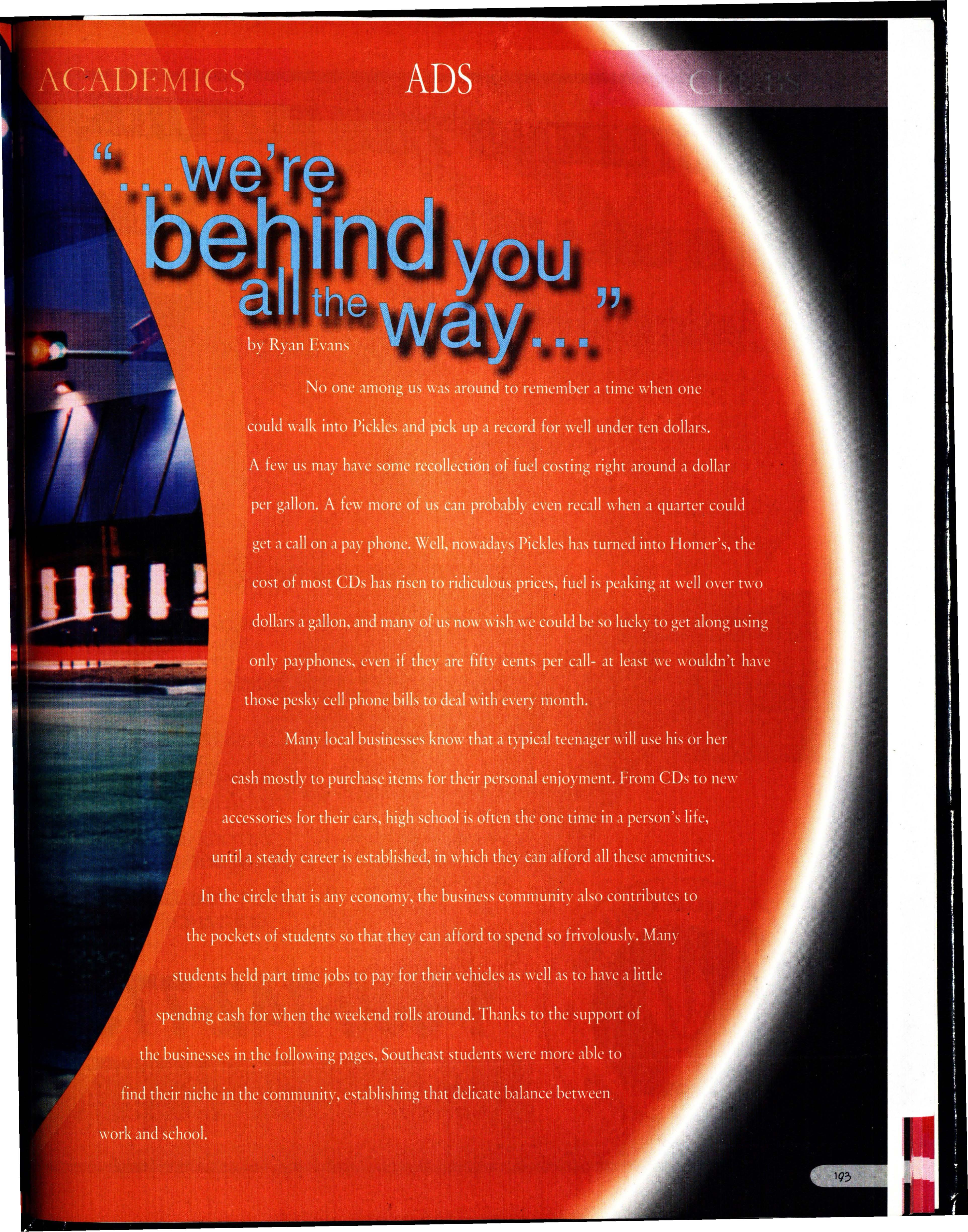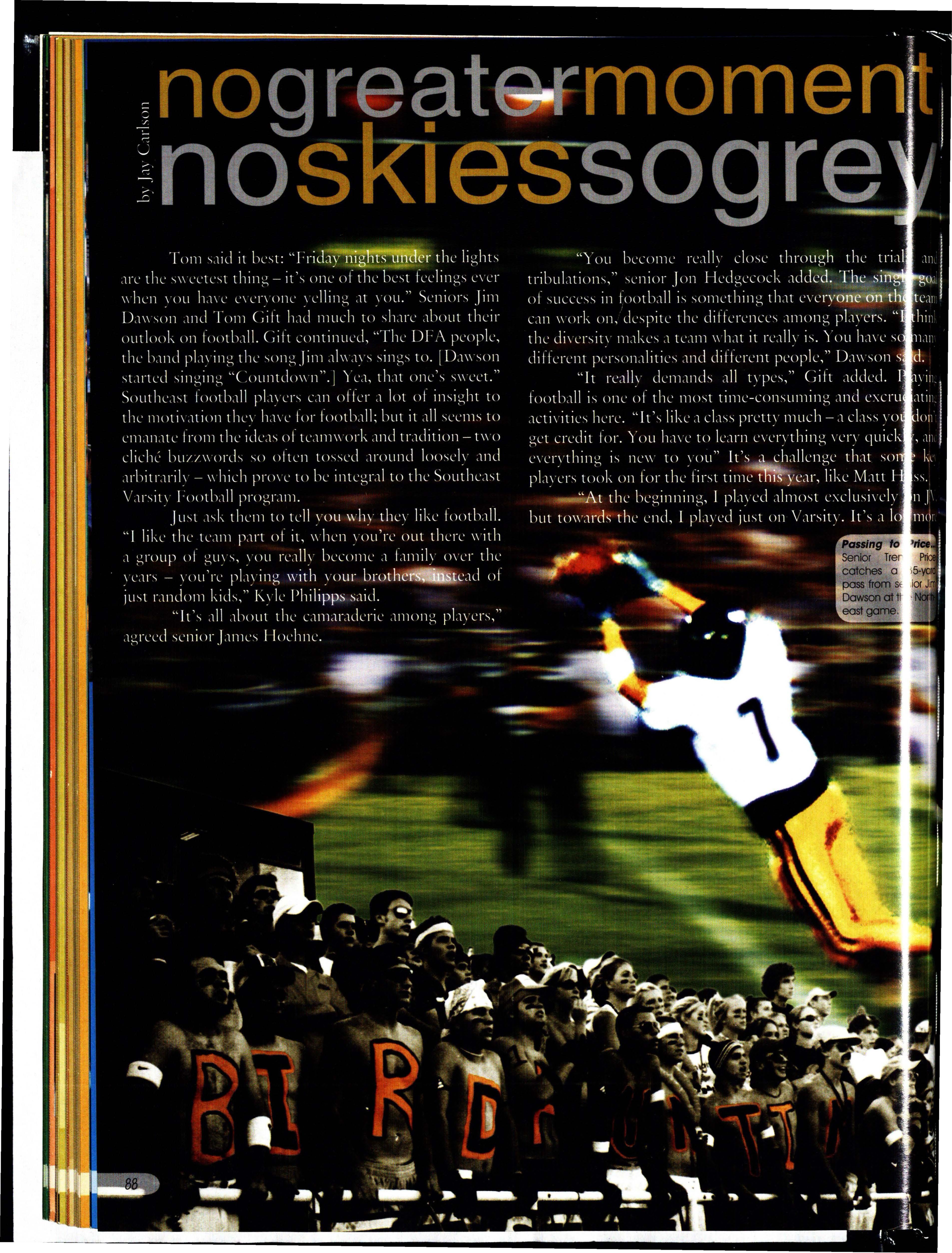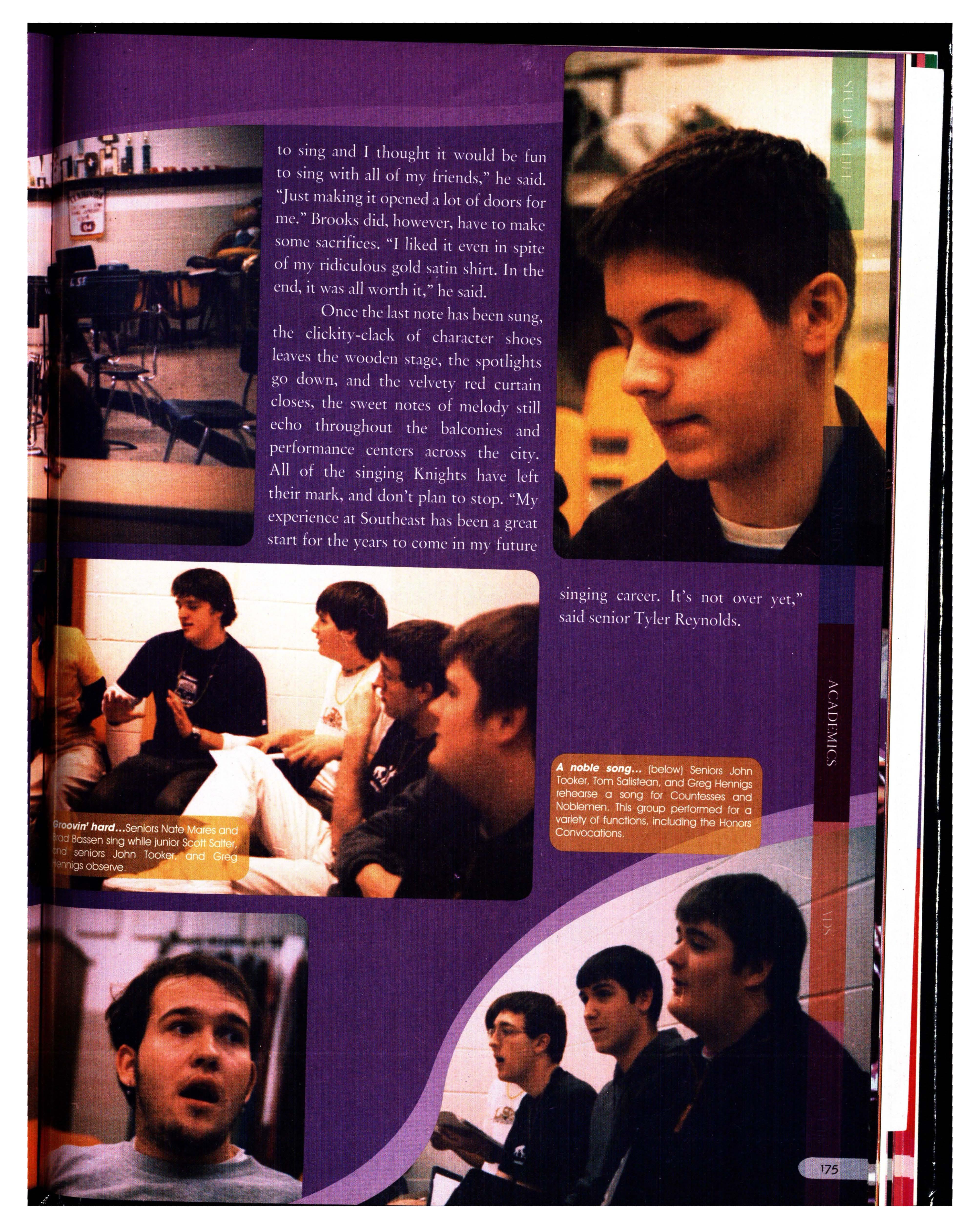 Finally, after thre e yea rs of high school, most seniors are ready to move on, as sen ior Sean Flowerday remarked, "I enjoy being able to look b~c;k on my academic career." While students work through these pr~xesses, the teachers and staff who surro und them do everything possible to provide a nurturing and po sitive learning environment. For the past fifty years, the character of Southeast ha s refused to be determined by the condition of the building. Its nature will always be a reflection of it s people