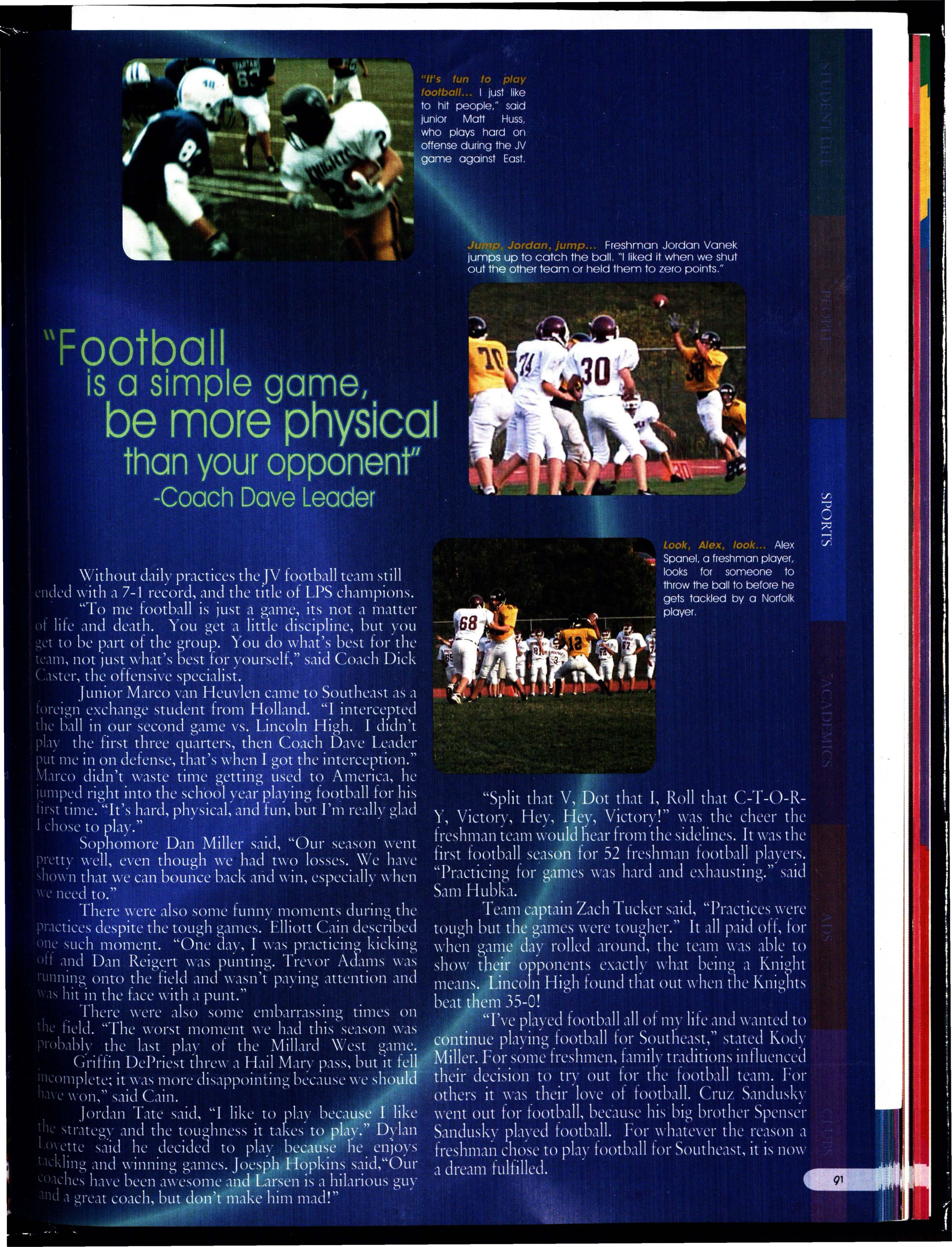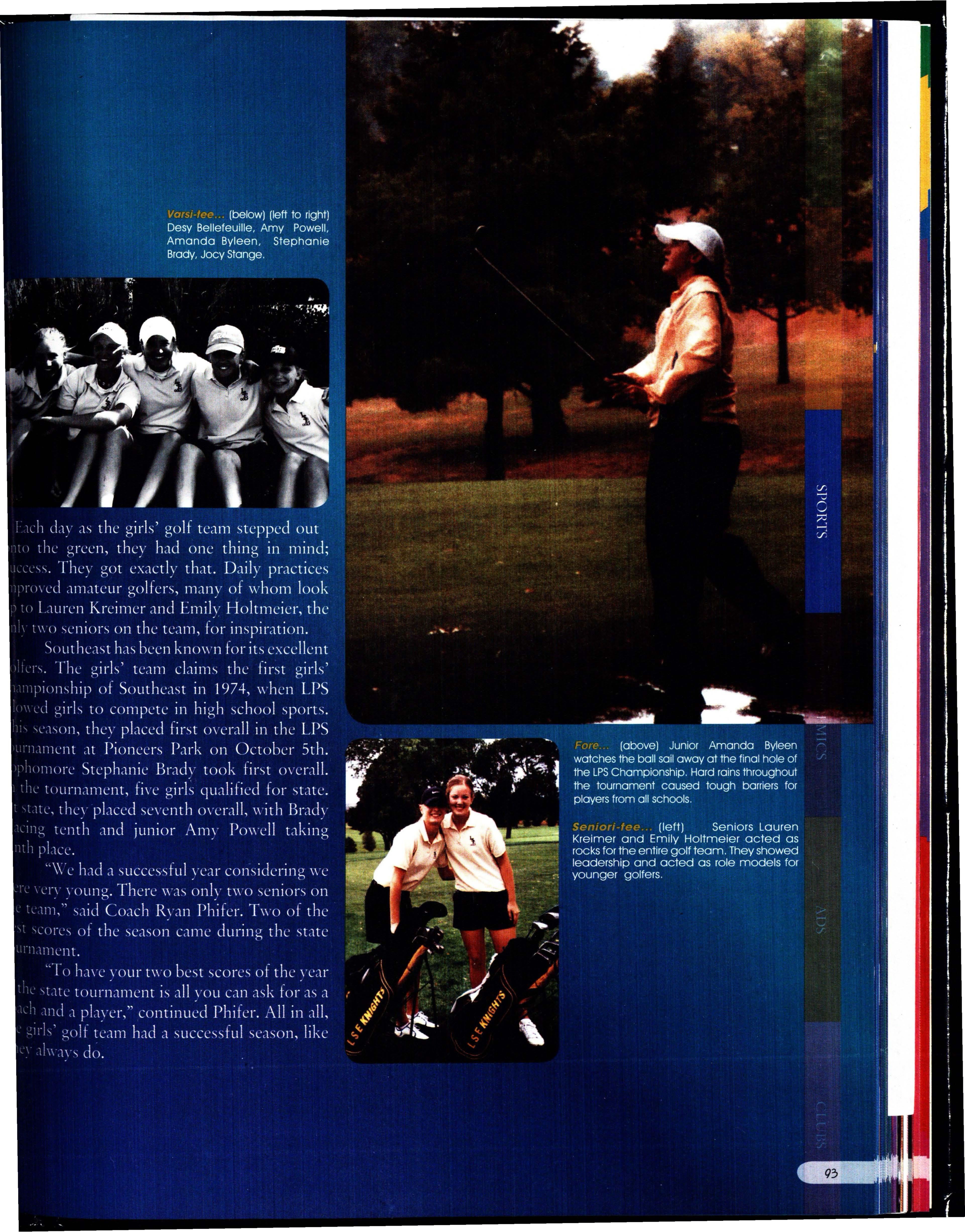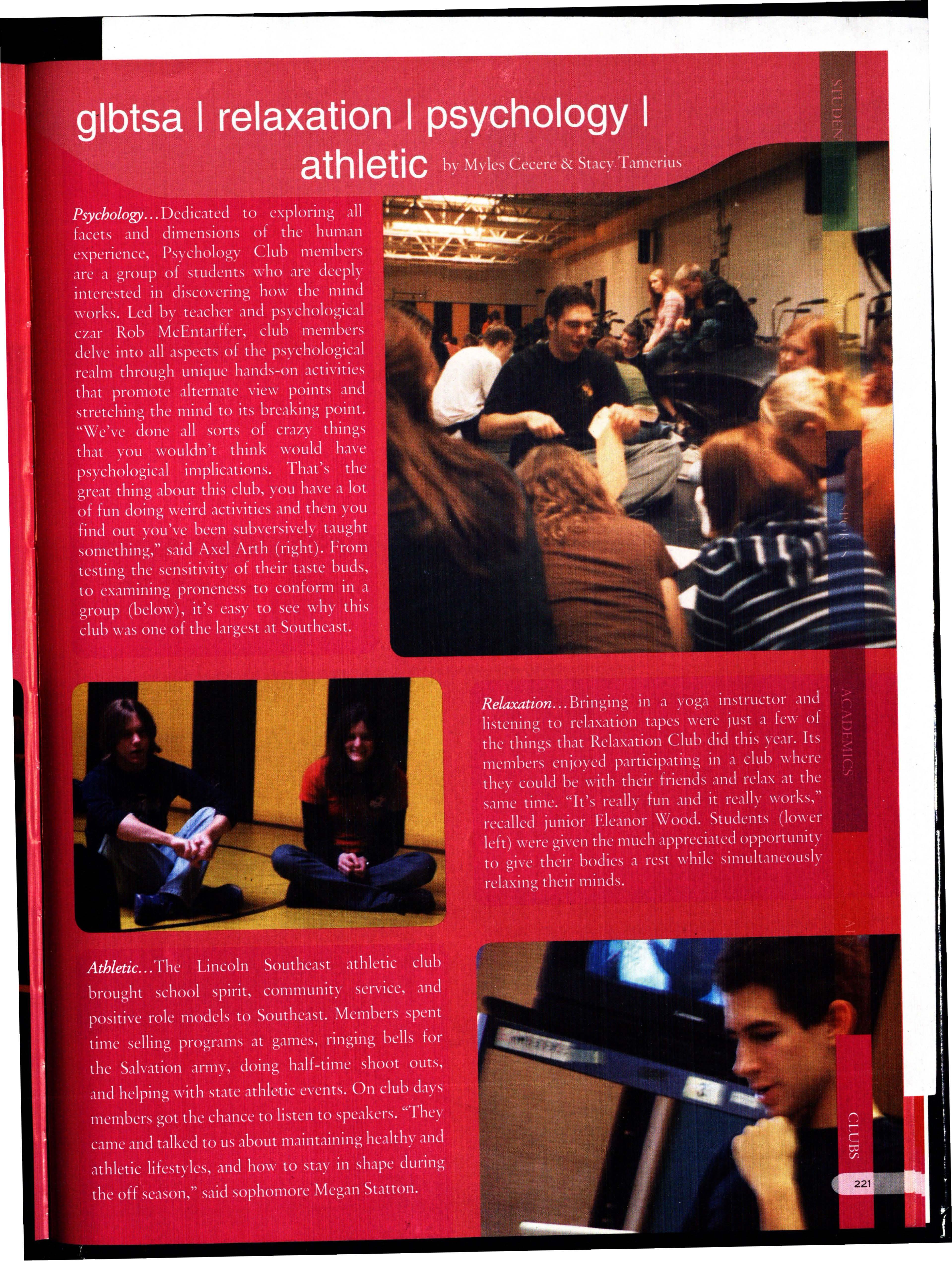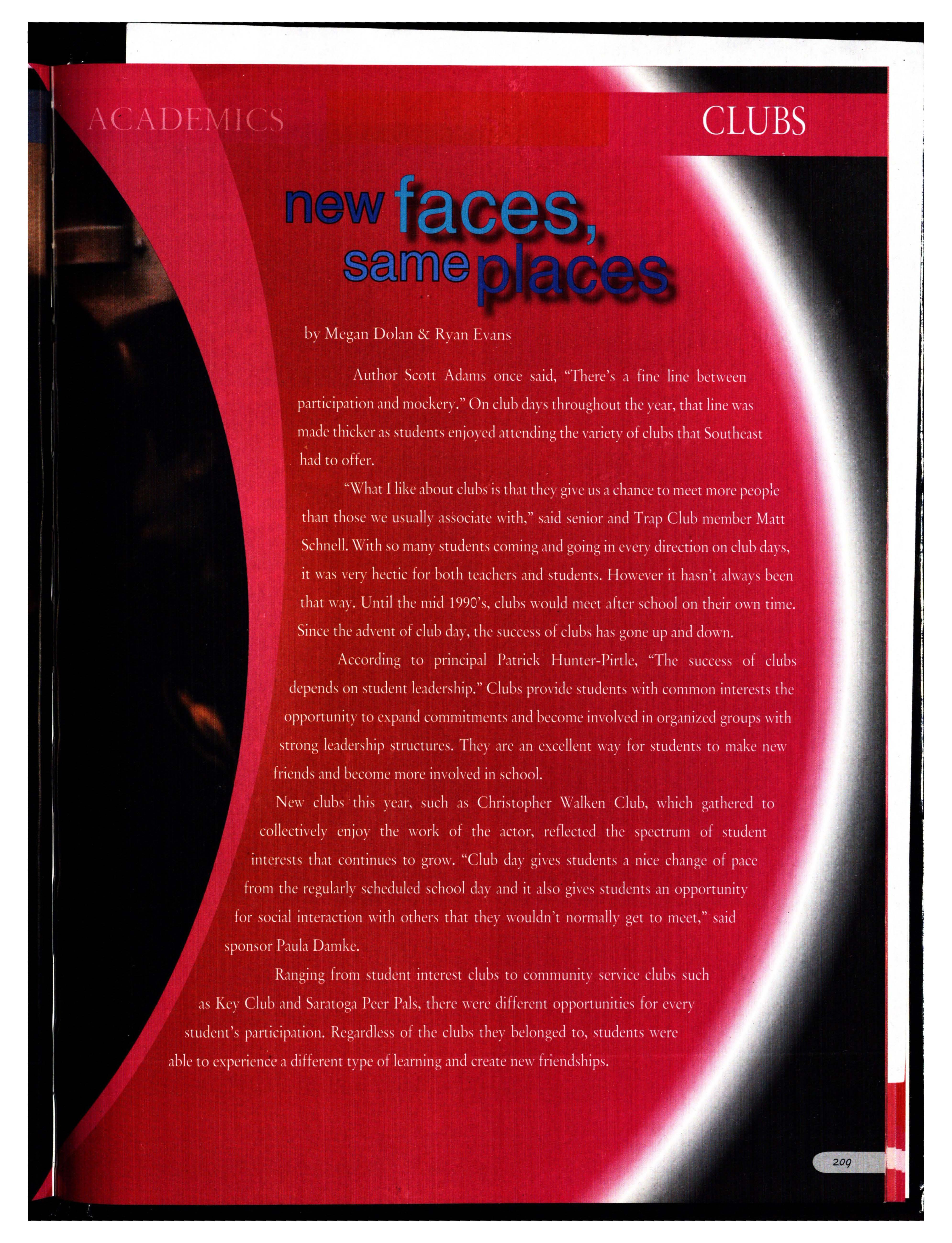 Finally, after thre e yea rs of high school, most seniors are ready to move on, as sen ior Sean Flowerday remarked, "I enjoy being able to look b~c;k on my academic career." While students work through these pr~xesses, the teachers and staff who surro und them do everything possible to provide a nurturing and po sitive learning environment. For the past fifty years, the character of Southeast ha s refused to be determined by the condition of the building. Its nature will always be a reflection of it s people