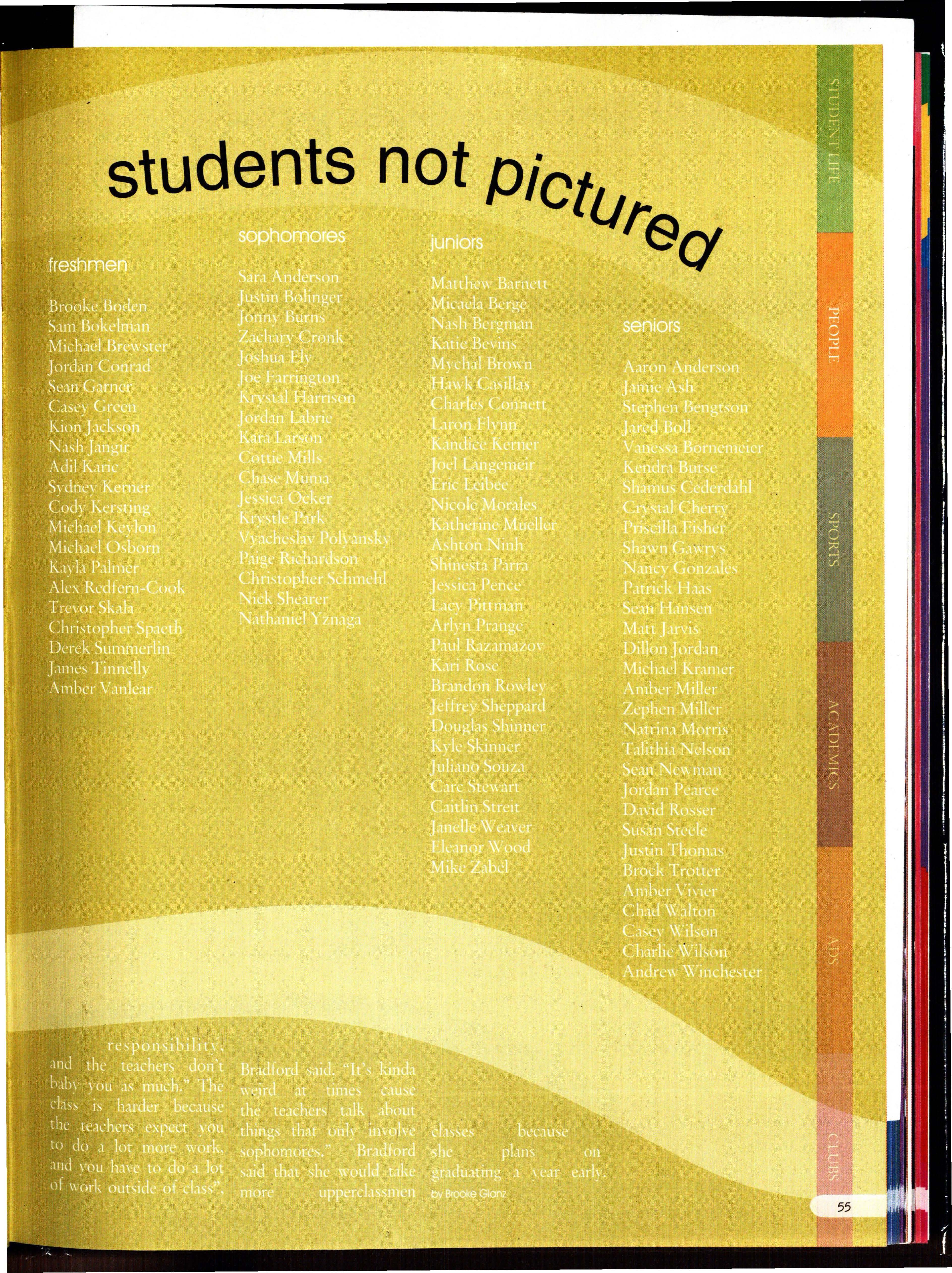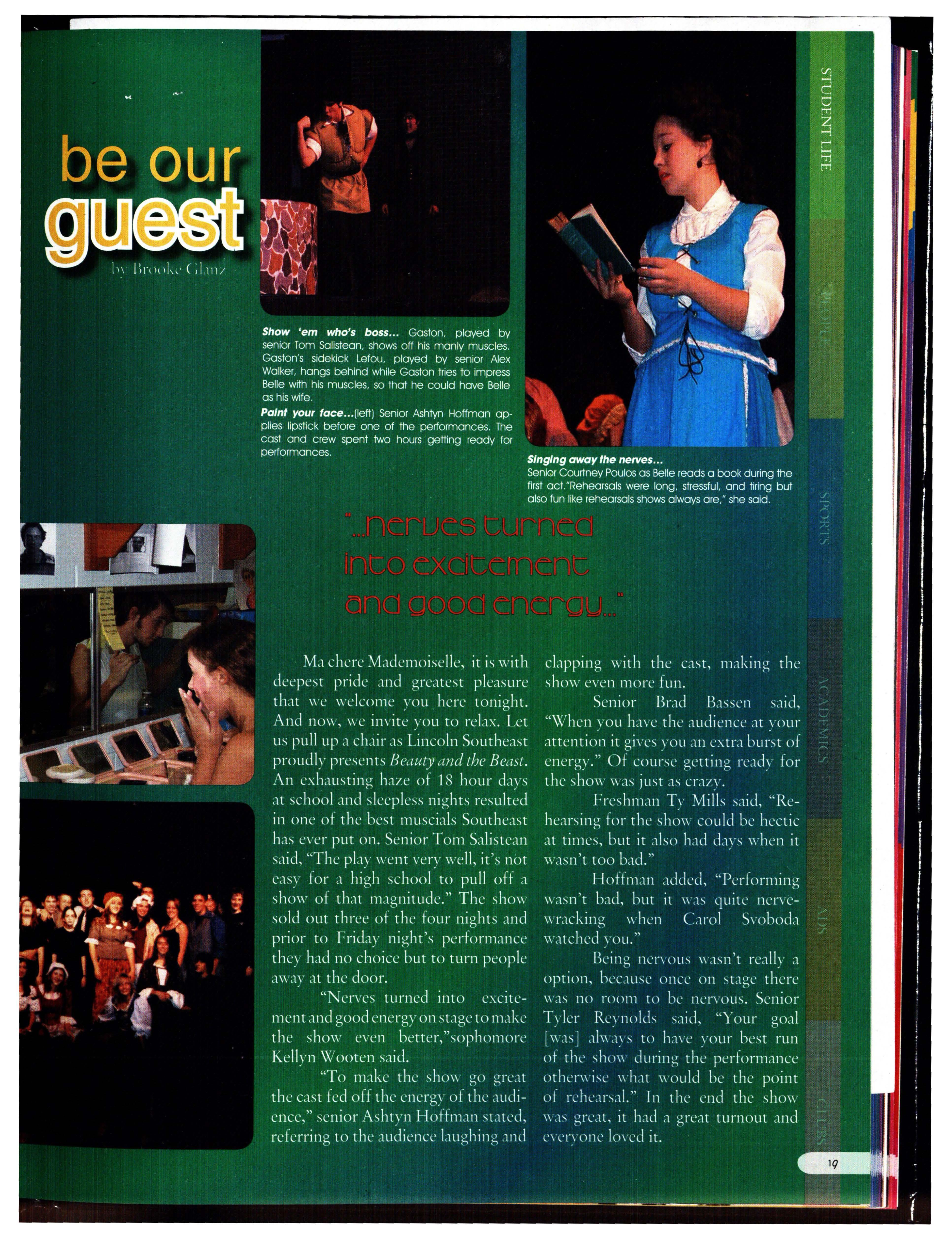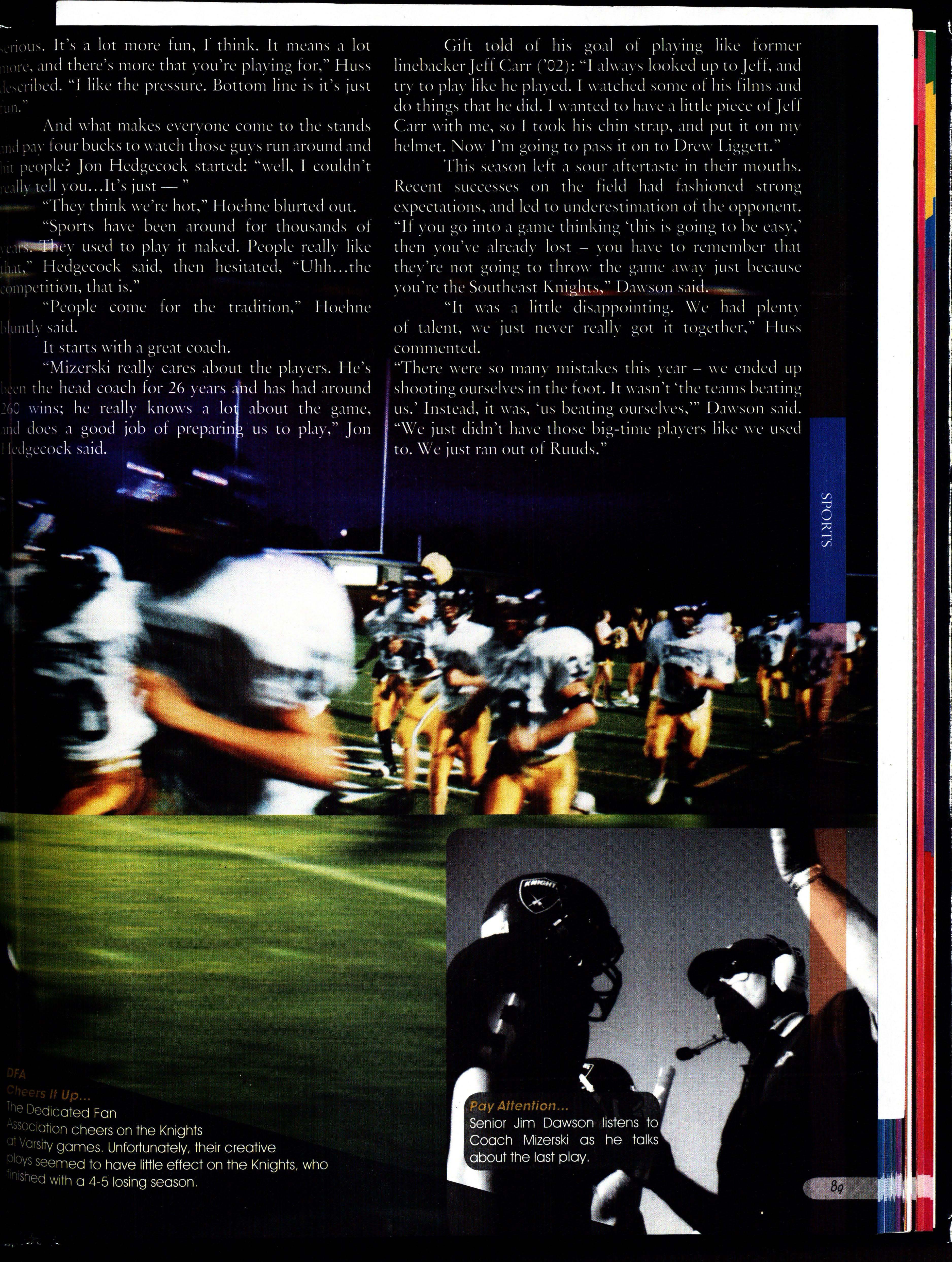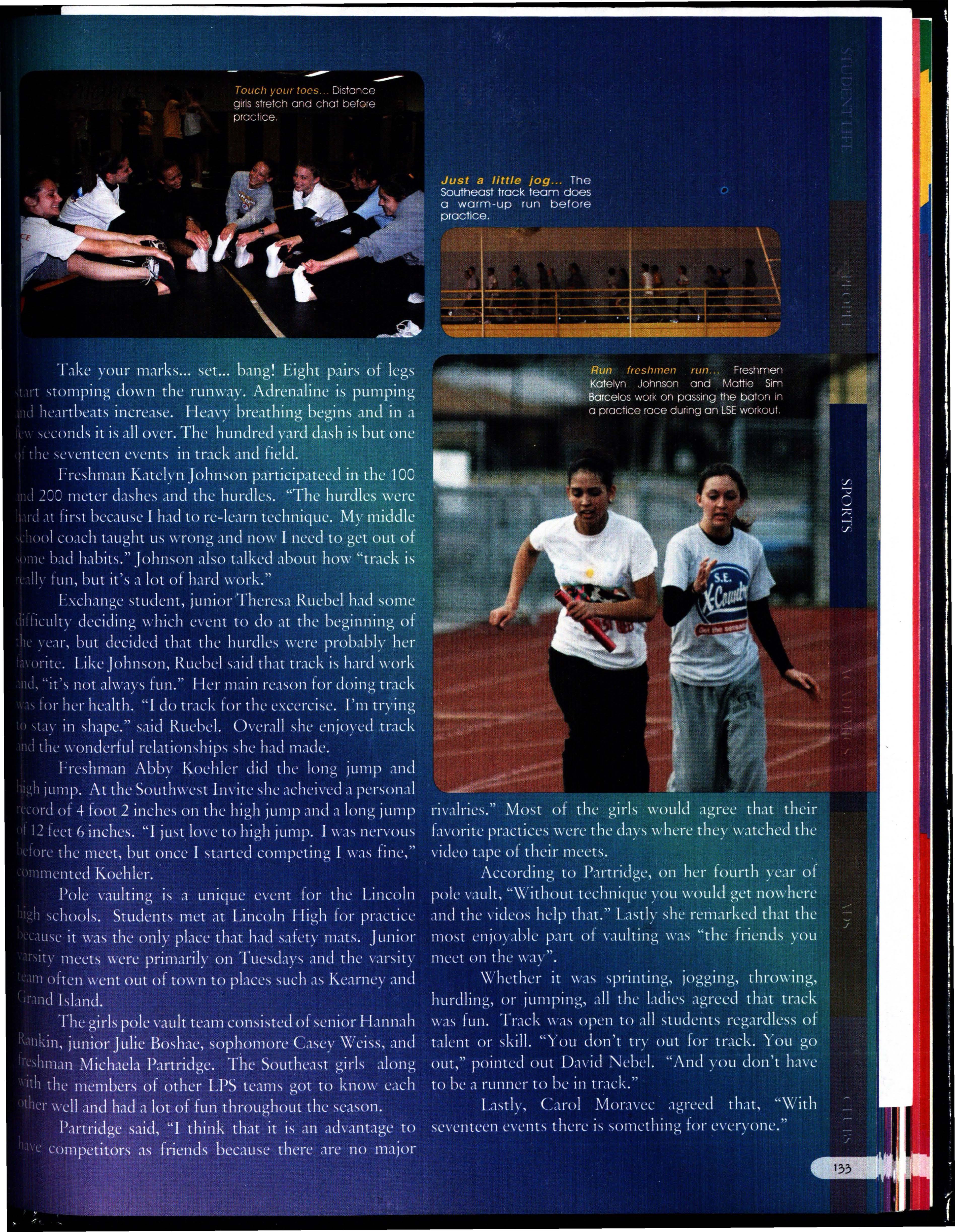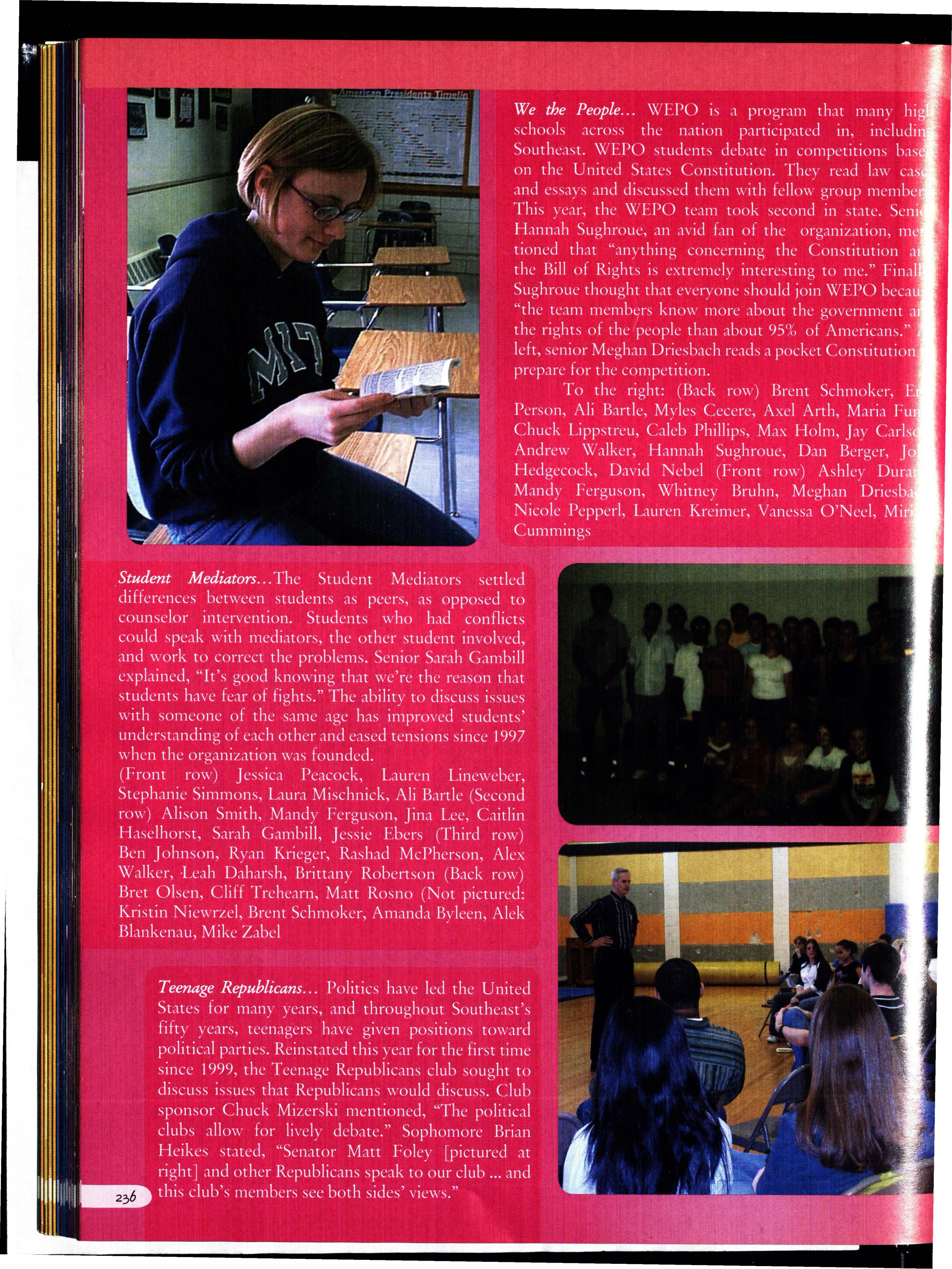 Finally, after thre e yea rs of high school, most seniors are ready to move on, as sen ior Sean Flowerday remarked, "I enjoy being able to look b~c;k on my academic career." While students work through these pr~xesses, the teachers and staff who surro und them do everything possible to provide a nurturing and po sitive learning environment. For the past fifty years, the character of Southeast ha s refused to be determined by the condition of the building. Its nature will always be a reflection of it s people