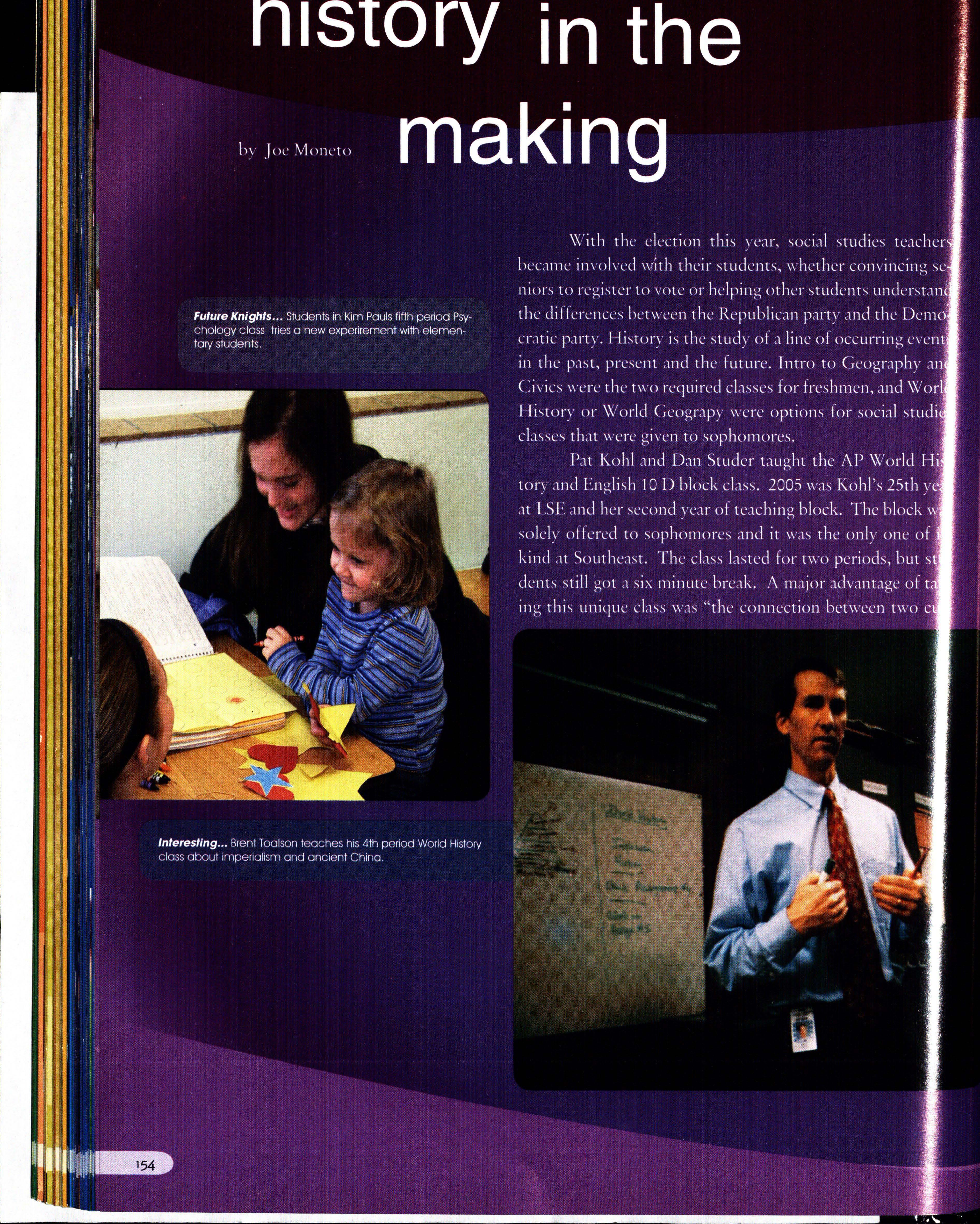 There are certain changes that are bound to occur over the course of fifty years. The Southeast building itself has certainly seen better days. Social Studies teacher Brent To alson stated, "Southeast's reputation for excellence says a lot about the students and the staff. It's important to me that this does not change. Bringing in ninth graders and the addition of brand new schools within the last few years is not an excuse. It's easy to get discouraged because of the other facilities."