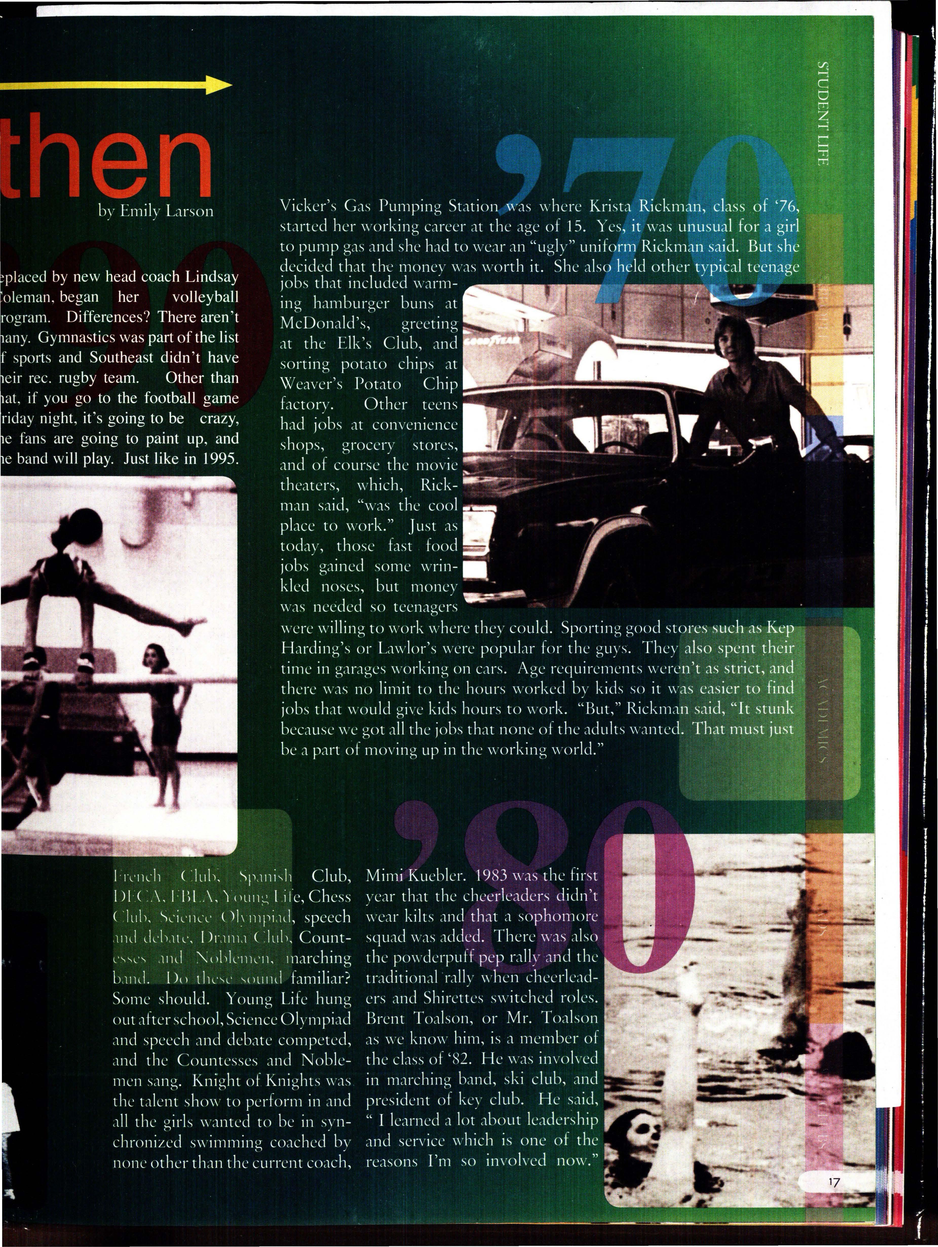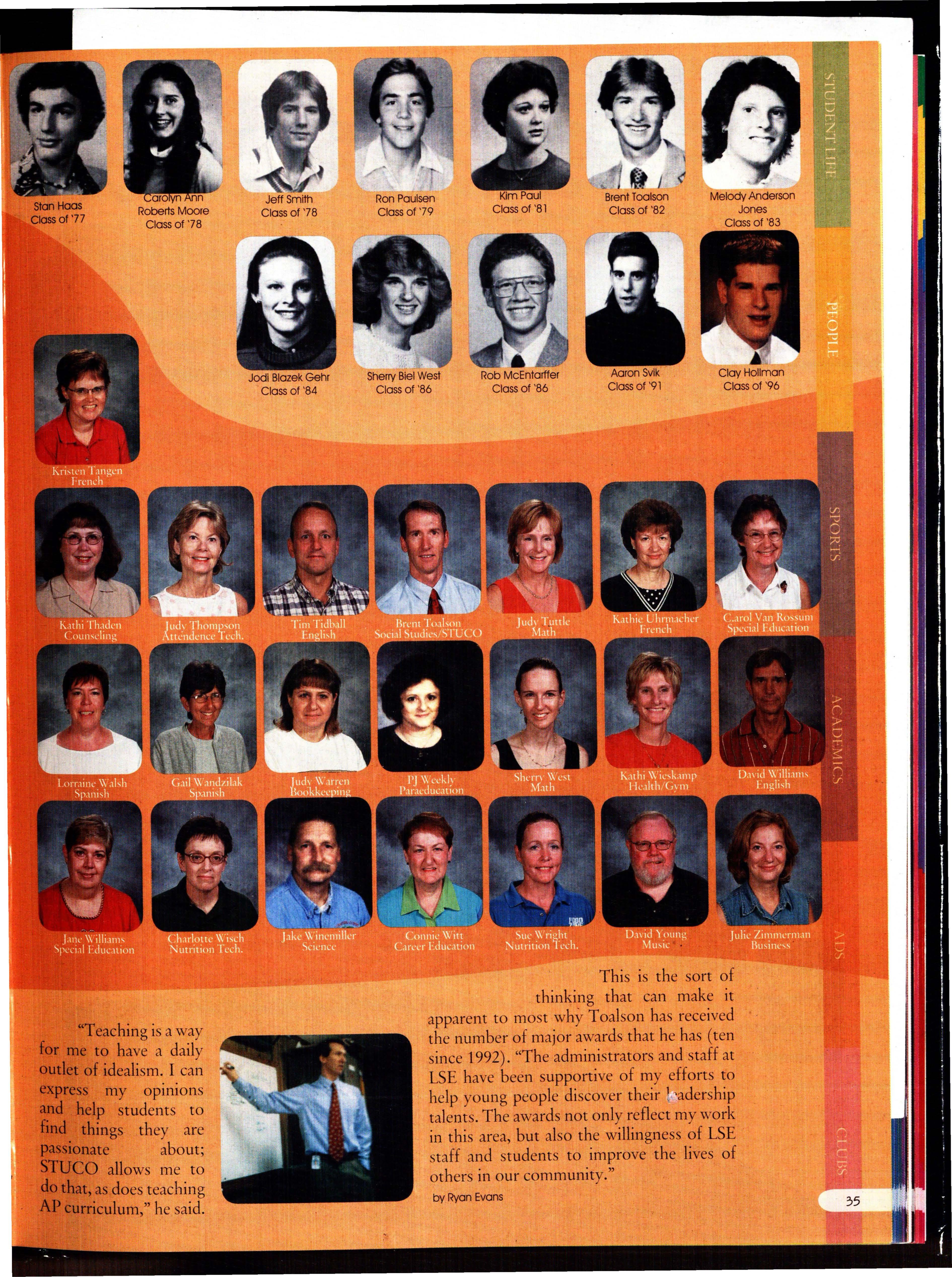 Using the word 'ambitious' to 1982, Toalson said "I got along with all describe social studies teacher Brent Toalson three groups-jocks, nerds, and preps. I may be an understatement. The recipient was definitely not a jock-I was somewhere of three separate awards recognizing his between a prep and a jock." He played leadership in the school and the community trombone in band, was enrolled in Advanced in 003 alone, his · list of achievements Placement Classes, and was President of Key include writing the course proposal to Club, which he described as a turning point. the district for AP World History and "The leadership I developed as President designing and helping to build the handicap- of Key Club really helped my confidence. accessible playground at Antelope Park. Because of this, I am now a huge supporter As a student at Southeast from 1979- of clubs to get involved at school," he